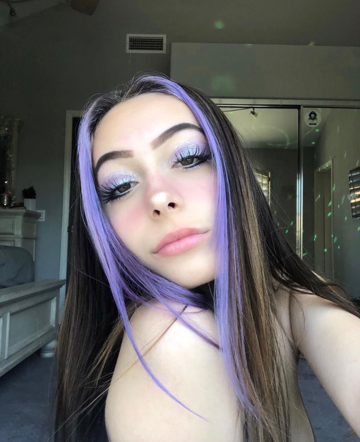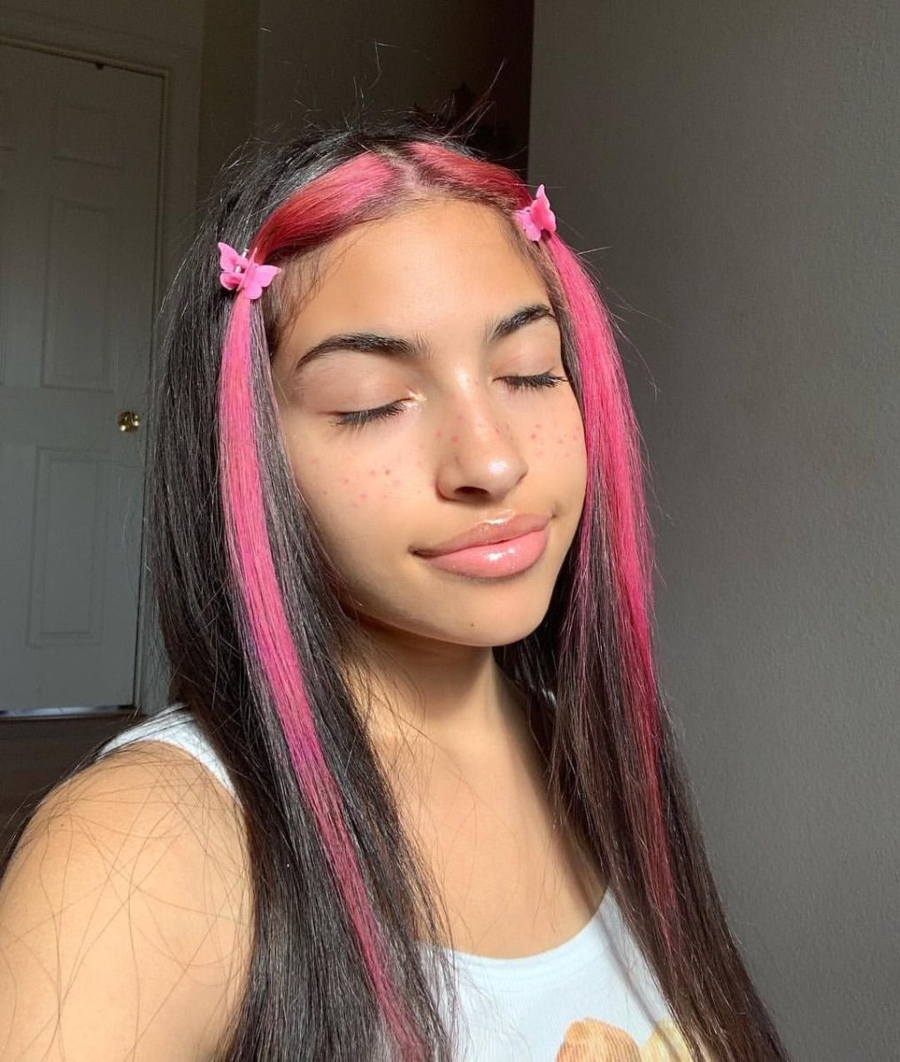 Фиолетовая челка на темных волосах 2020