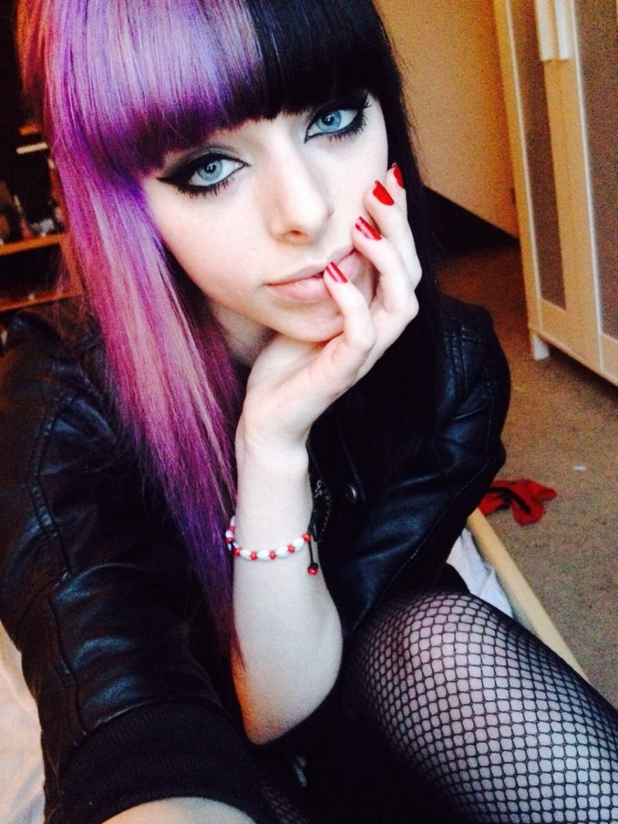 Брюнетка с фиолетовыми волосами