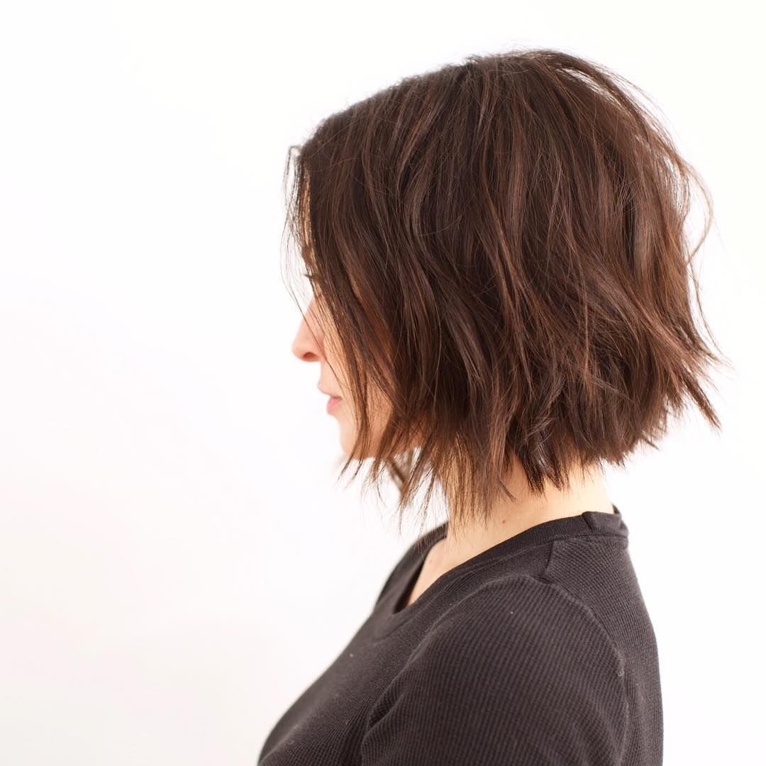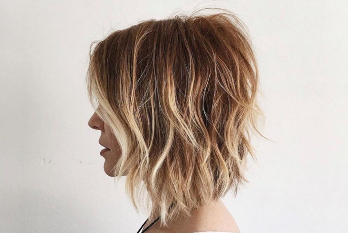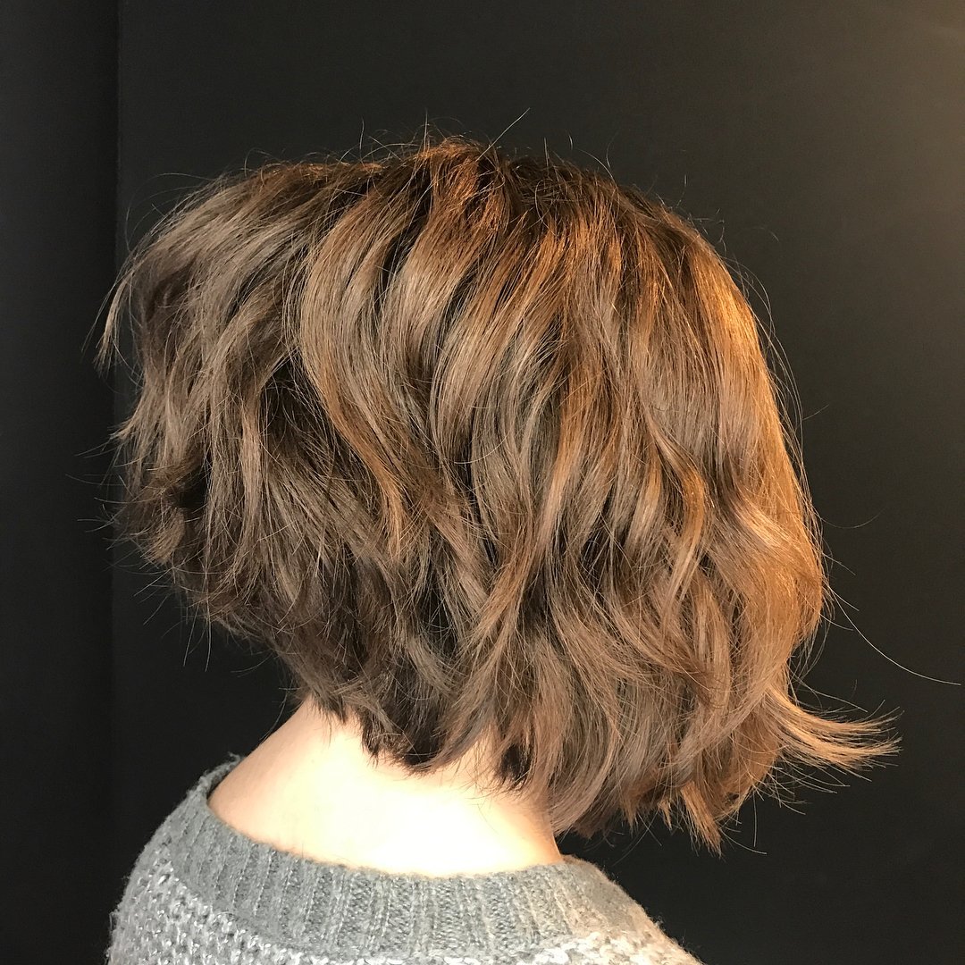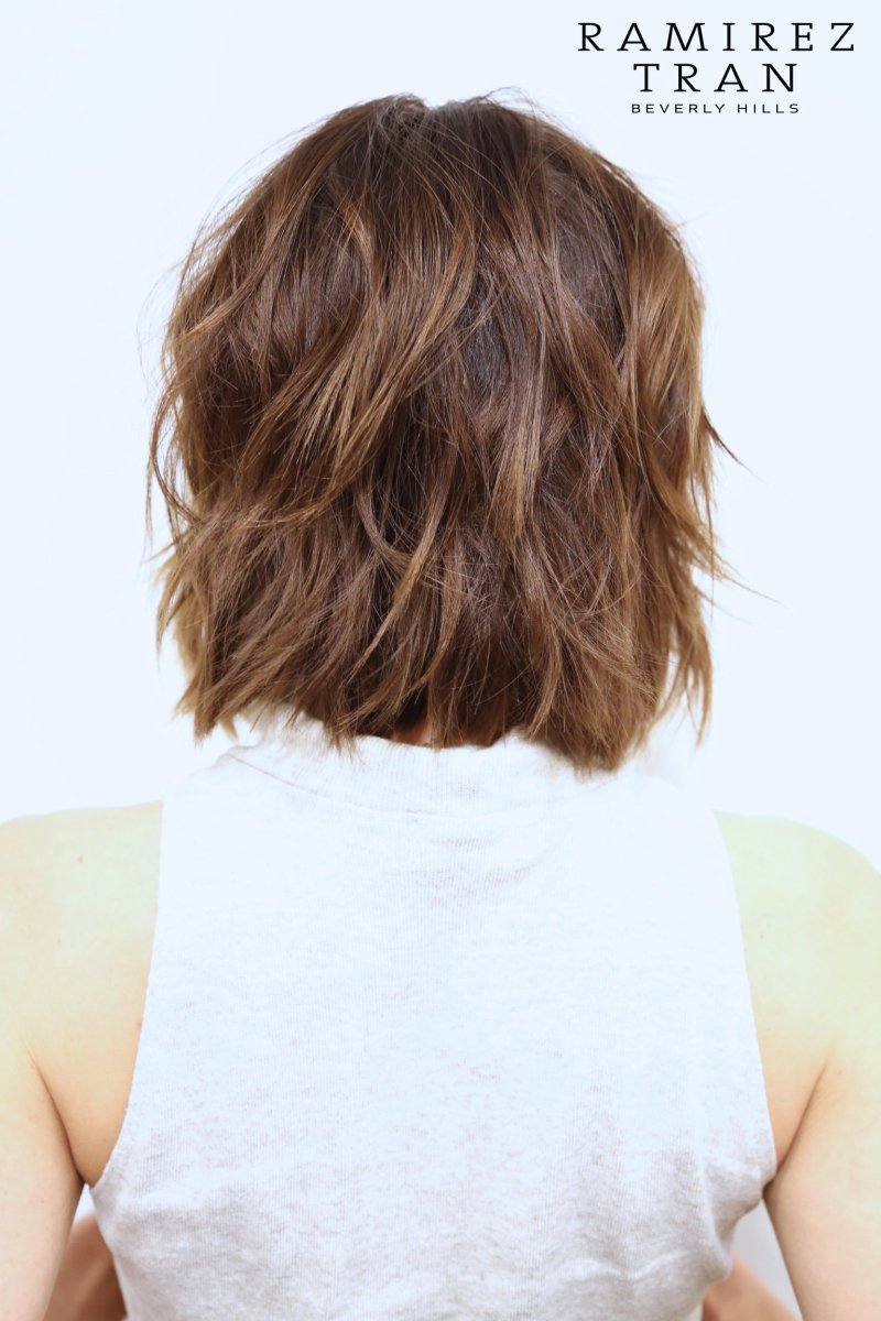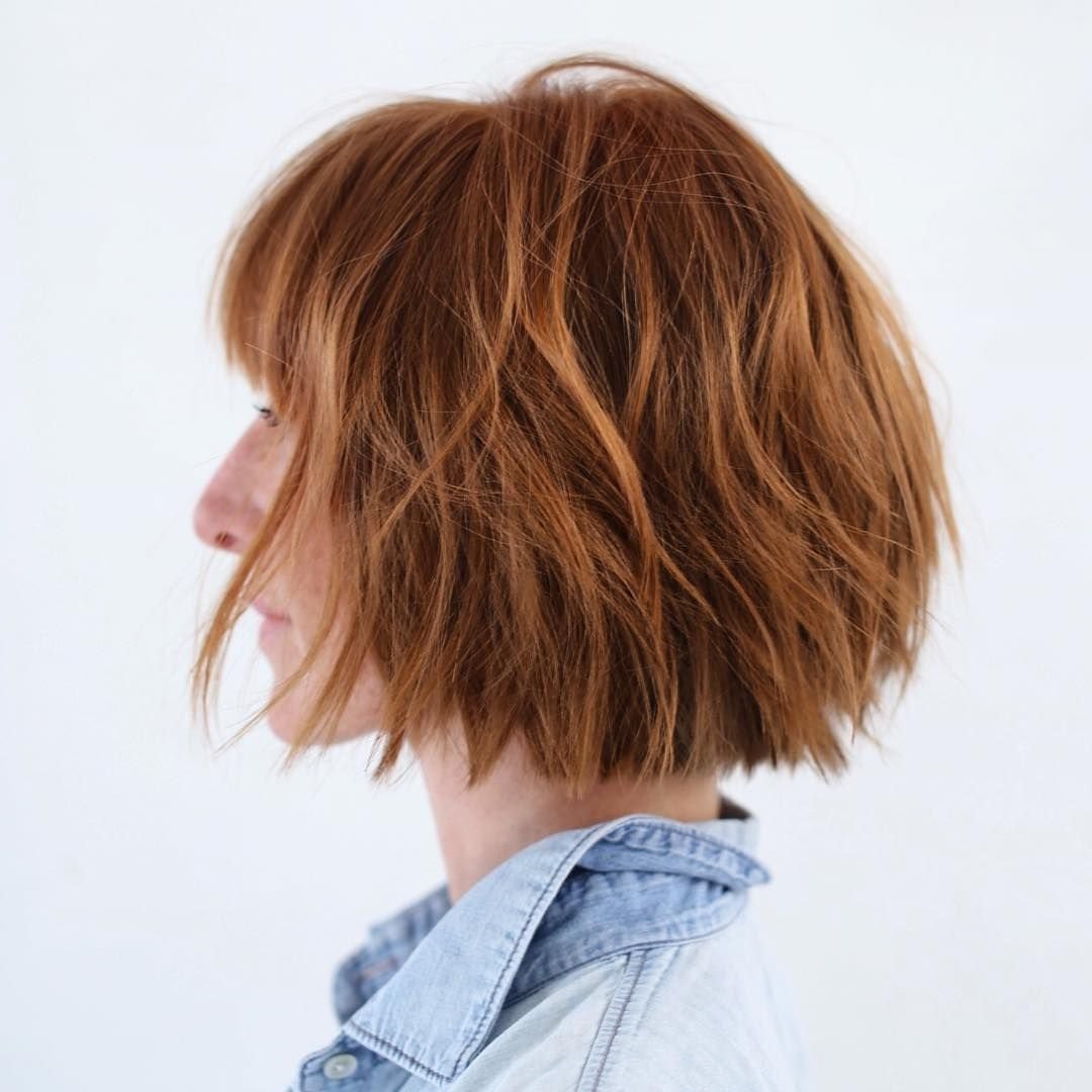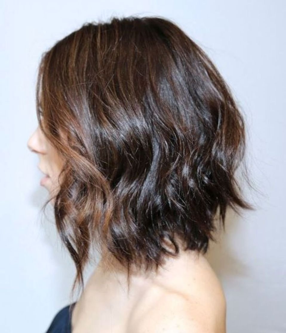 Градуированный Боб на средние волосы с челкой на волнистые волосы
