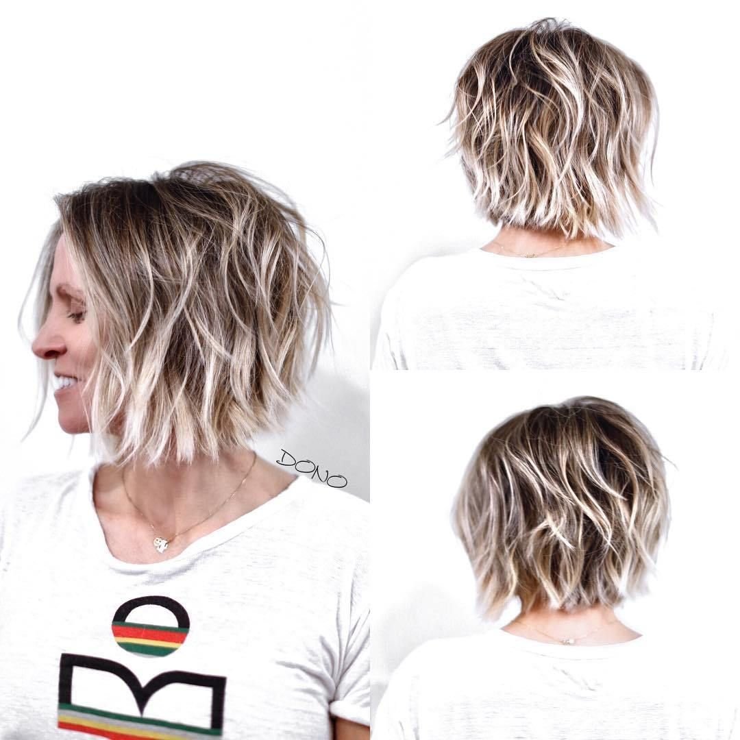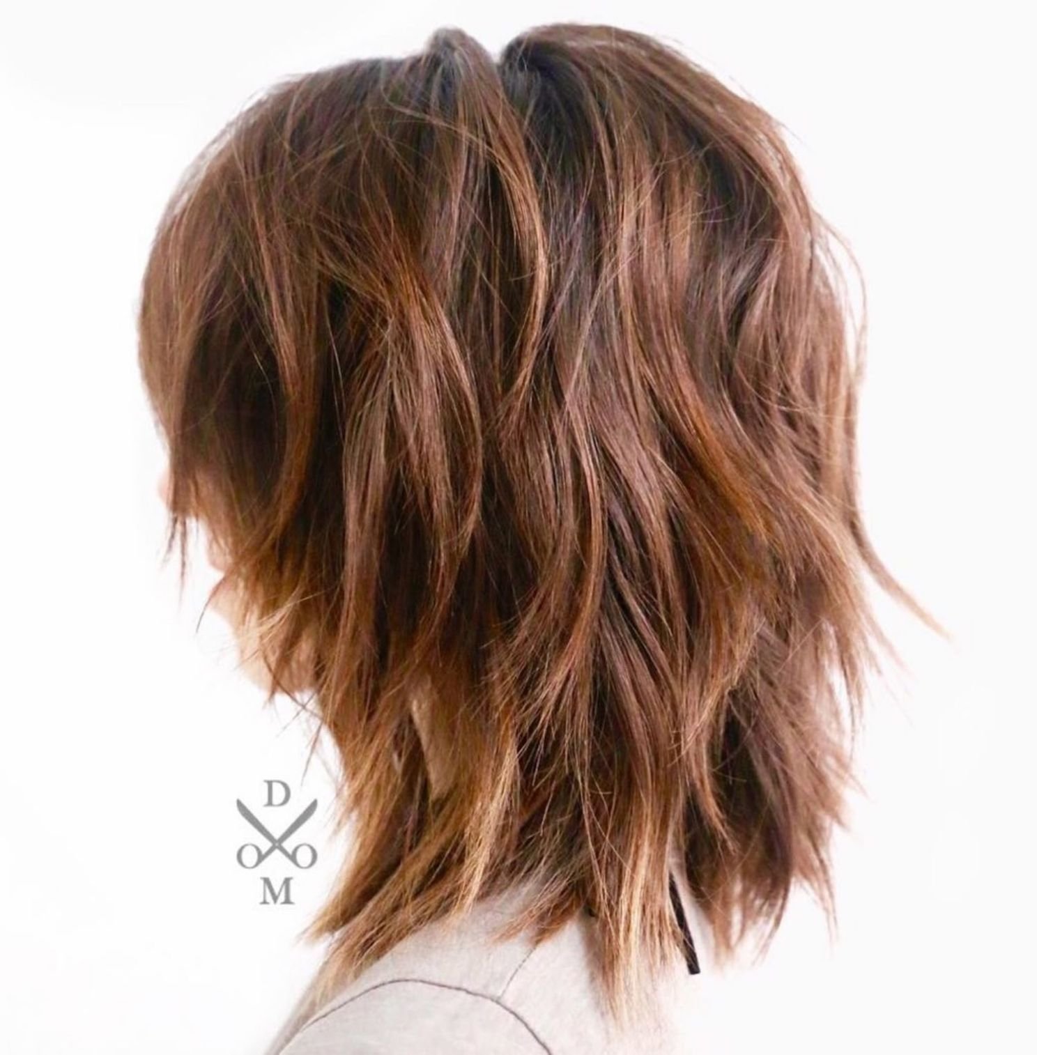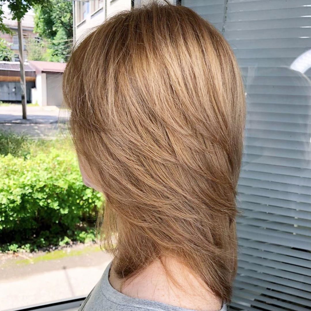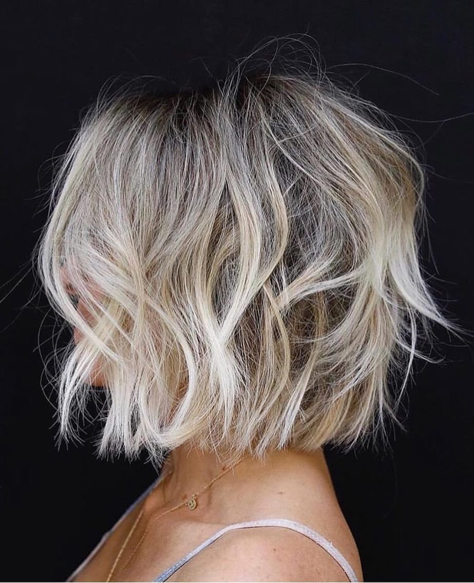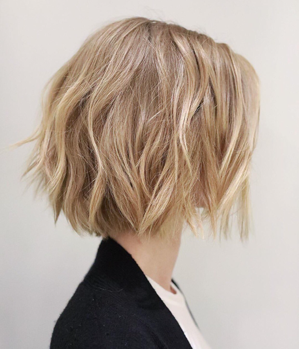Градуированный Боб на средние волосы с челкой на волнистые волосы