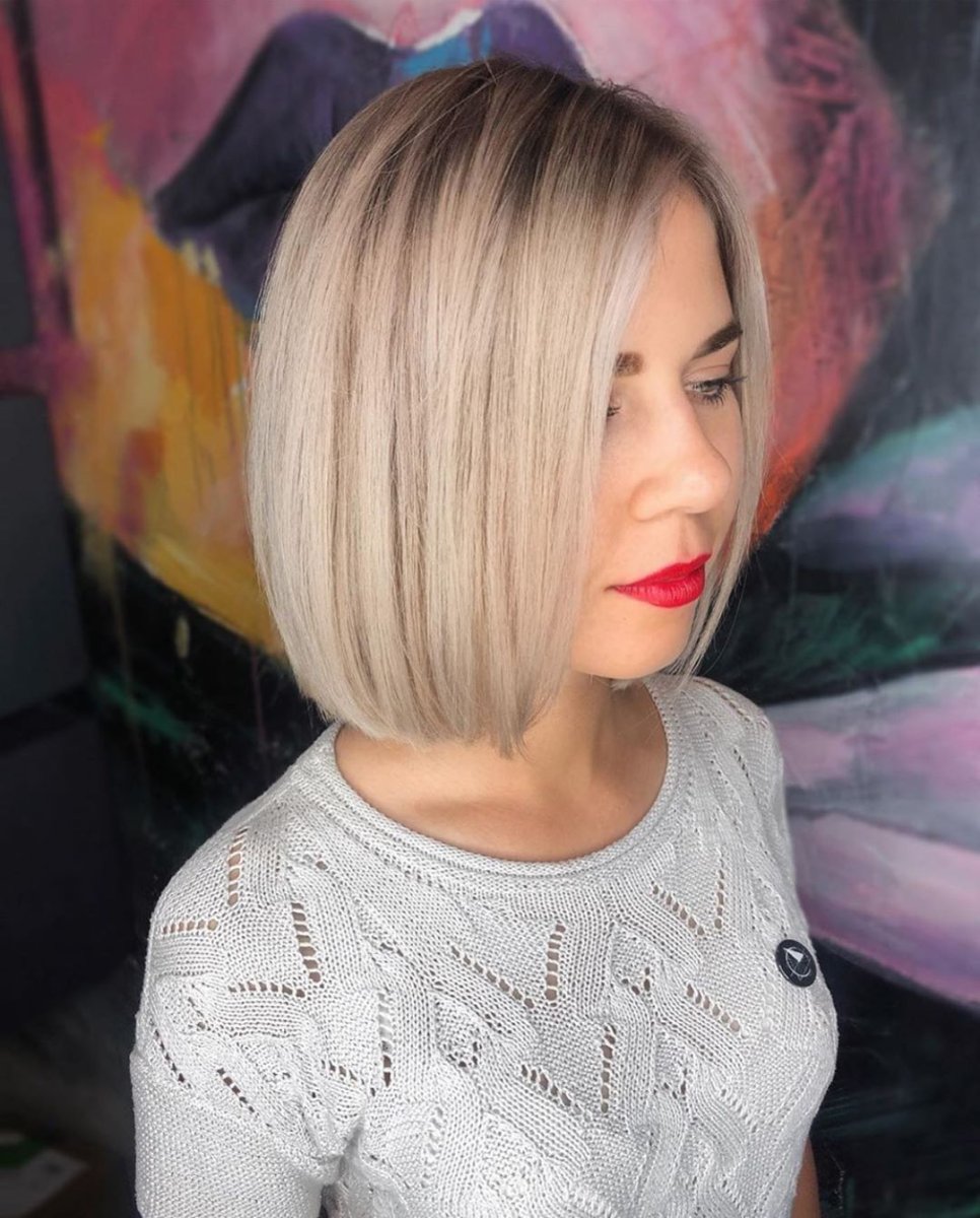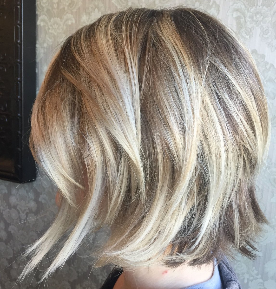 Стрижки Боб-каре на средние волосы с челкой с мелированием
