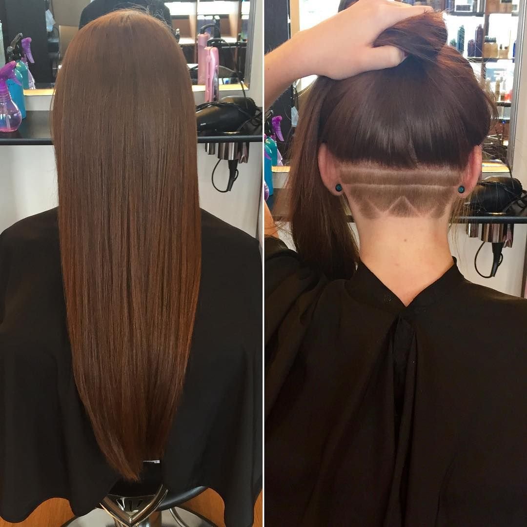 Прическа на длинные волосы с выбритым затылком