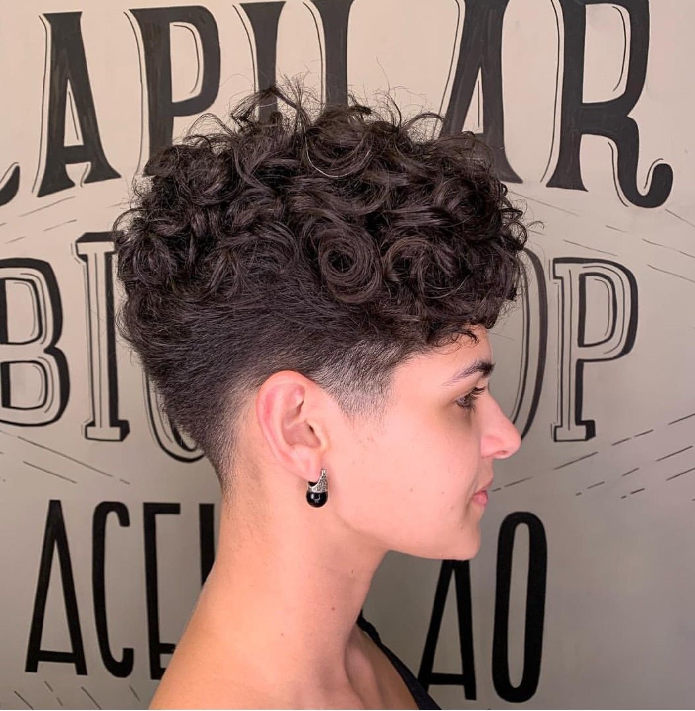 Короткая стрижка на кудрявые волосы с выбритыми висками