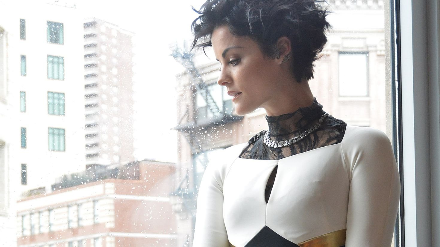 Джейми Александер в черном костюме