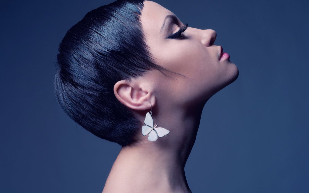 Женская стрижка на черном фоне