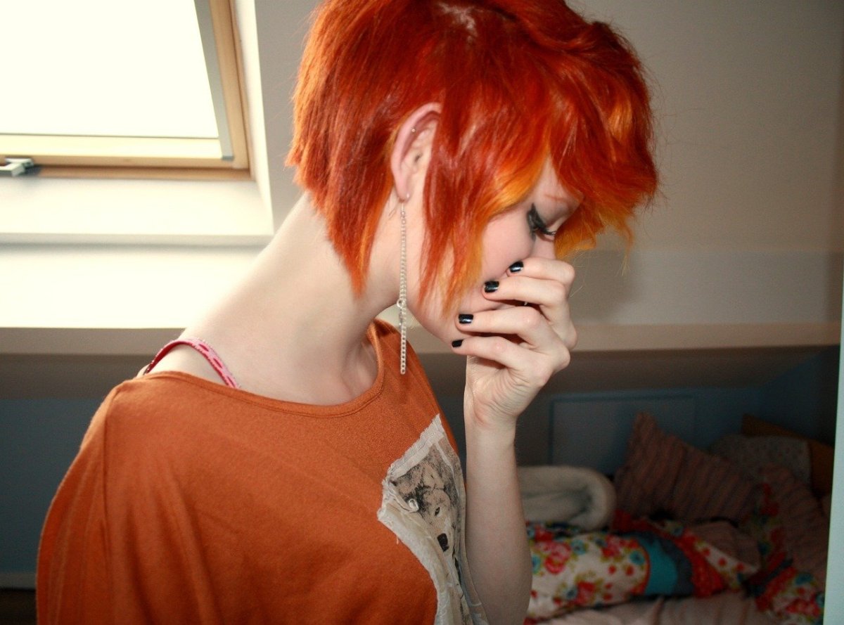 Девушка с короткими красными волосами