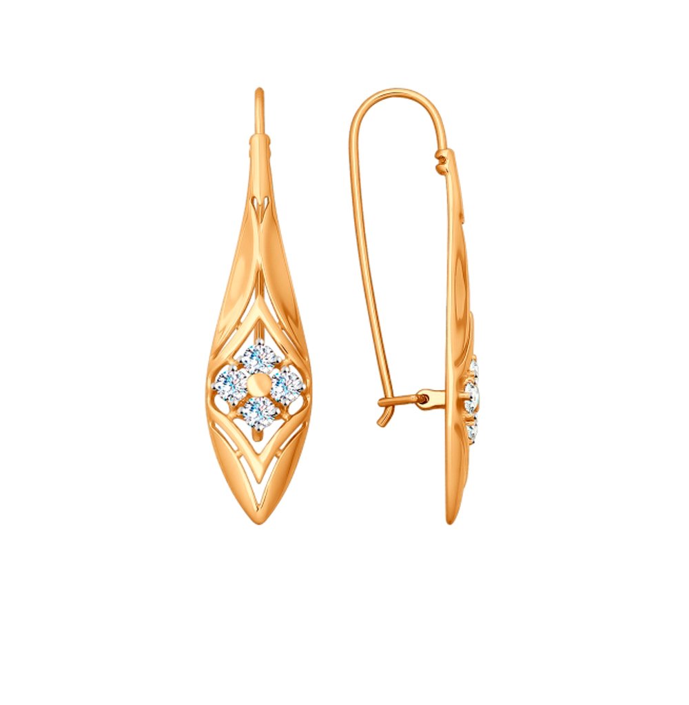 Серьги с фианитами из золота 585 из коллекции рембел