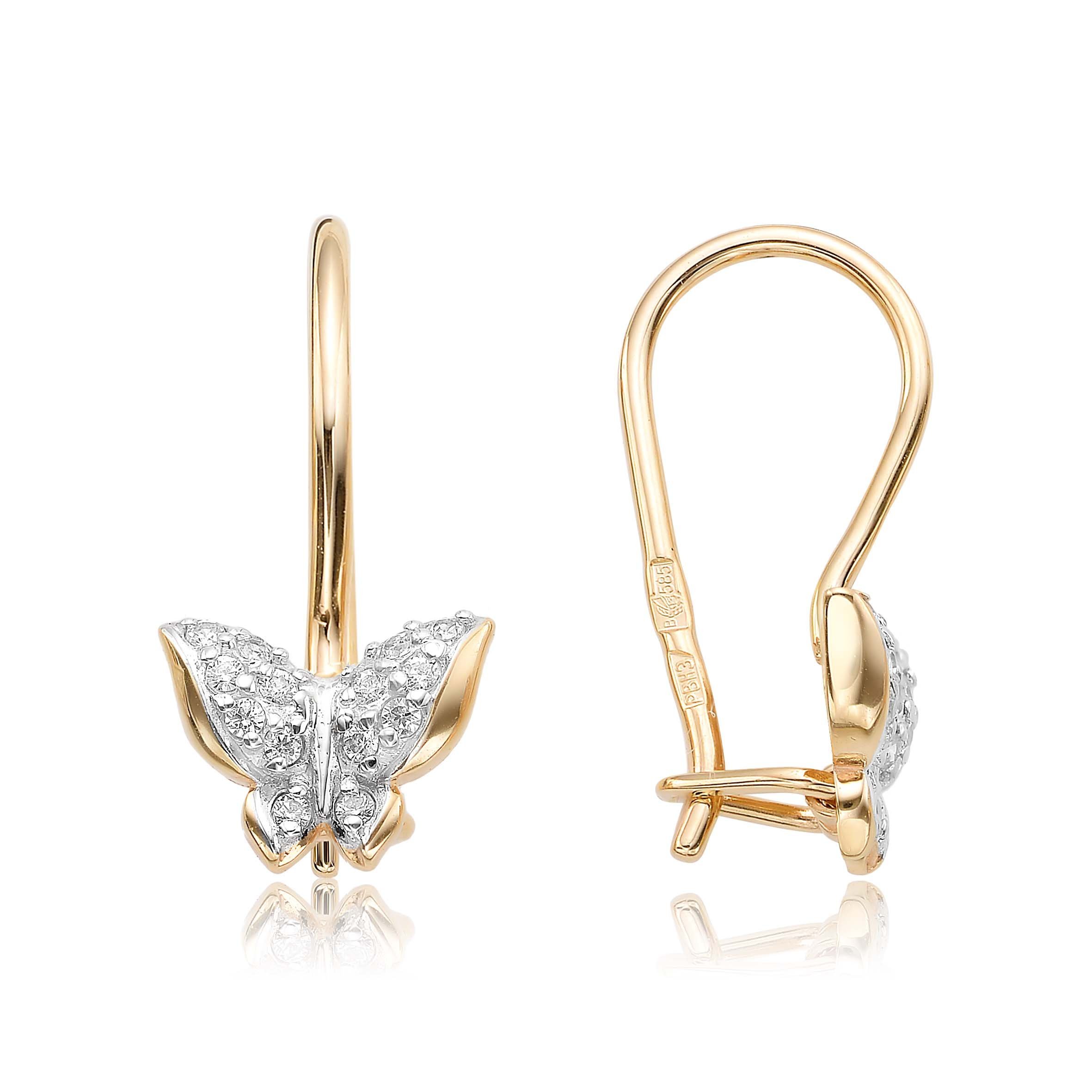 Серьги с фианитами из золота 585