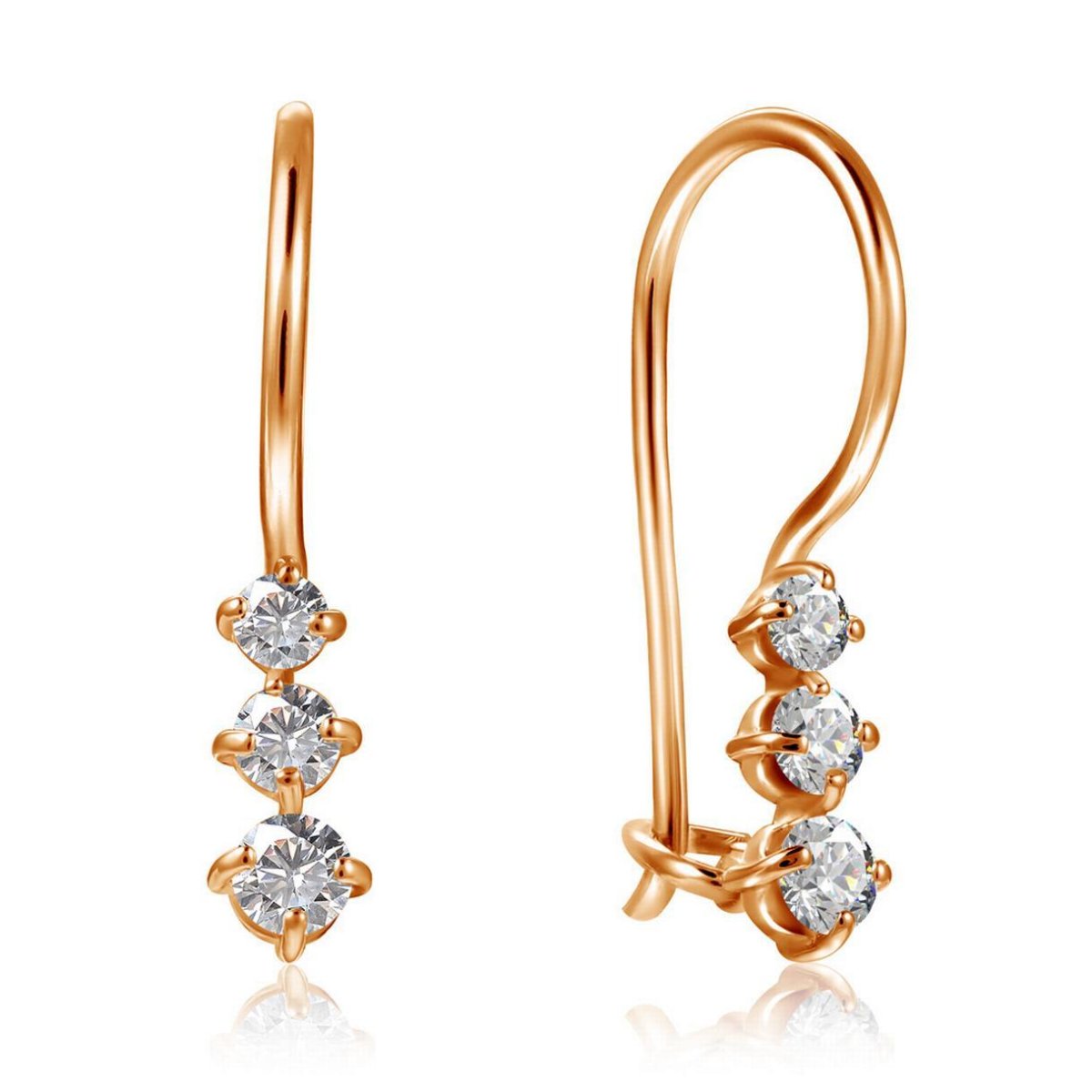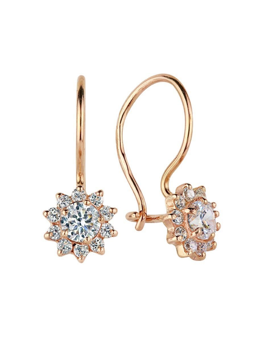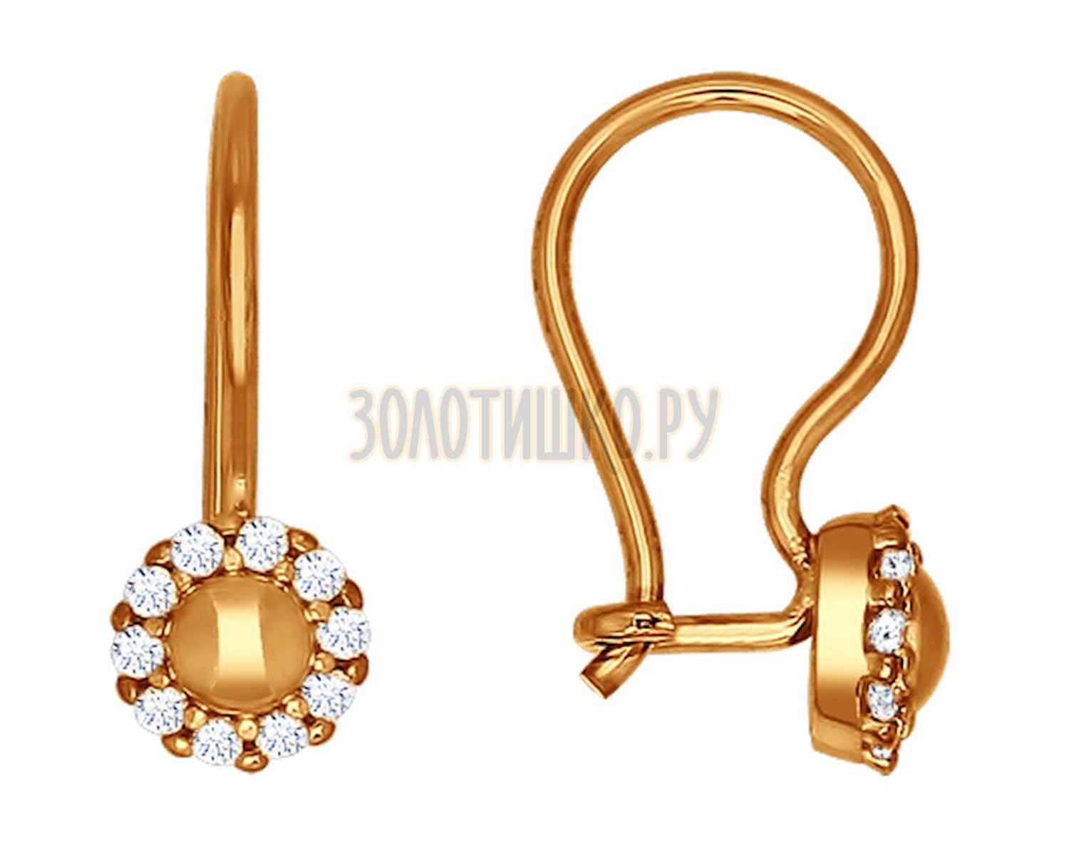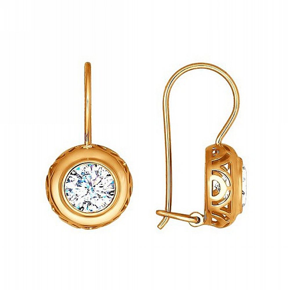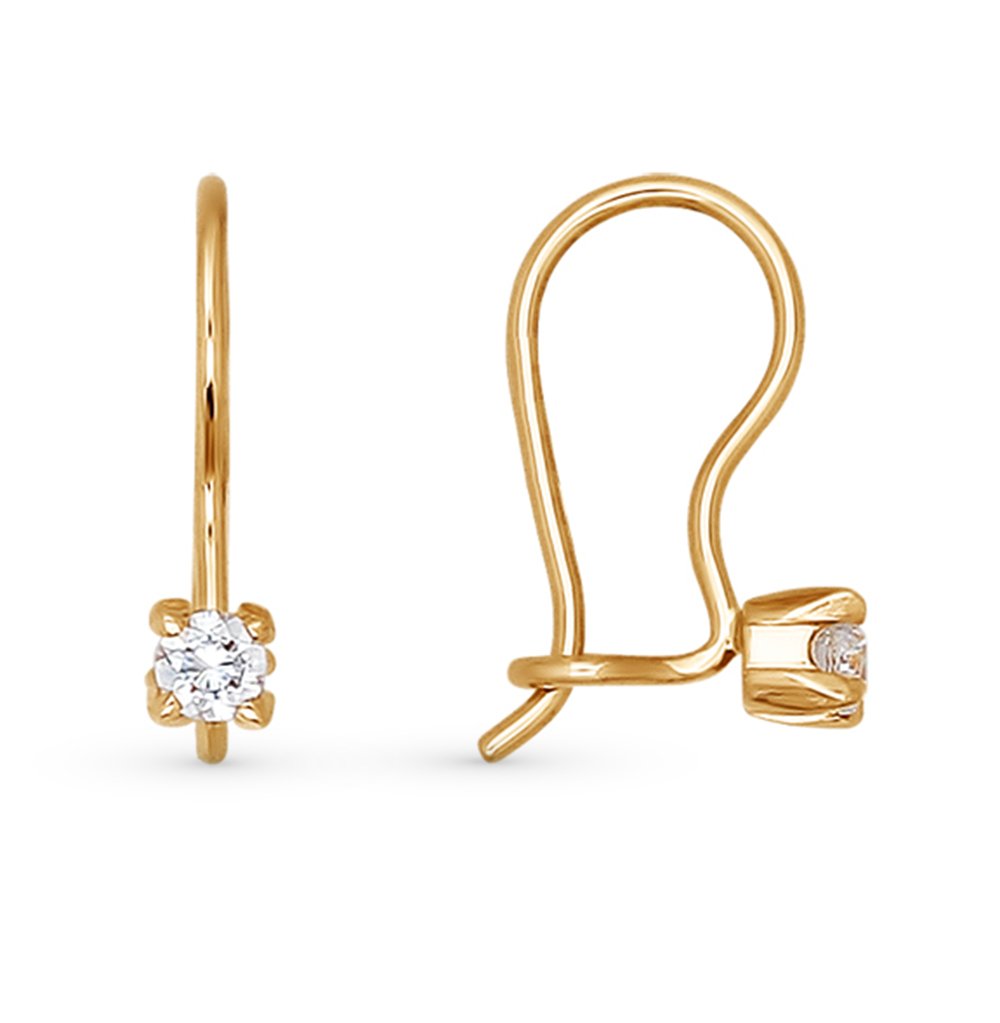 Санлайт серьги с фианитами золотые с французским замком