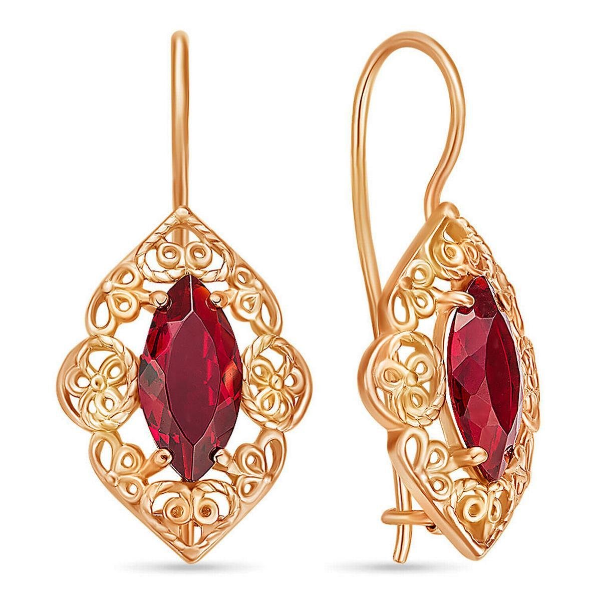 Серьги из красного золота 585 с гранатами, французский замок (212040001261)