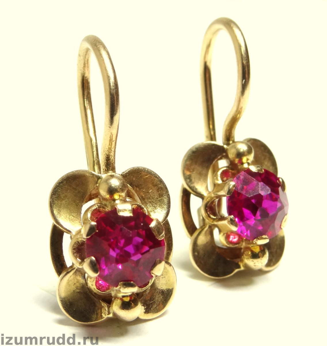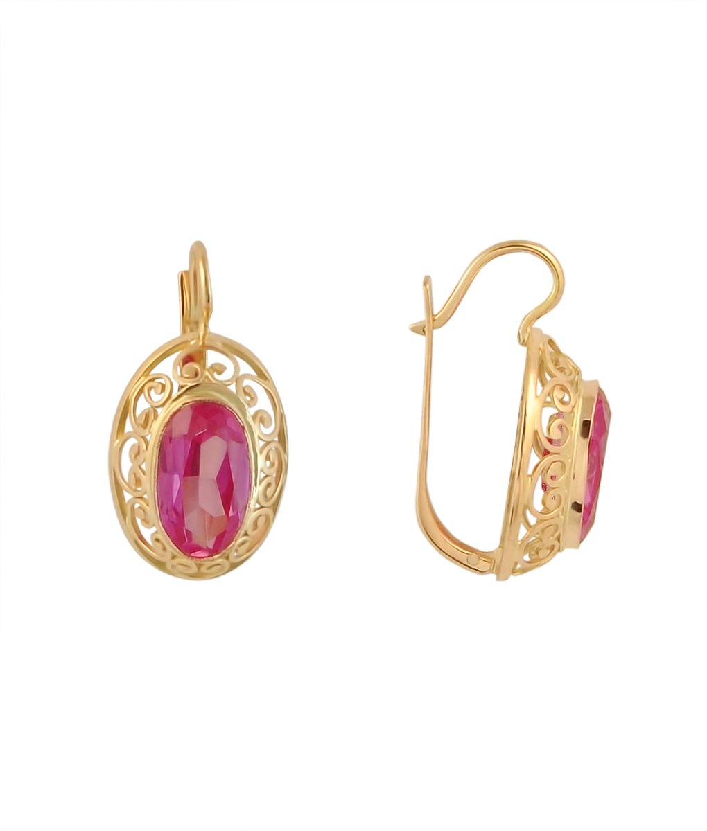 Золотые серьги с рубином 583 пробы СССР