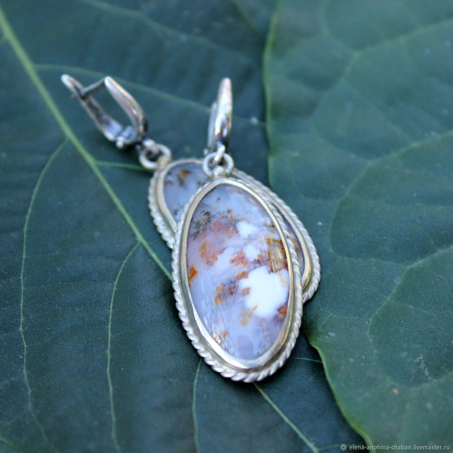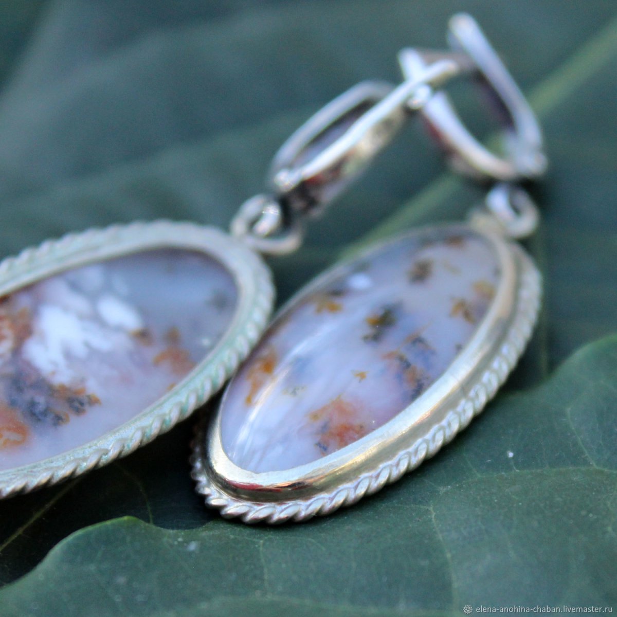 Моховой агат серьги