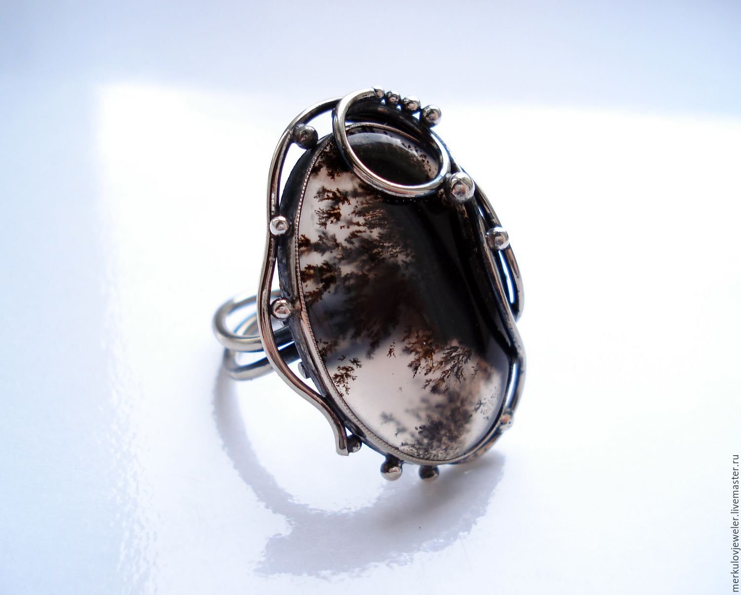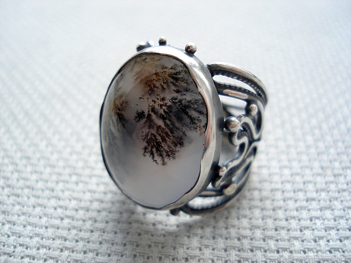 Ярмарка Мастеров кольцо пруд с агатом фото цена моховый агат