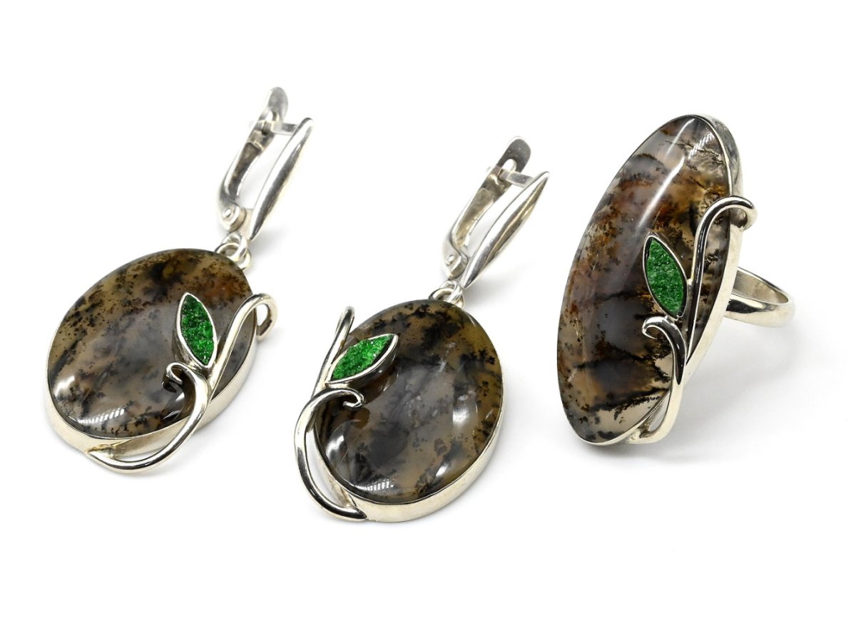 Украшения с моховым агатом