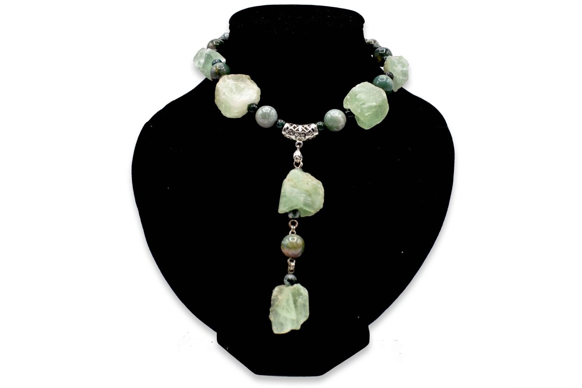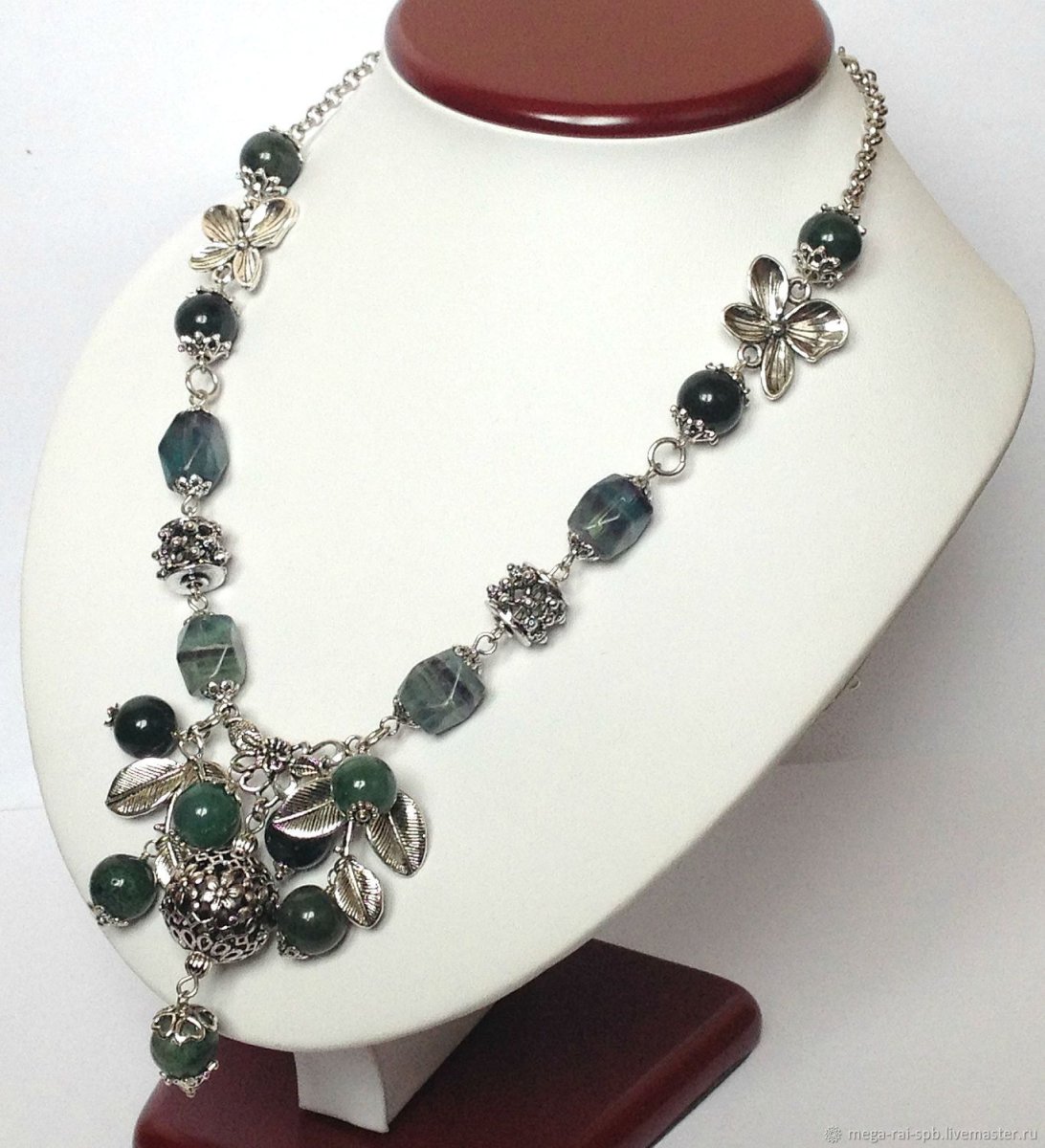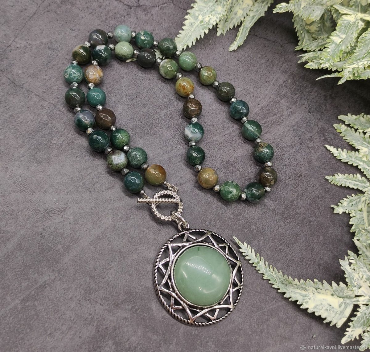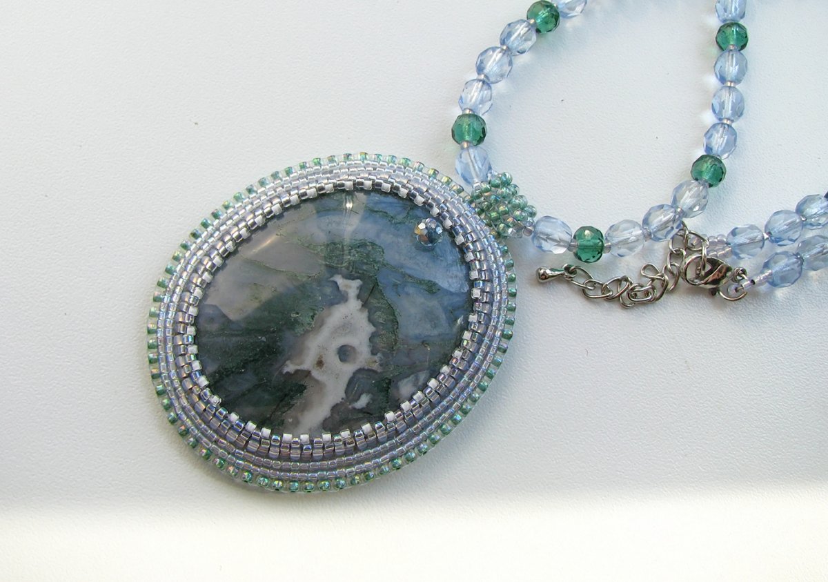 Моховый агат колье