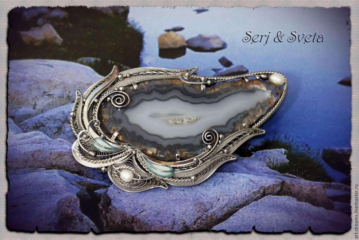 Брошь агат филигрань