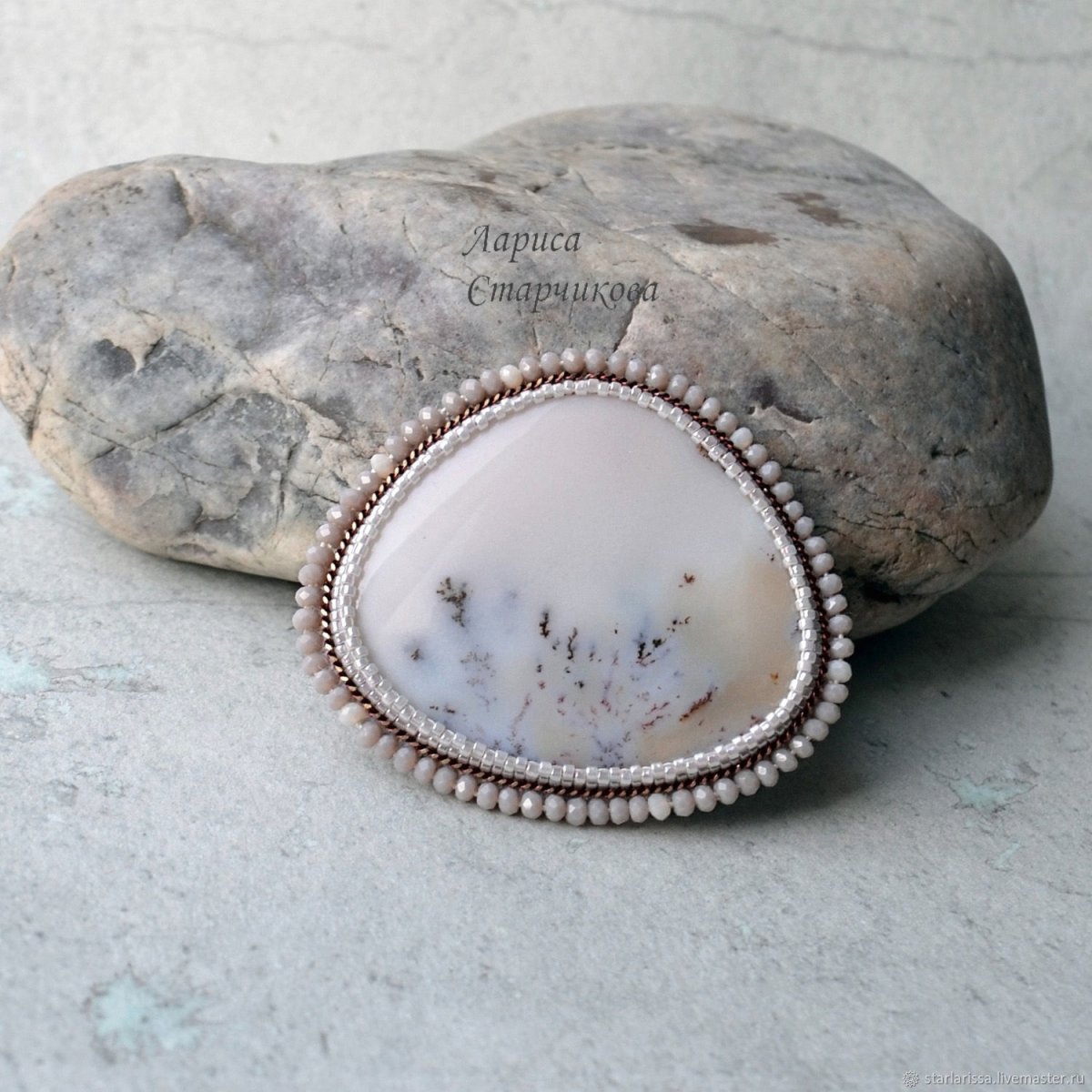 Моховой агат брошь