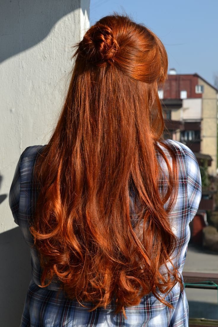 Длинные рыжие волосы со спины