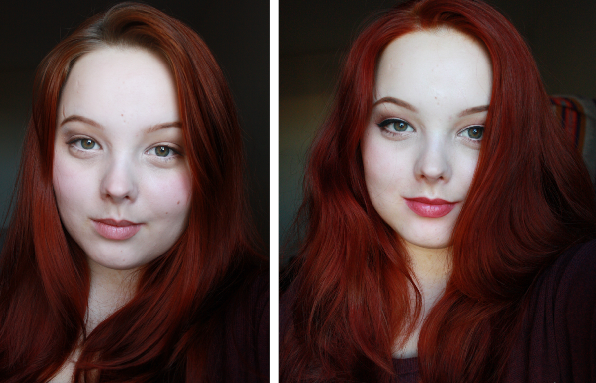 Окрашивание в рыжий до и после