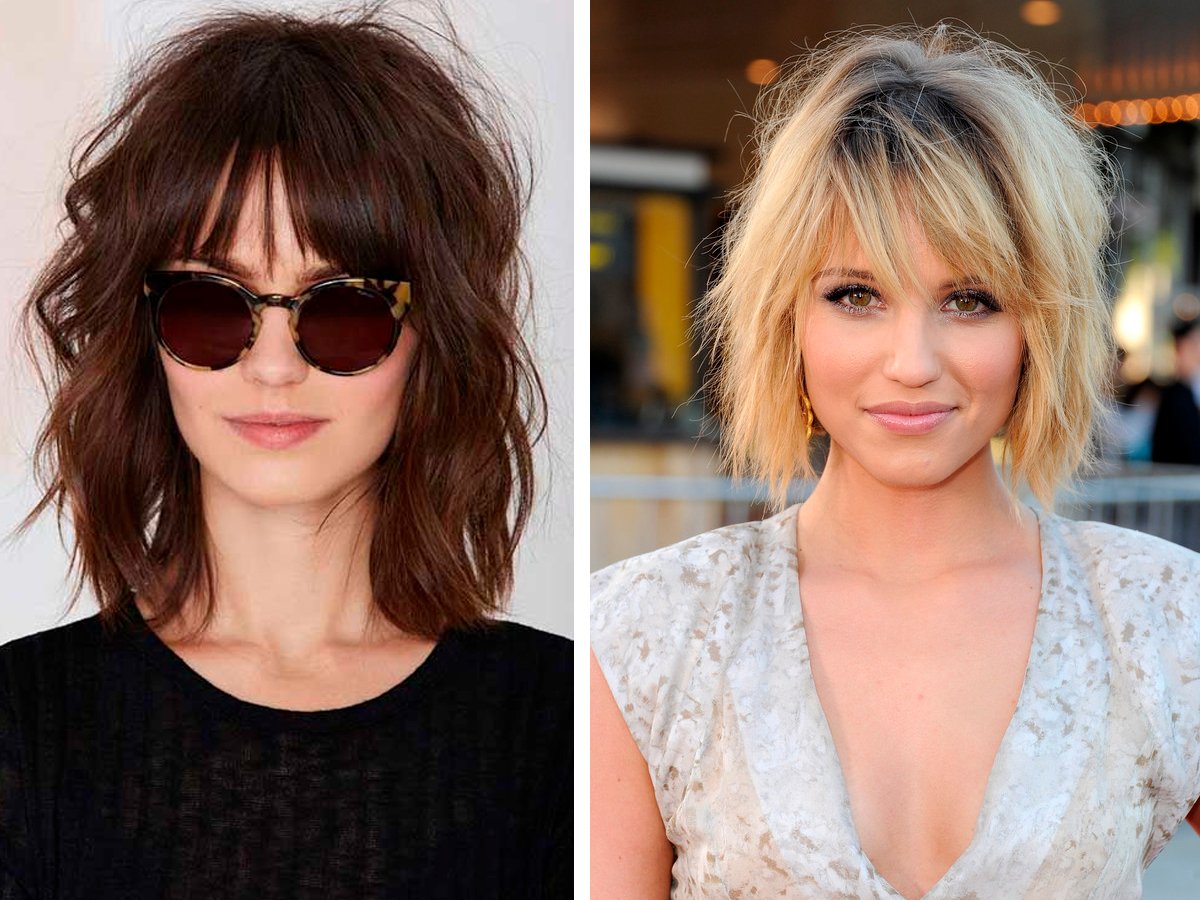 Стрижка рваная лесенка на средние волосы с челкой