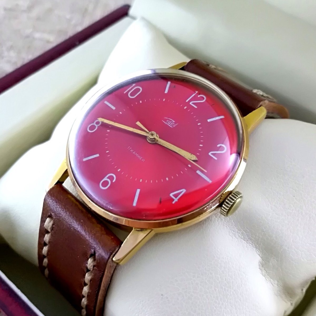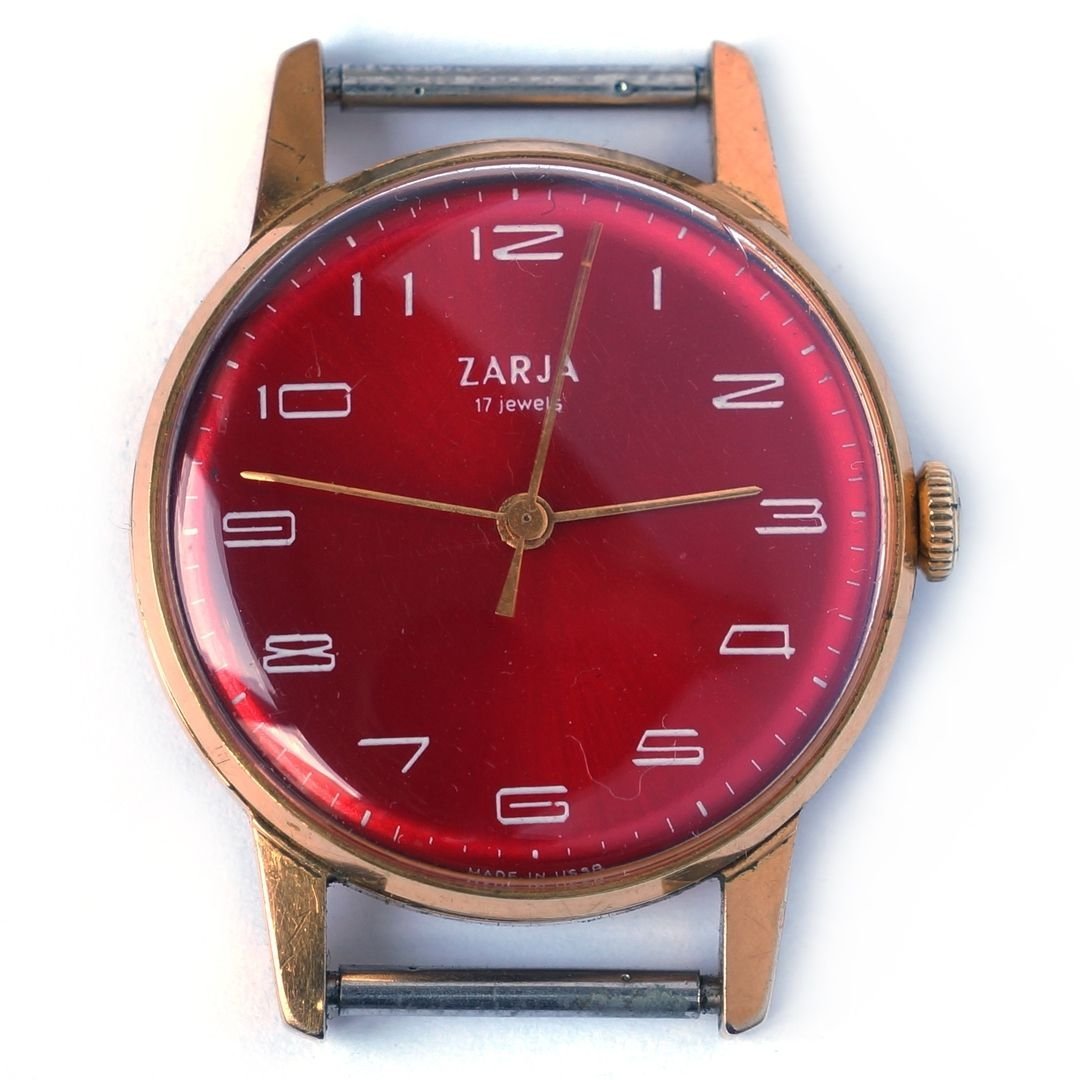 Советские часы Заря 17 камней красный циферблат
