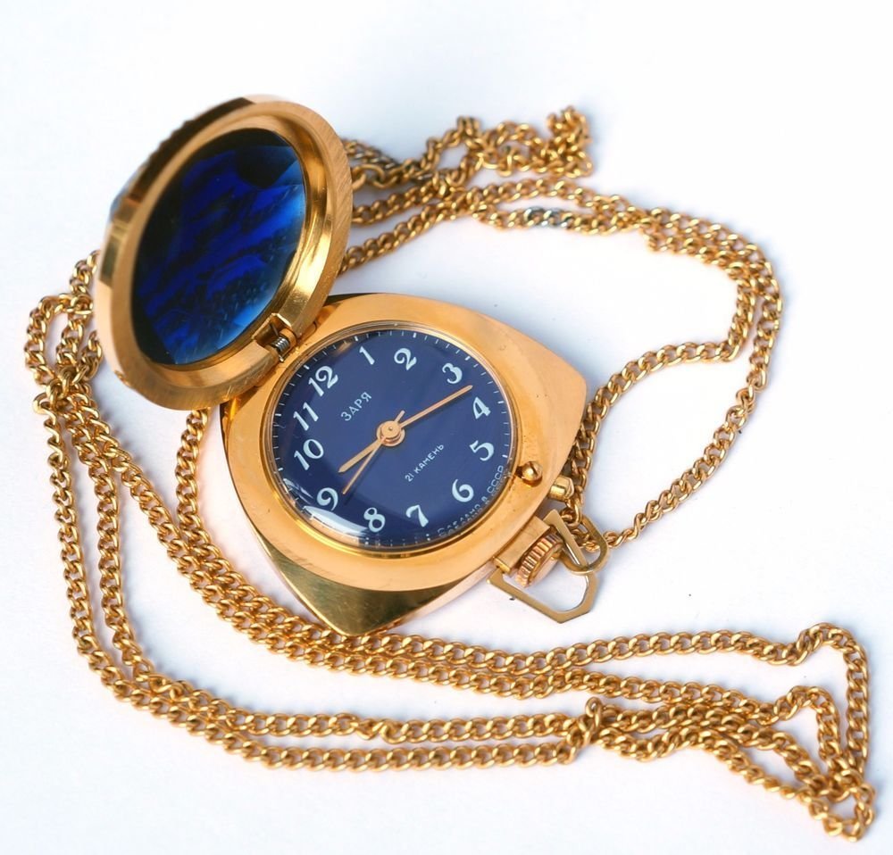 Заря часы кулон 17 камней позолота
