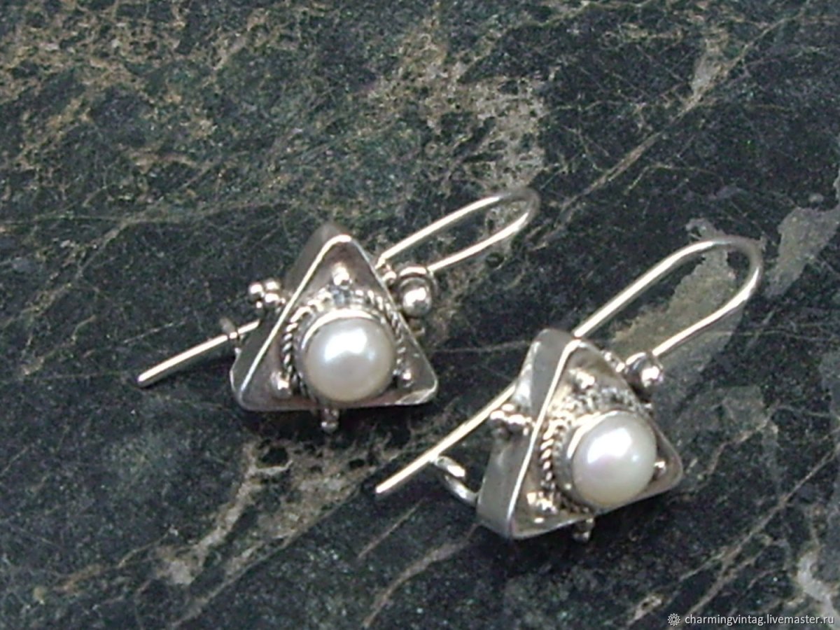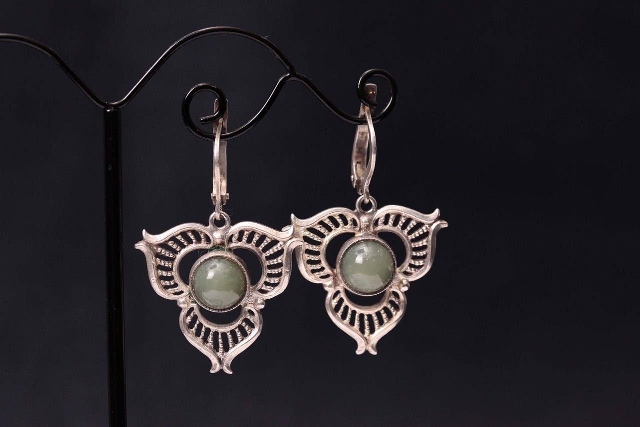 Серьги из яшмы Винтаж с позолотой из серебра треугольной формы