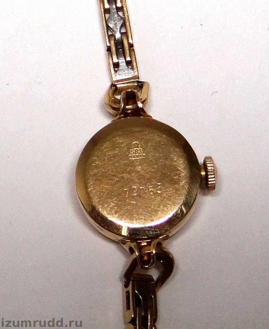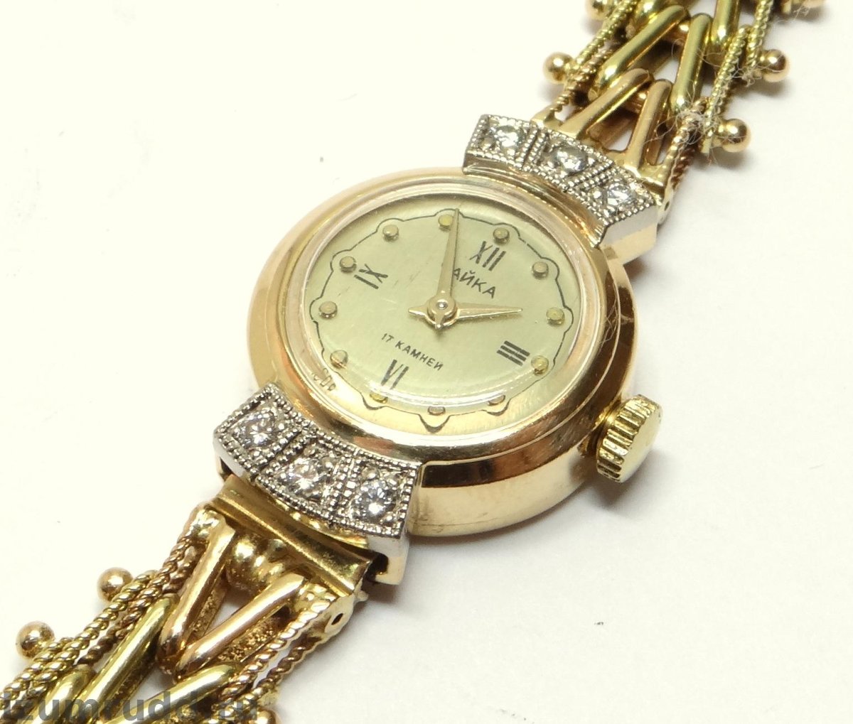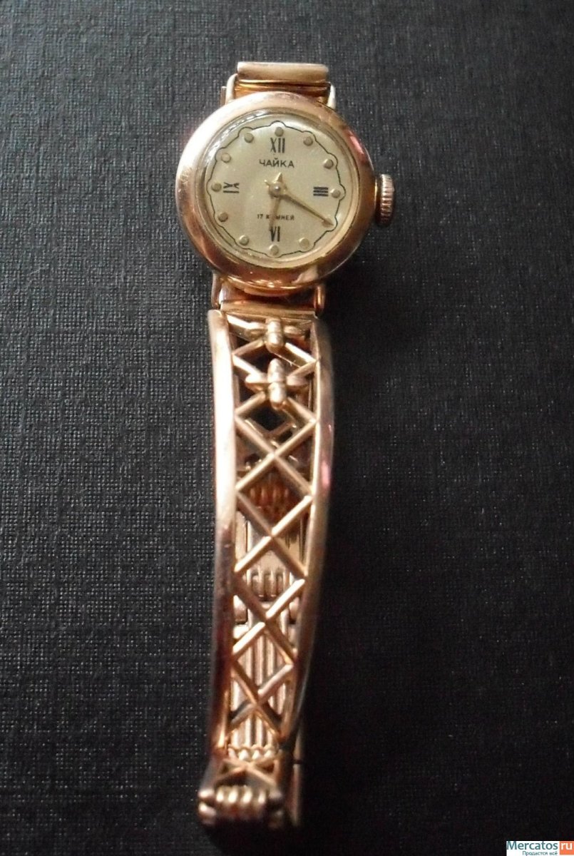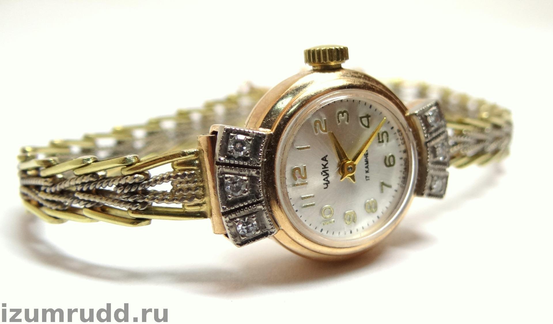 Женские часы наручные Чайка золотые с браслетом 583 пробы