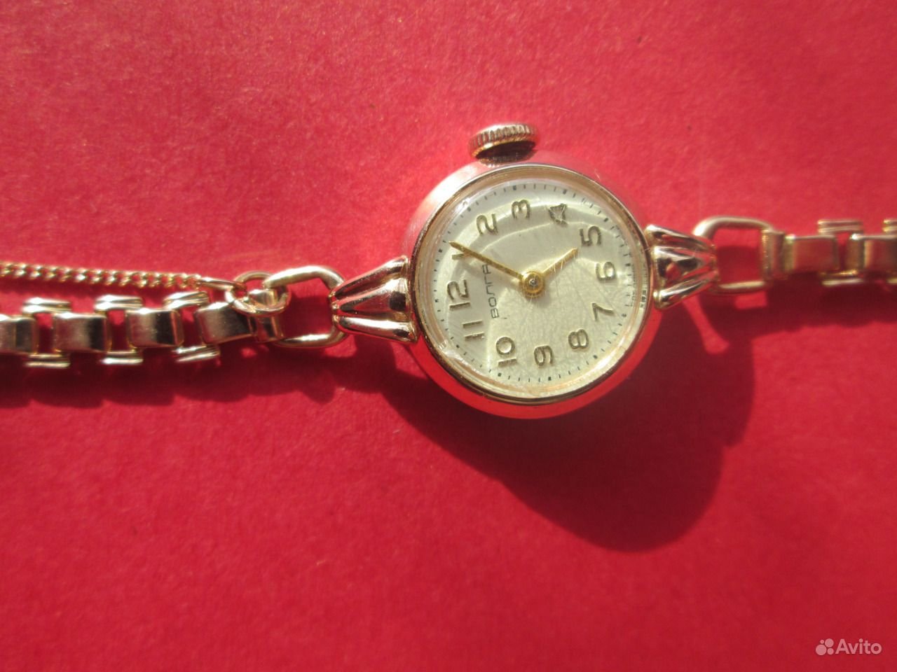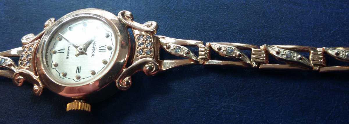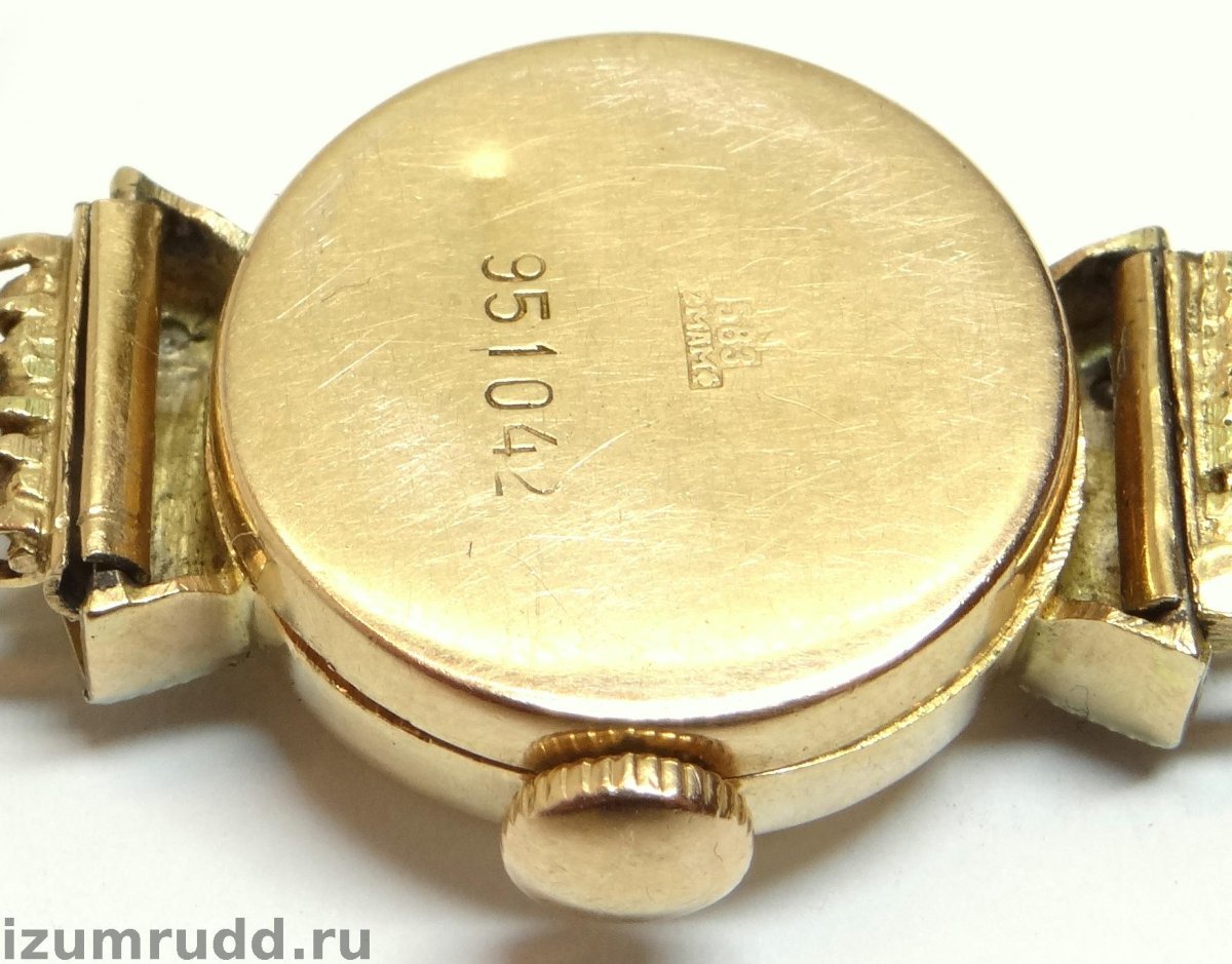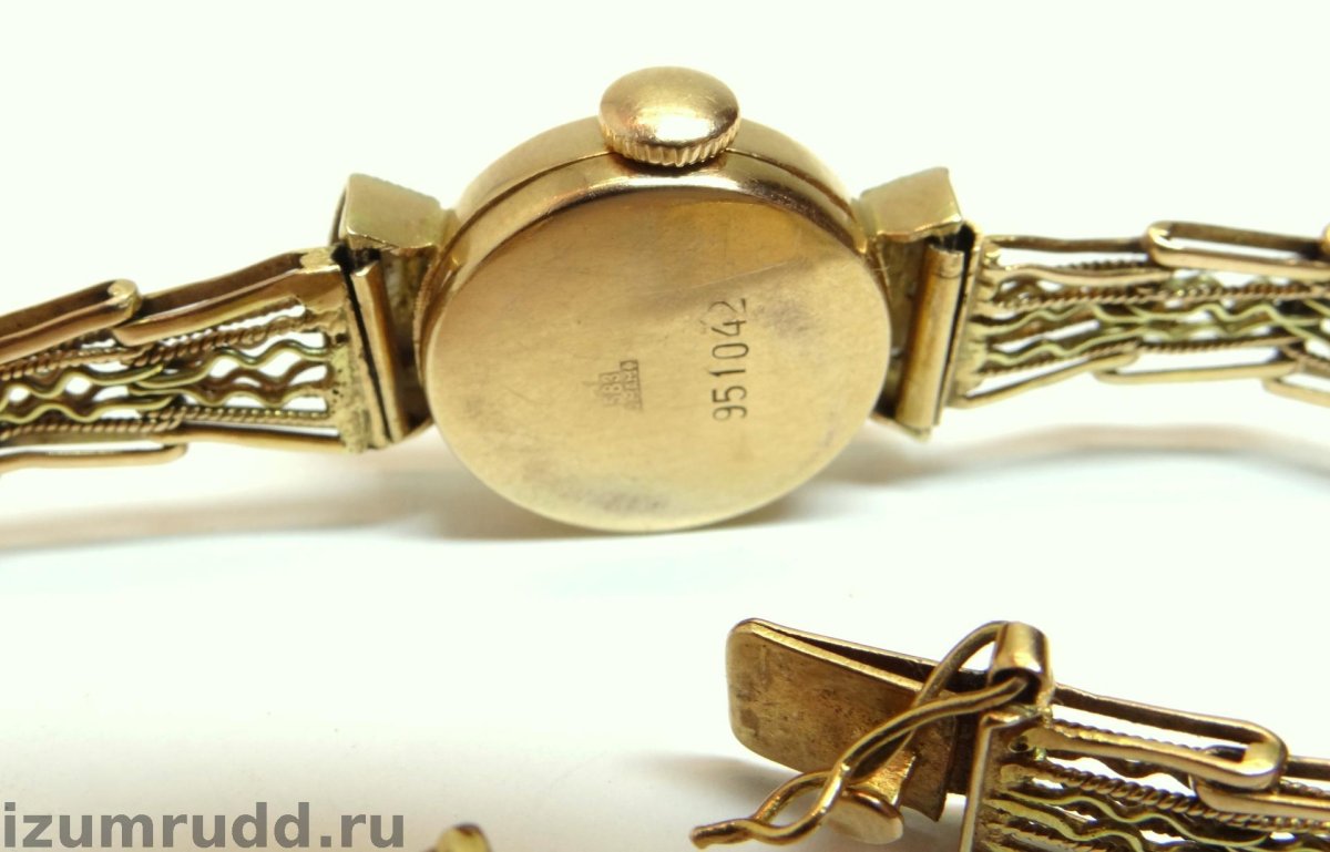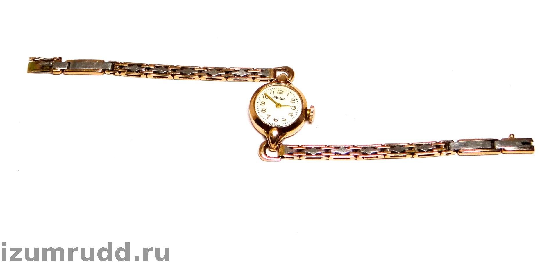 Женские часы наручные Чайка золотые с браслетом 583 пробы