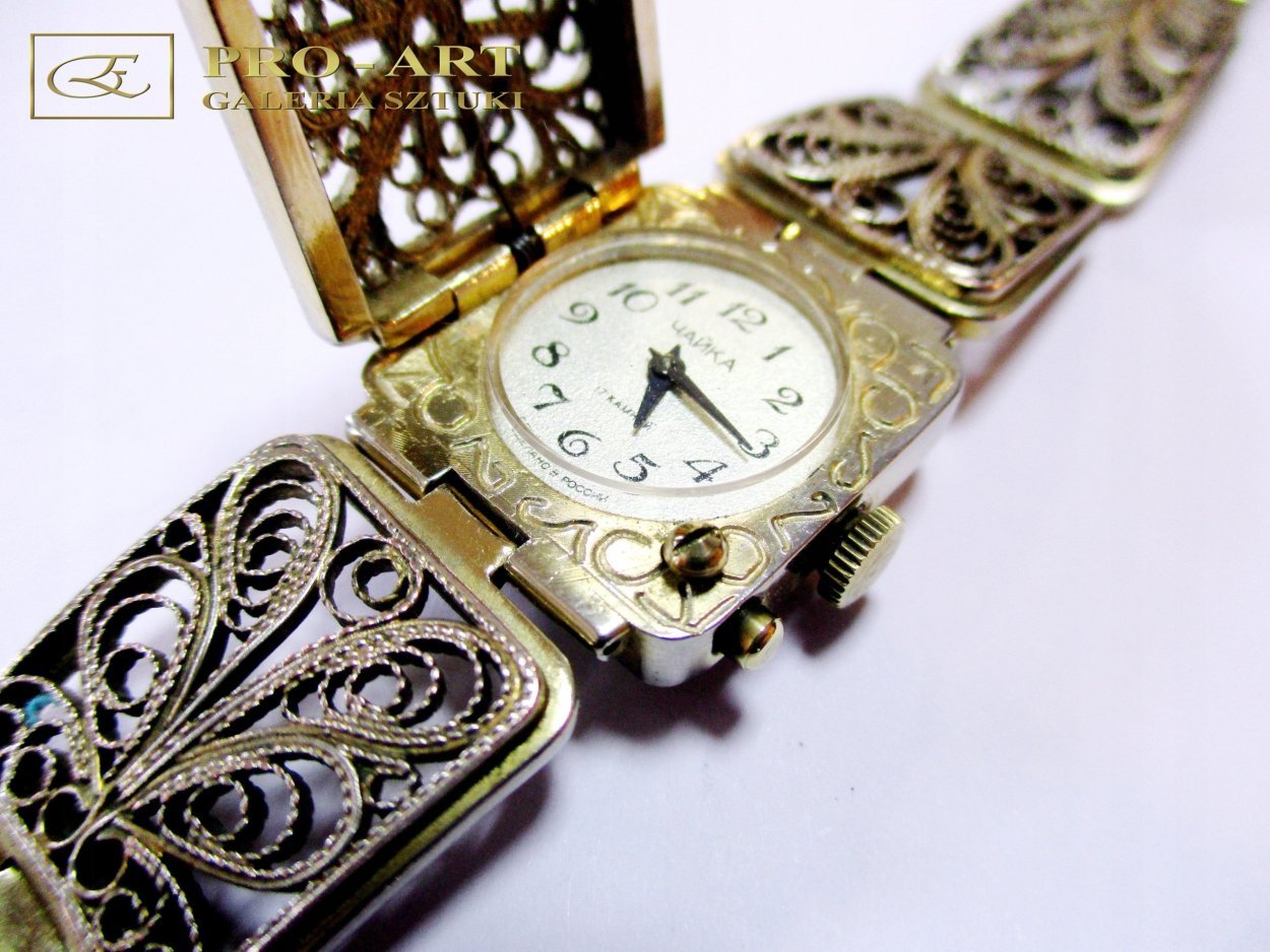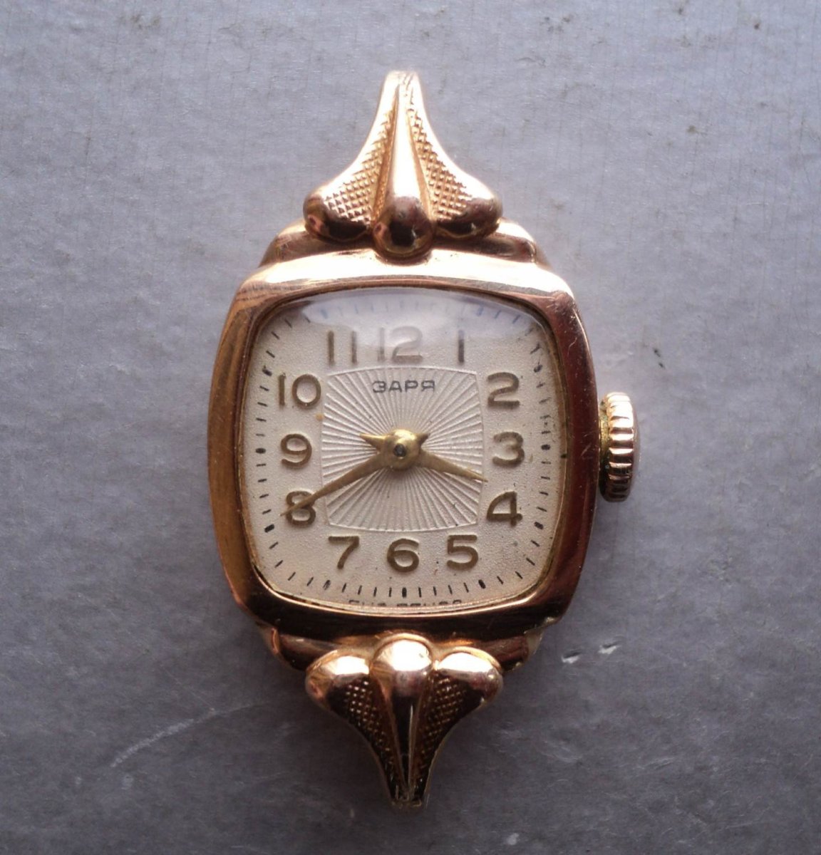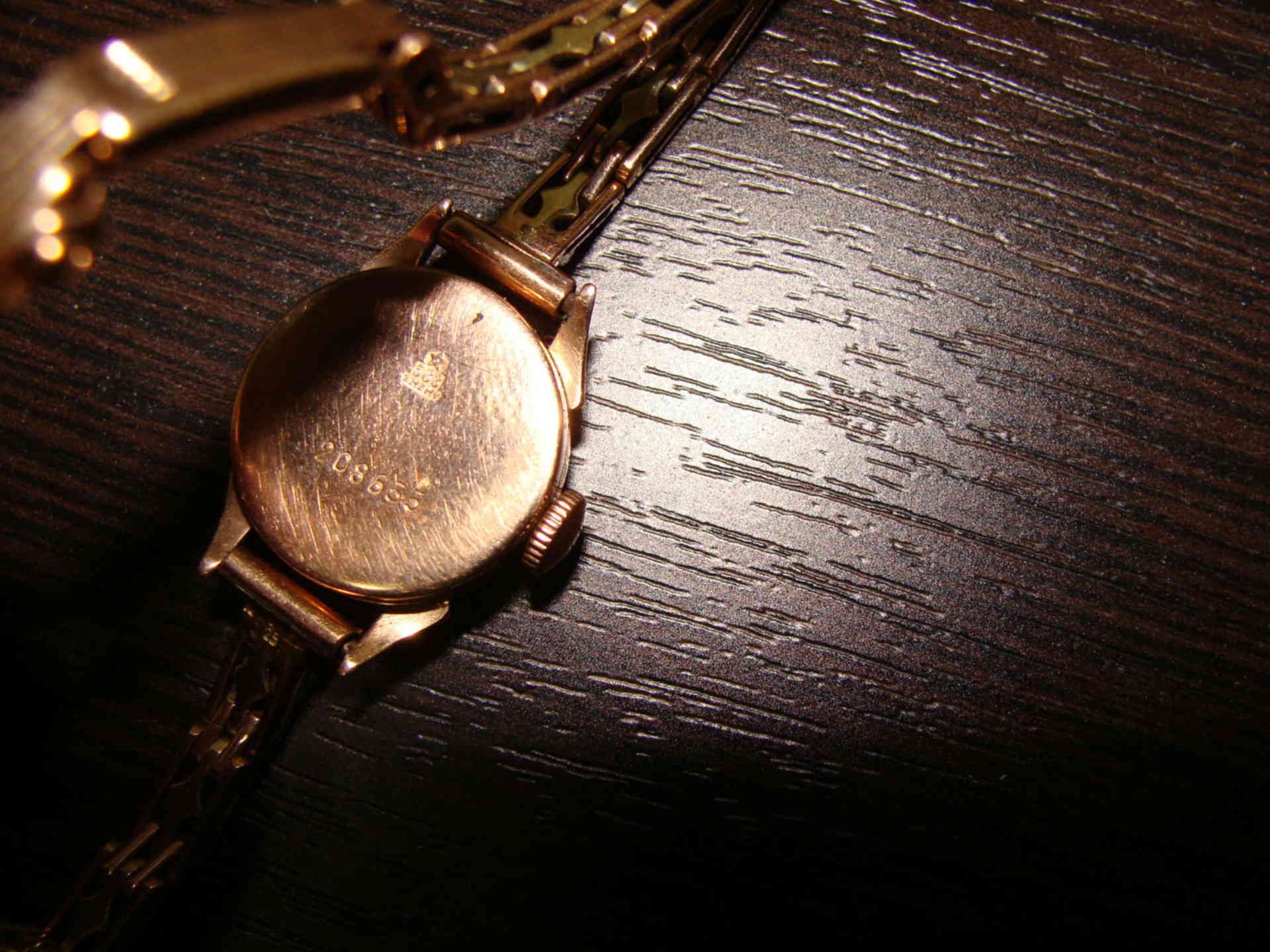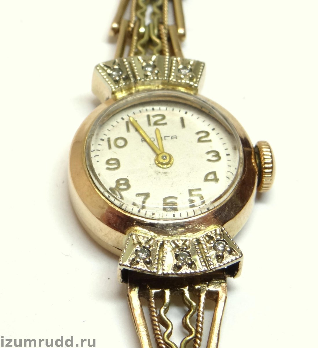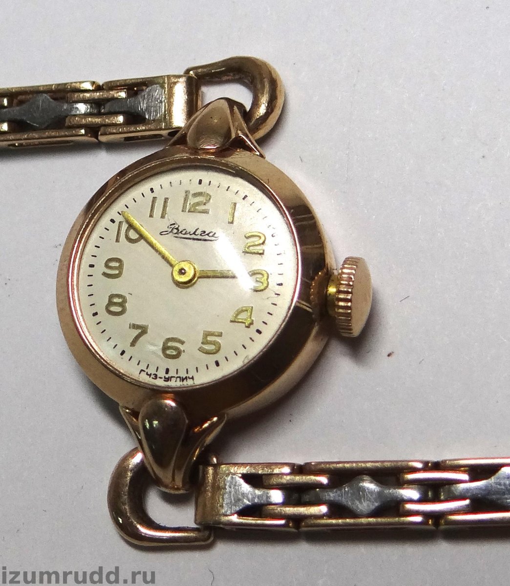 Женские часы наручные Чайка золотые с браслетом 583 пробы