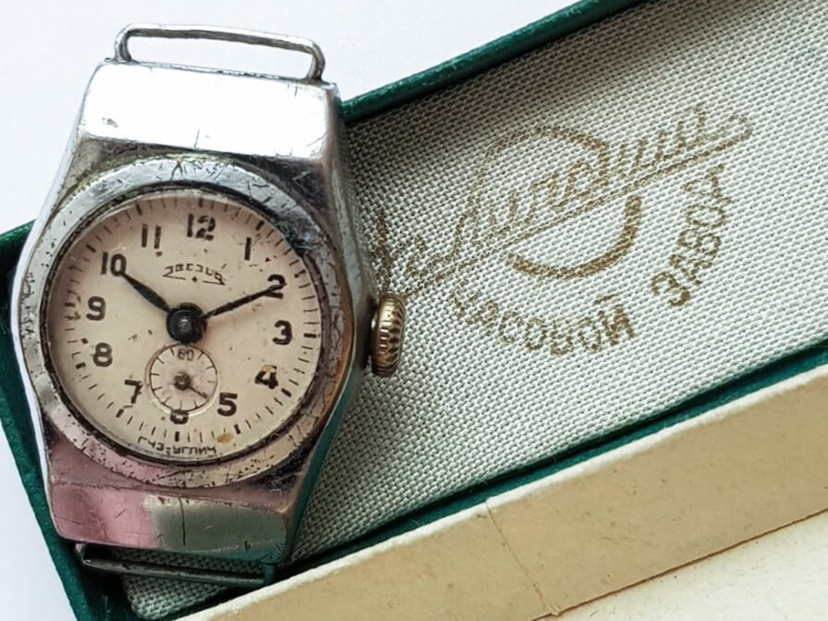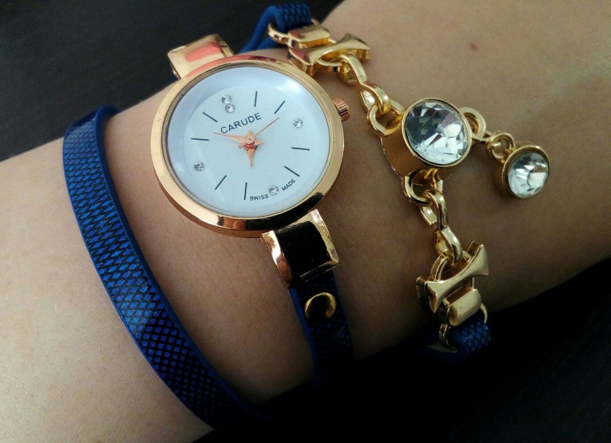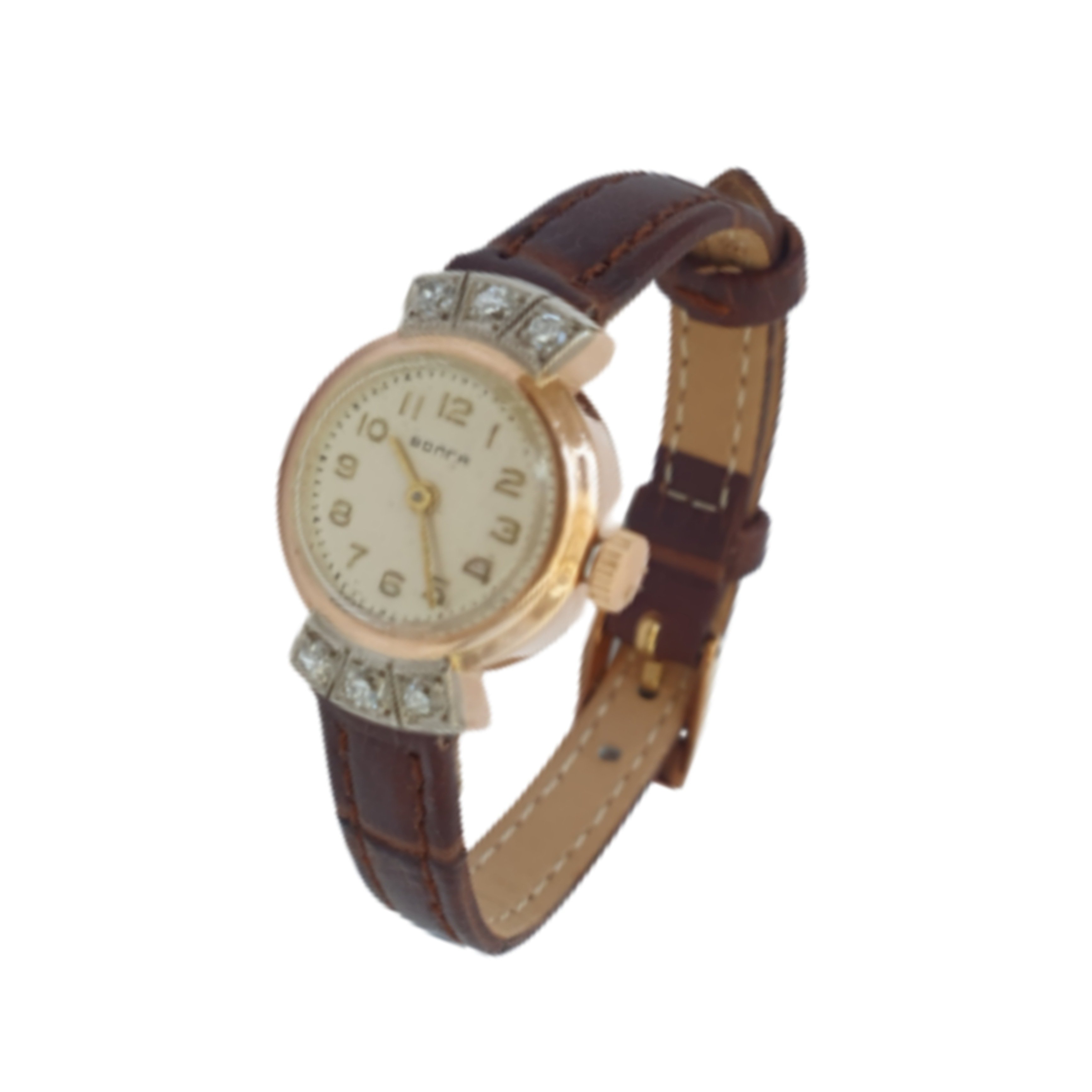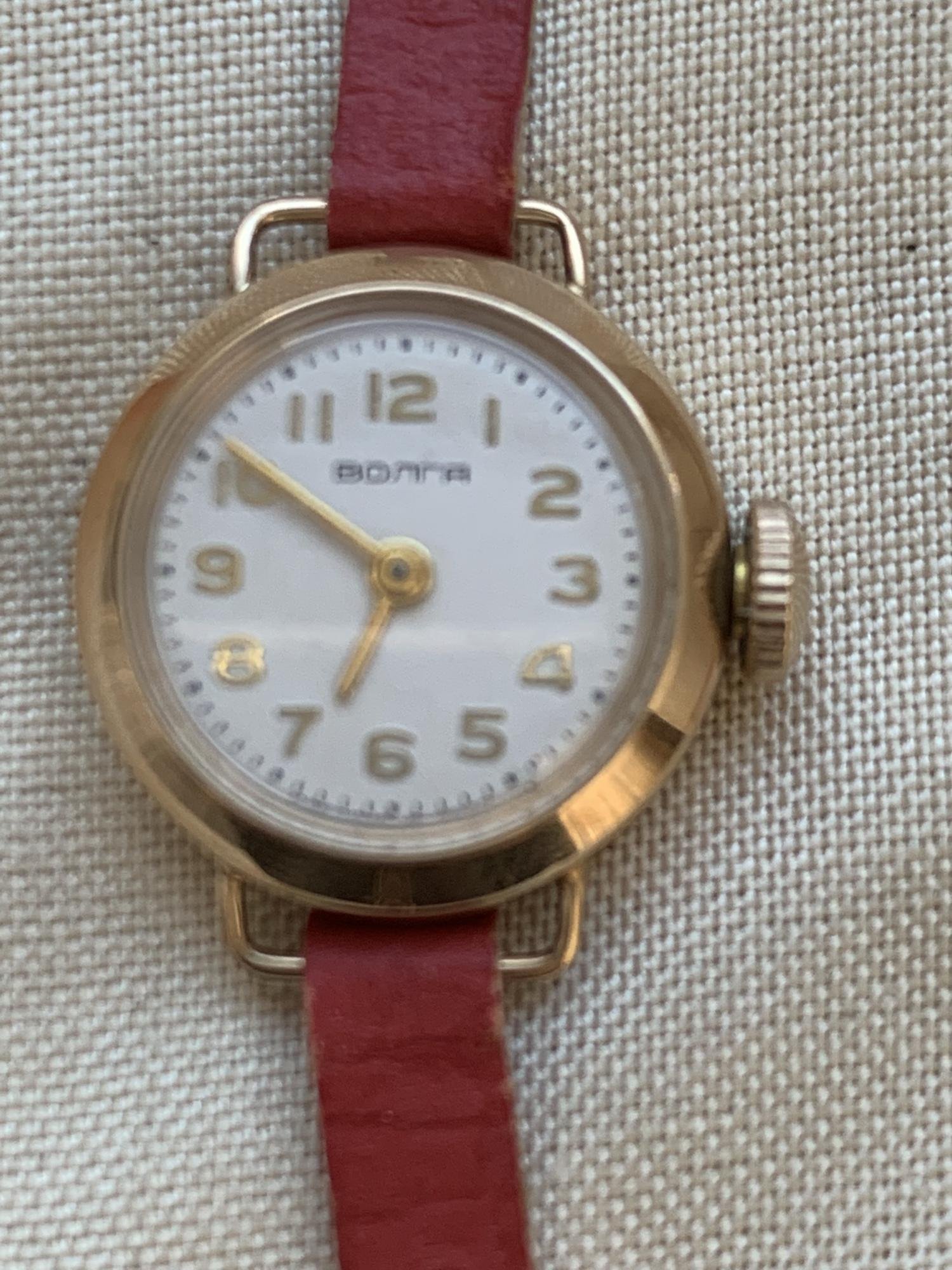 Женские часы наручные Чайка золотые с браслетом 583 пробы