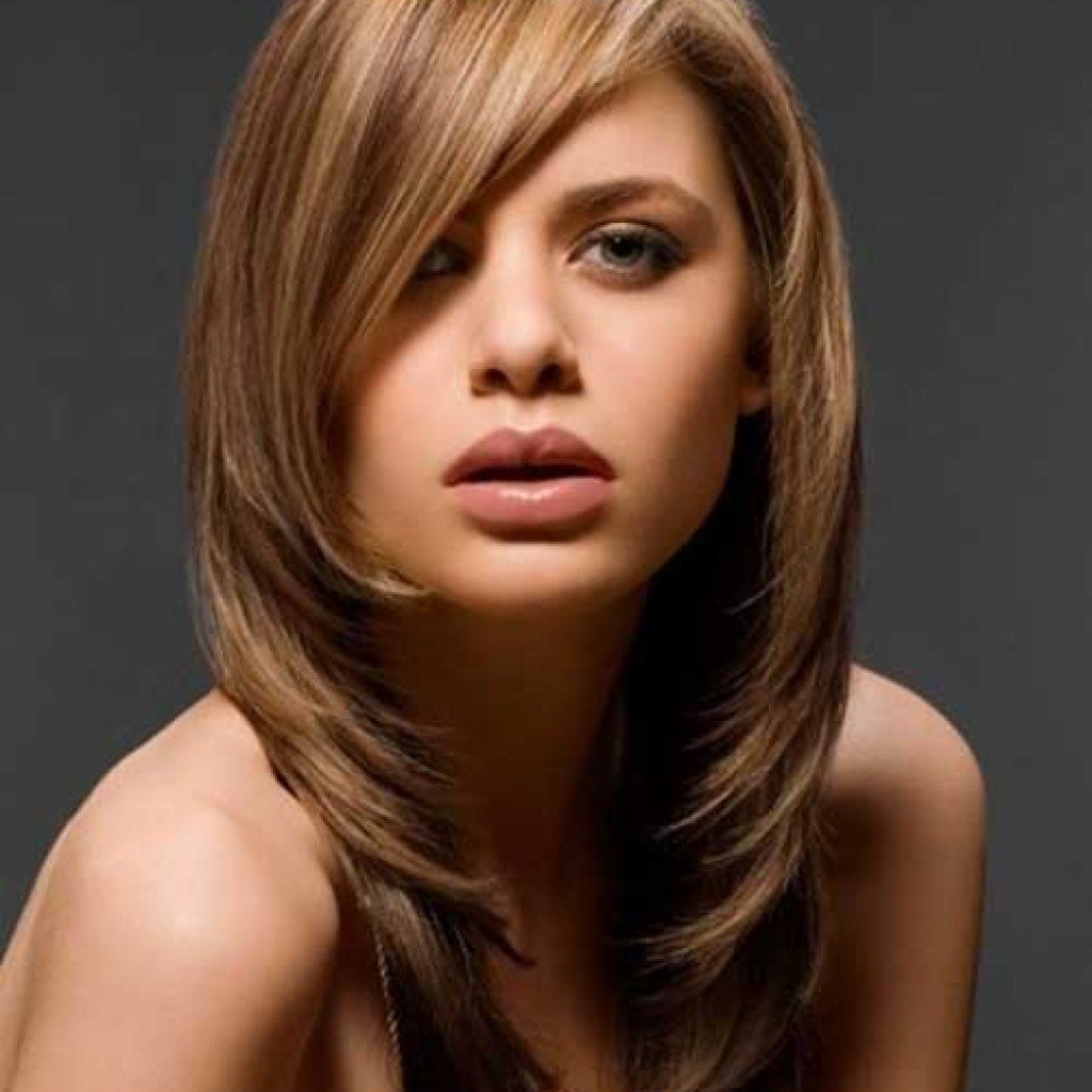 Стрижка легкий Каскад на средние волосы с челкой