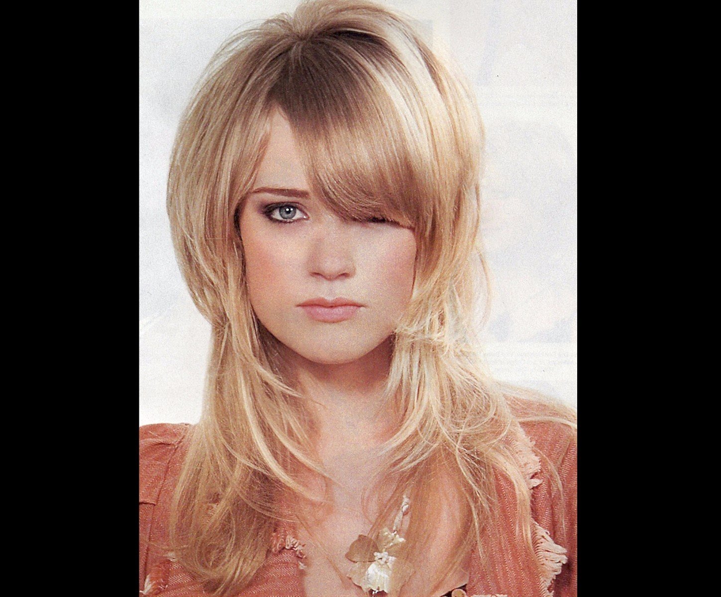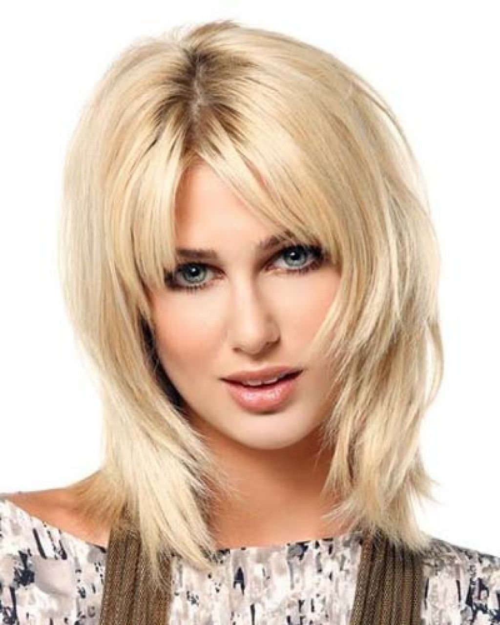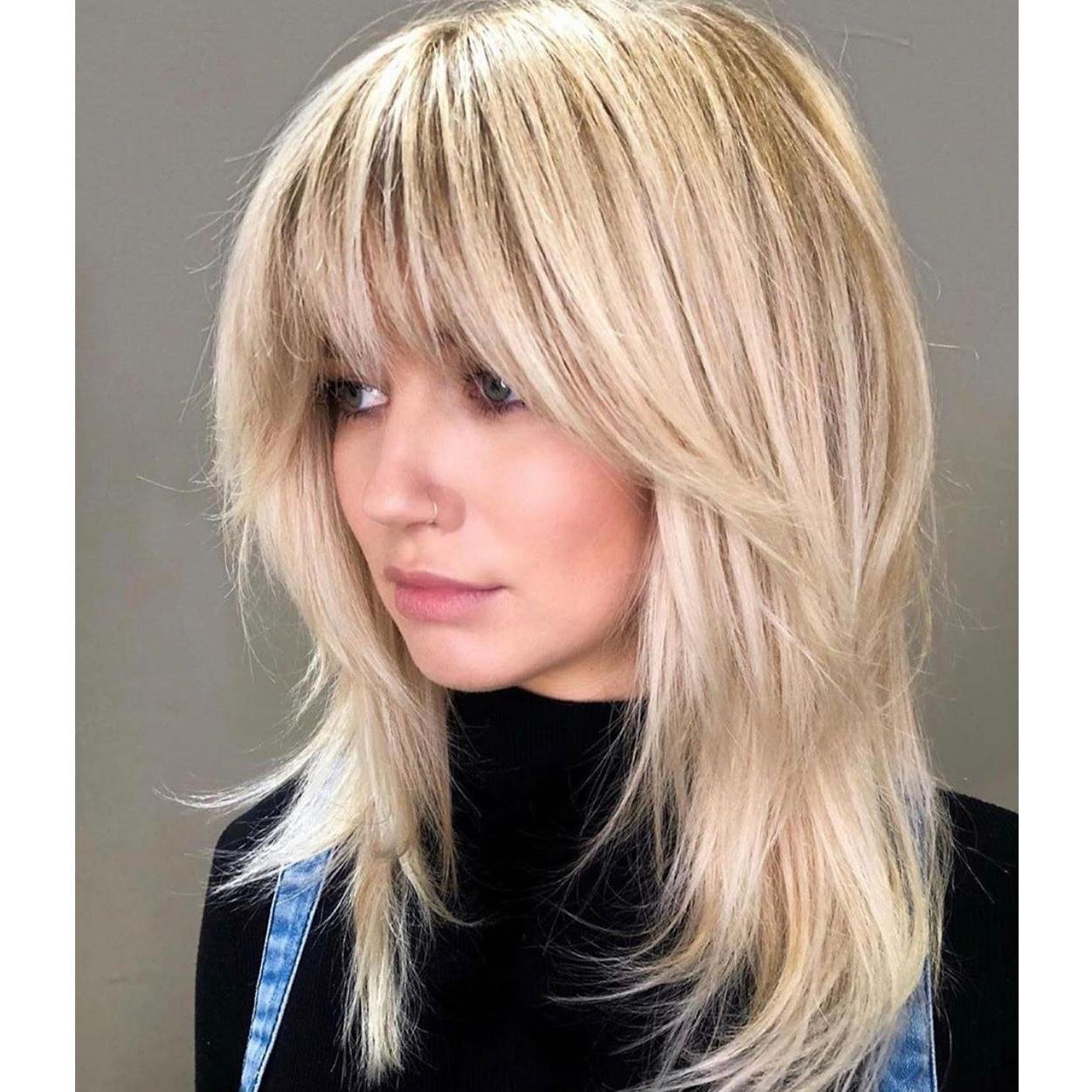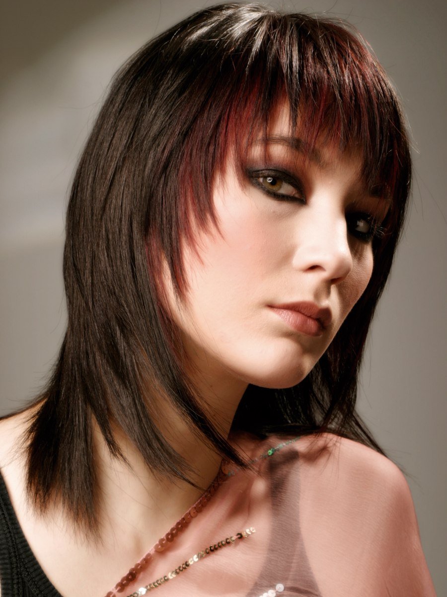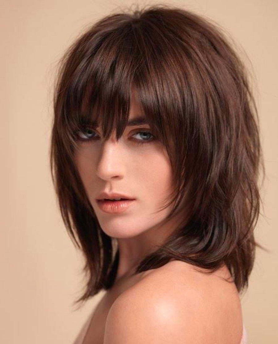 Каскад Шегги на средние волосы с челкой
