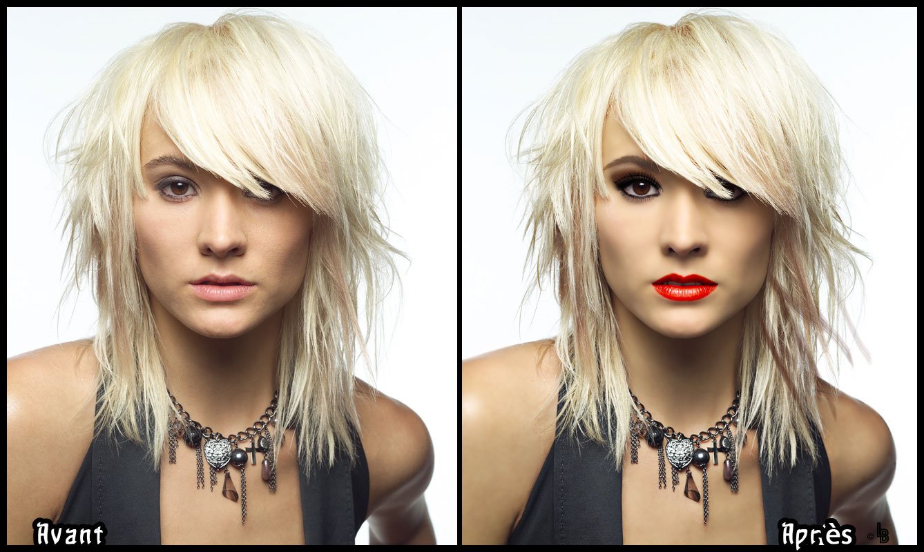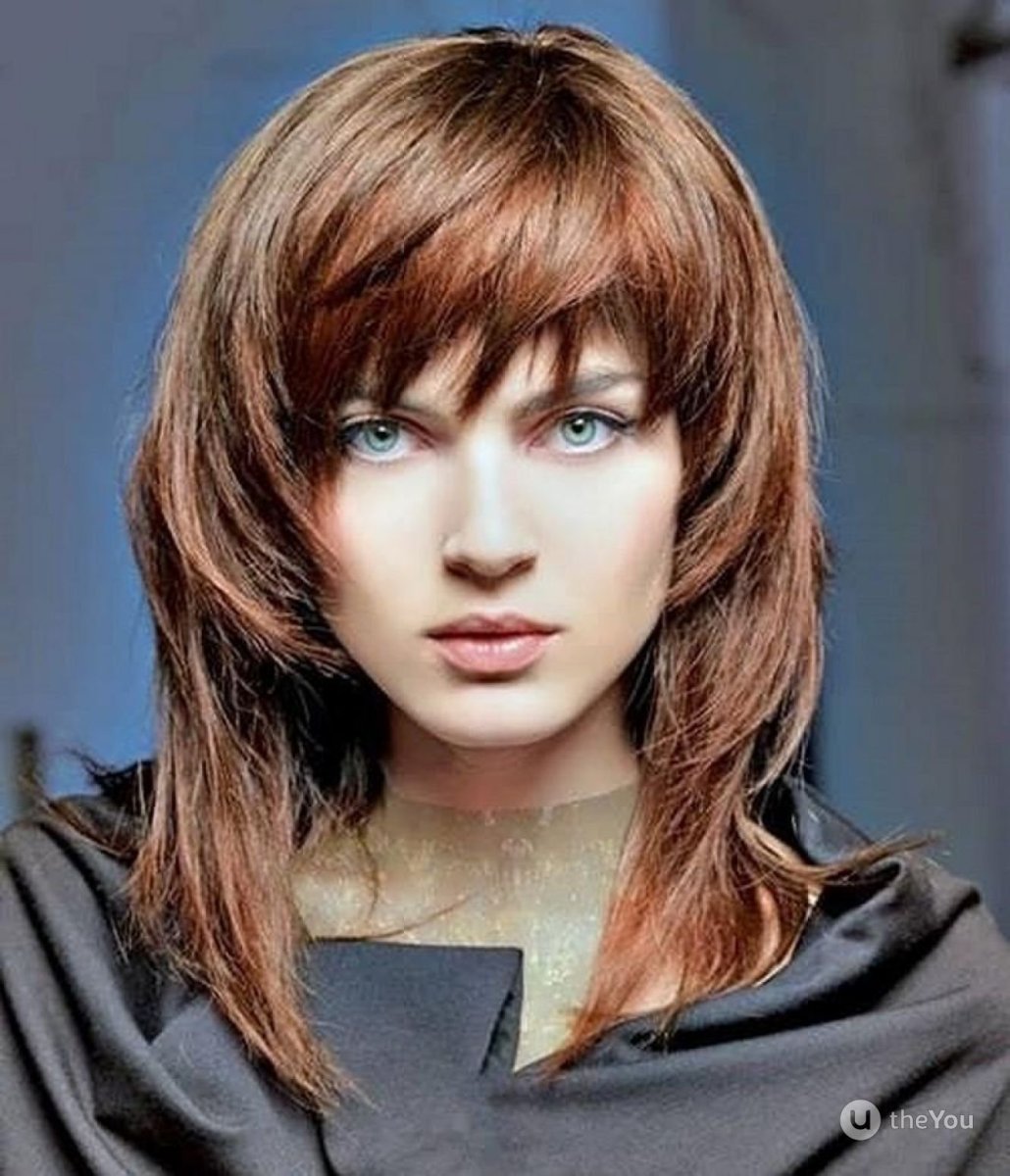 Стрижка рваная лесенка на средние волосы с челкой