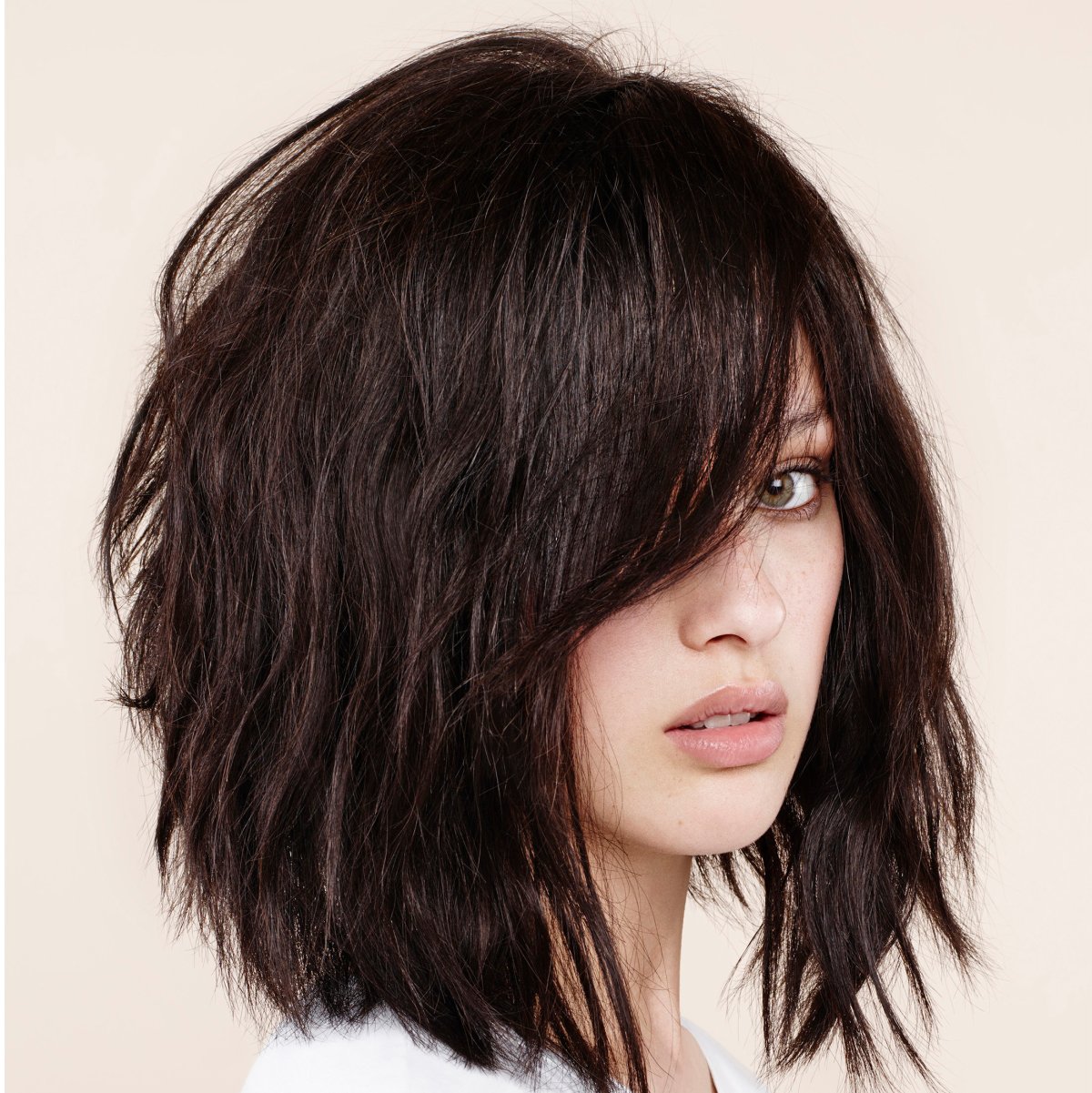 Асимметричный Каскад на средние волосы с челкой