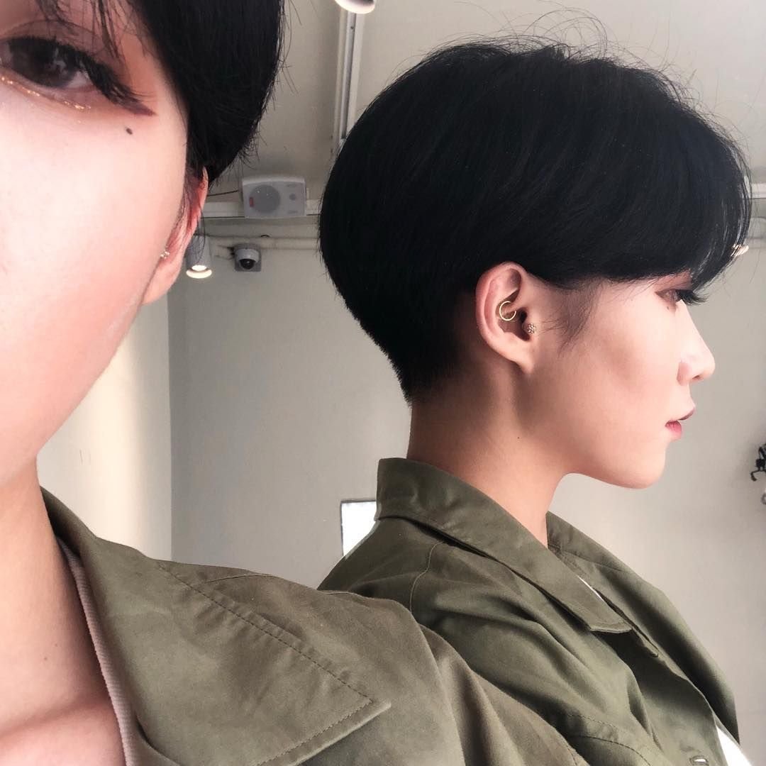 Короткие стрижки кореянок с выбритыми висками