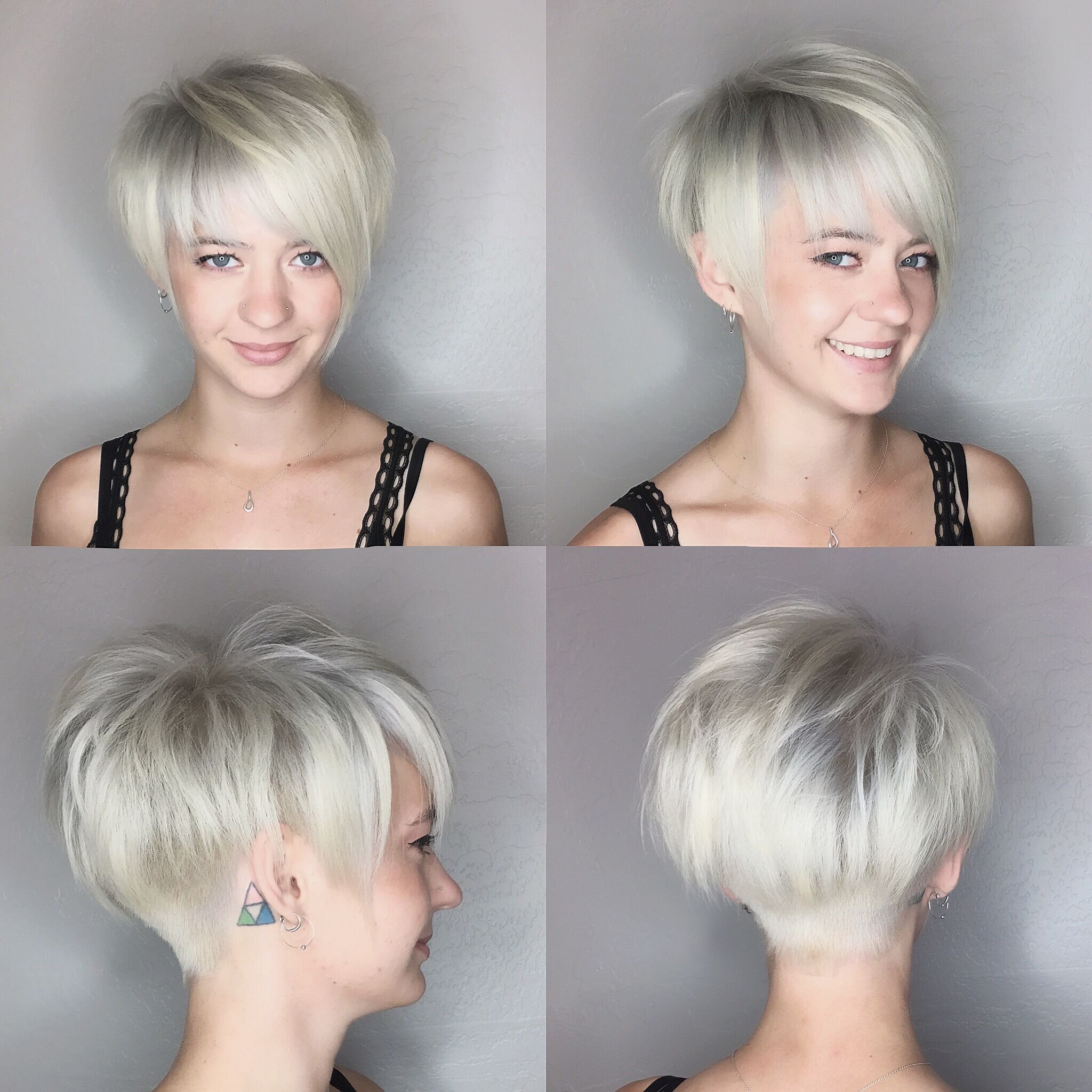 Стрижка Пикси вид сзади и спереди на короткие волосы с челкой