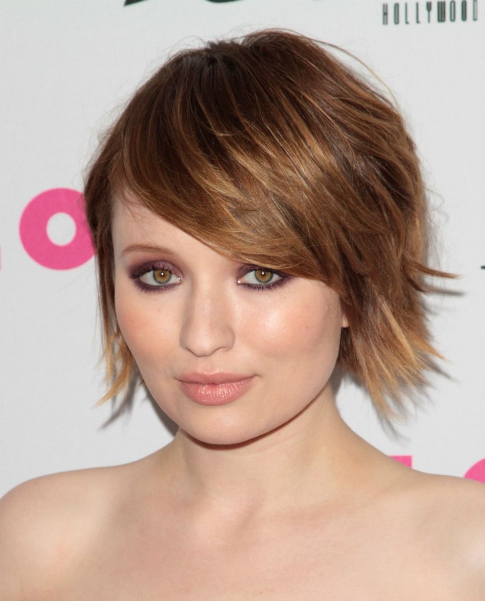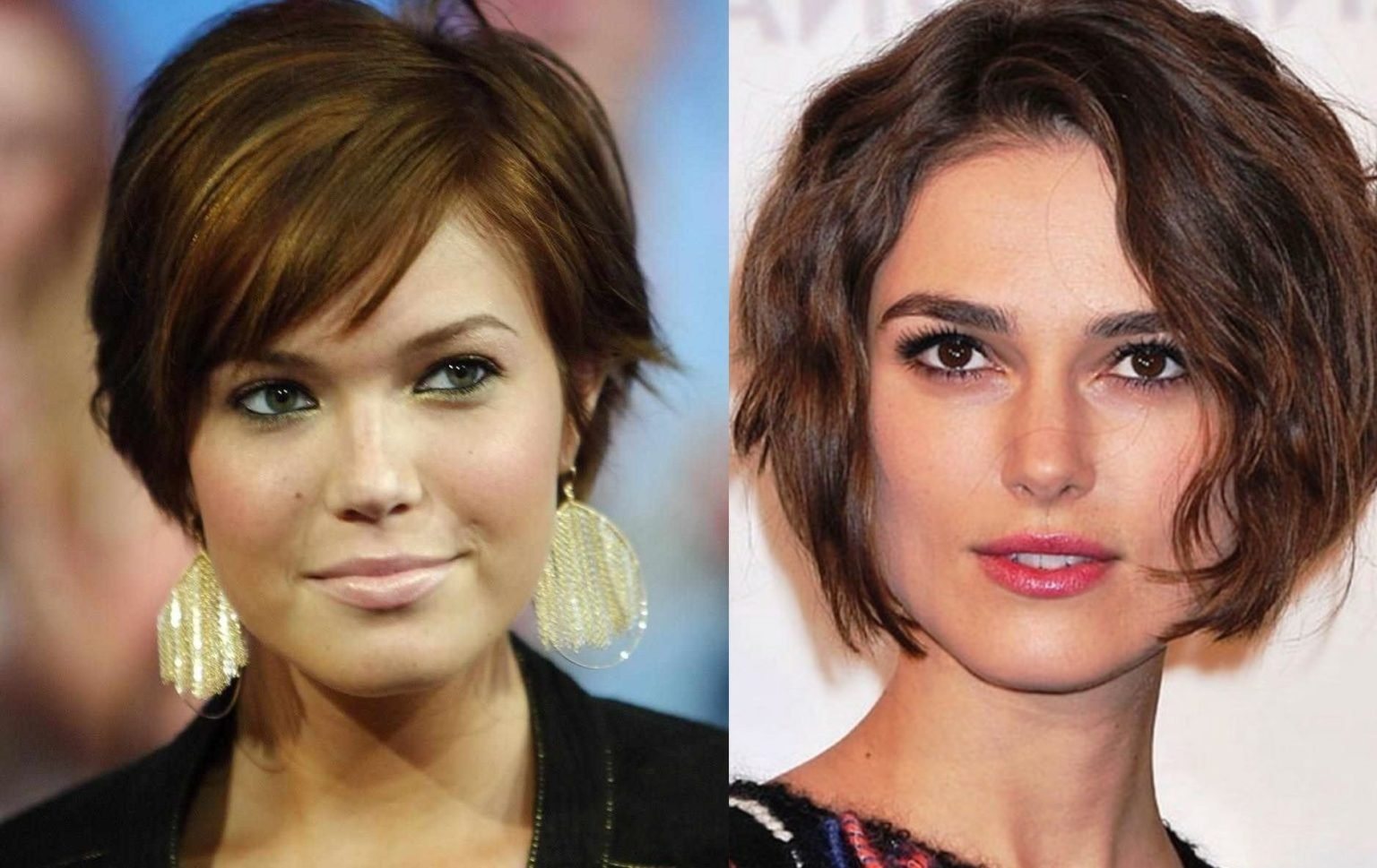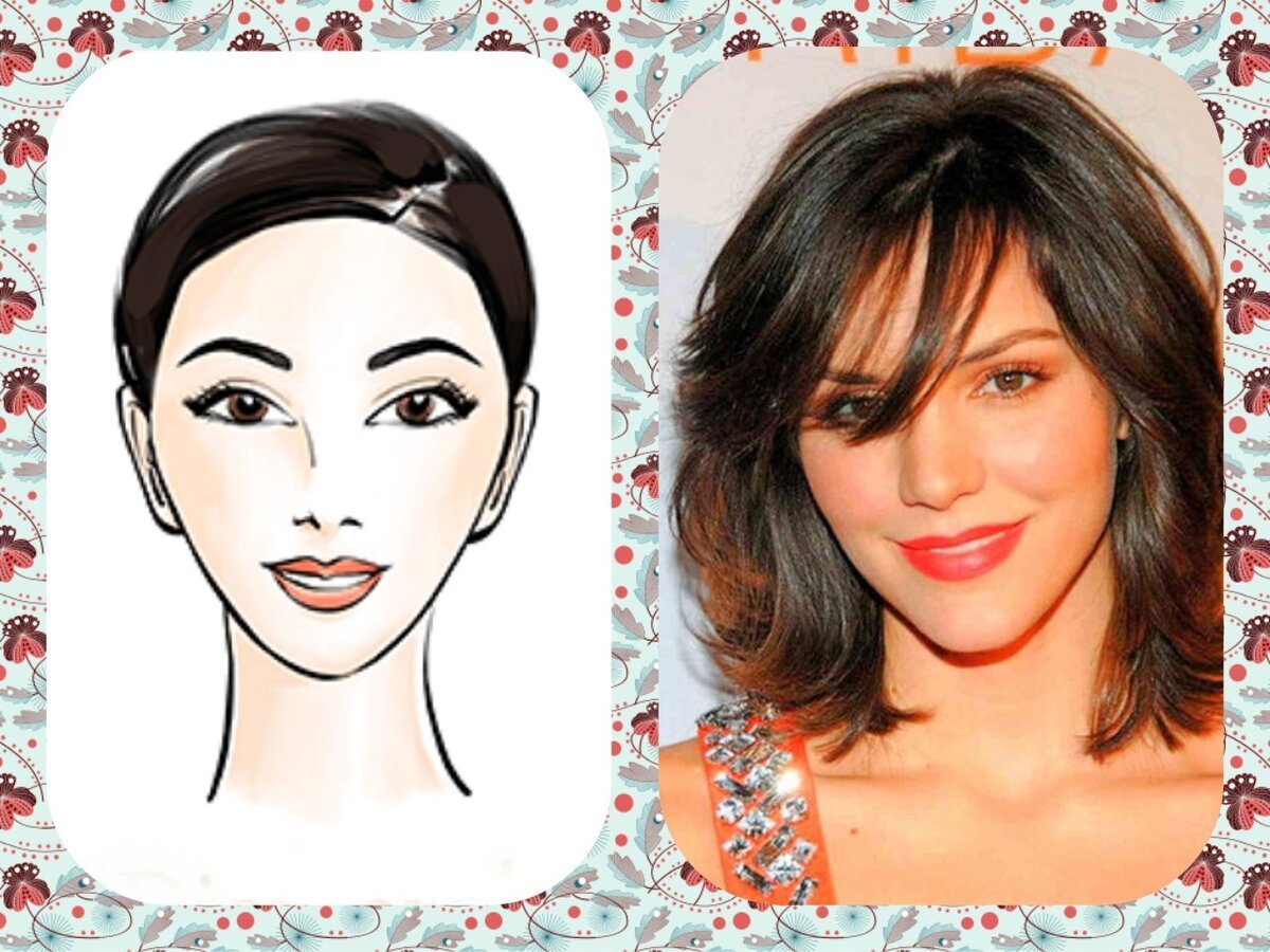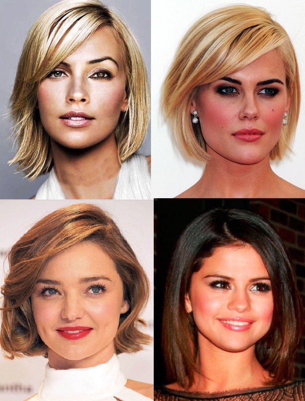 Стрижка типа каре на средние волосы с челкой для круглого лица
