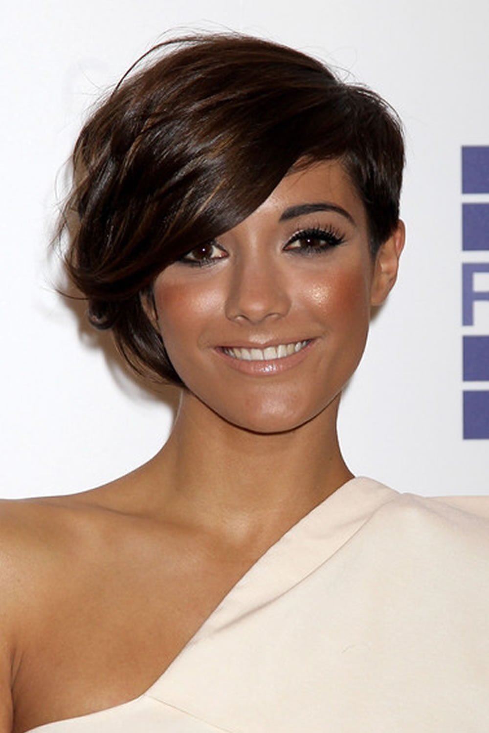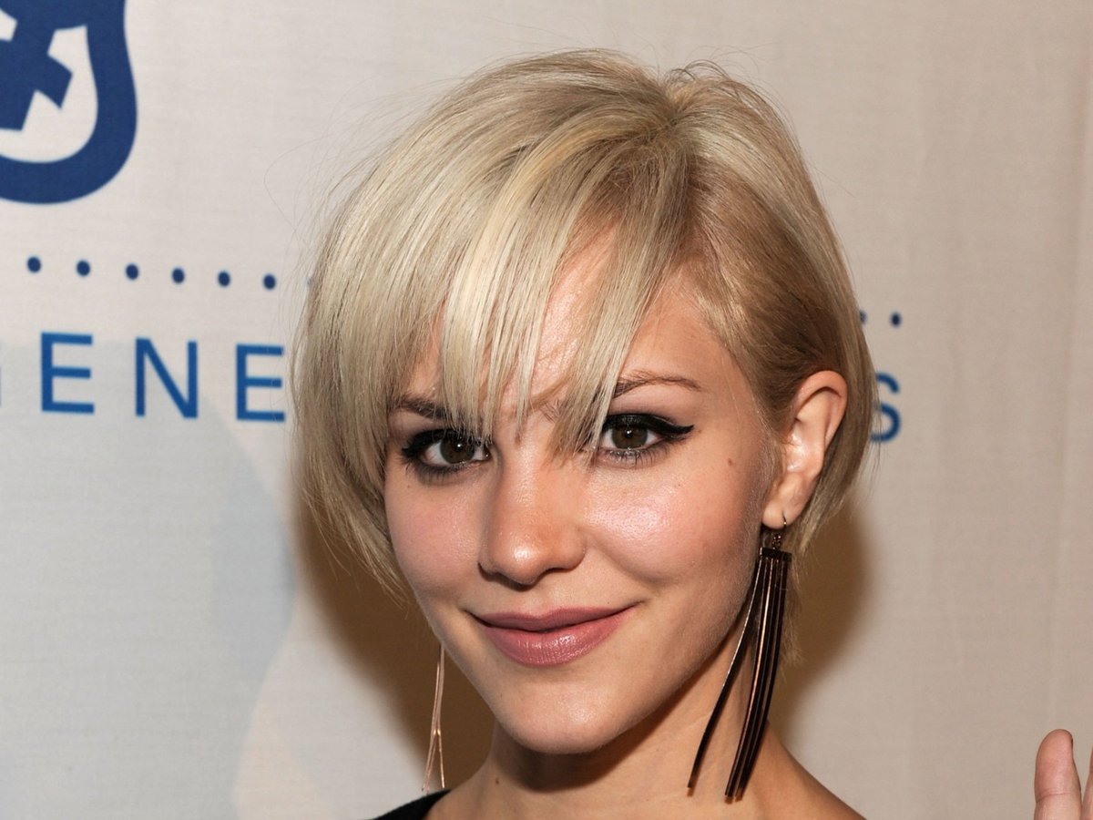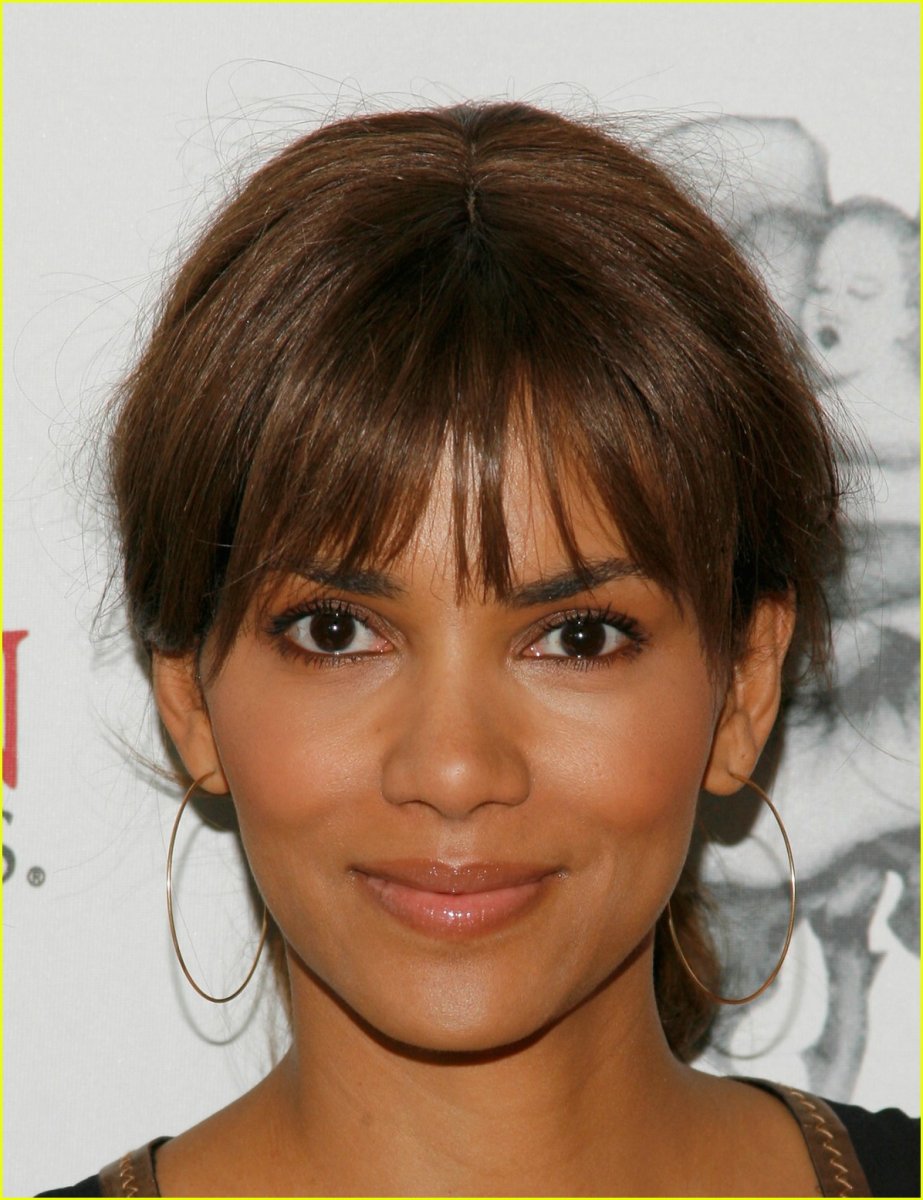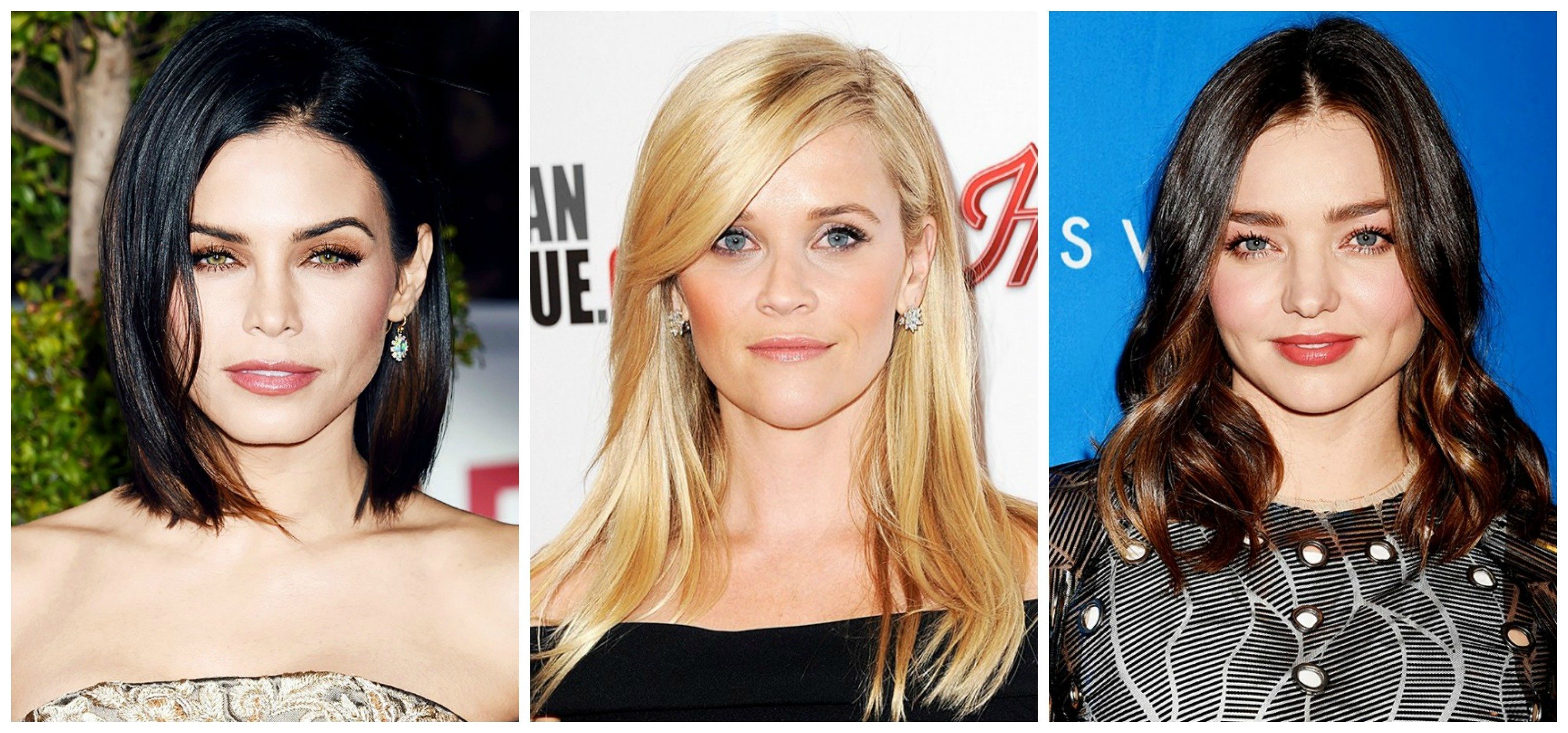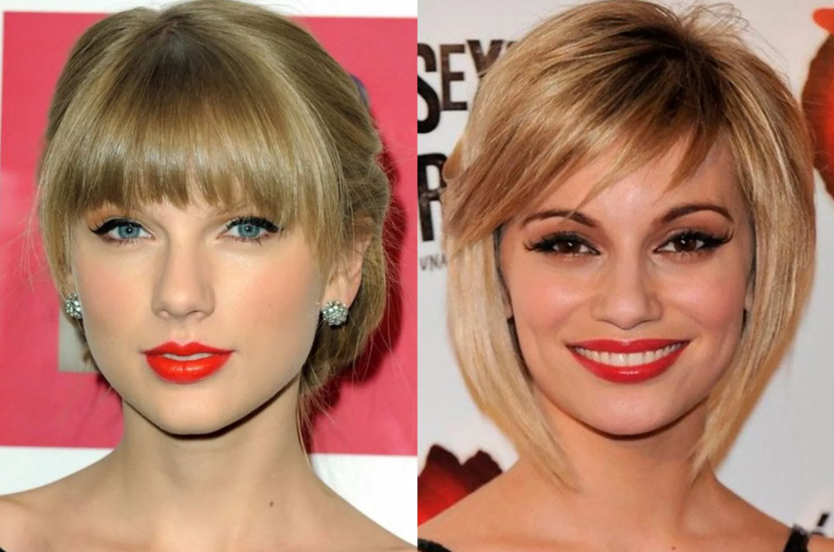 Стрижка типа каре на средние волосы с челкой для круглого лица