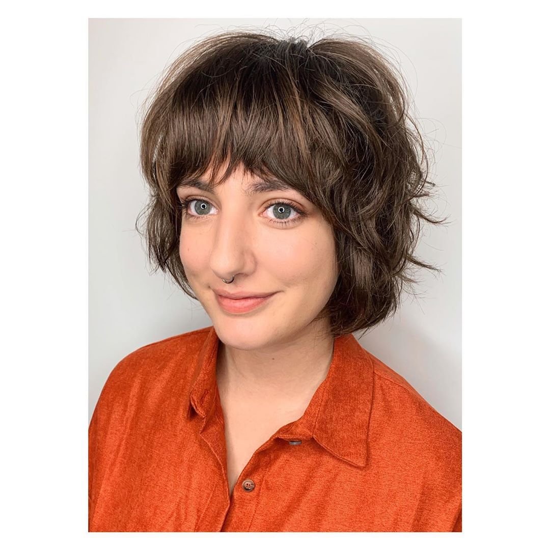 Градуированный Боб на средние волосы с челкой на волнистые волосы