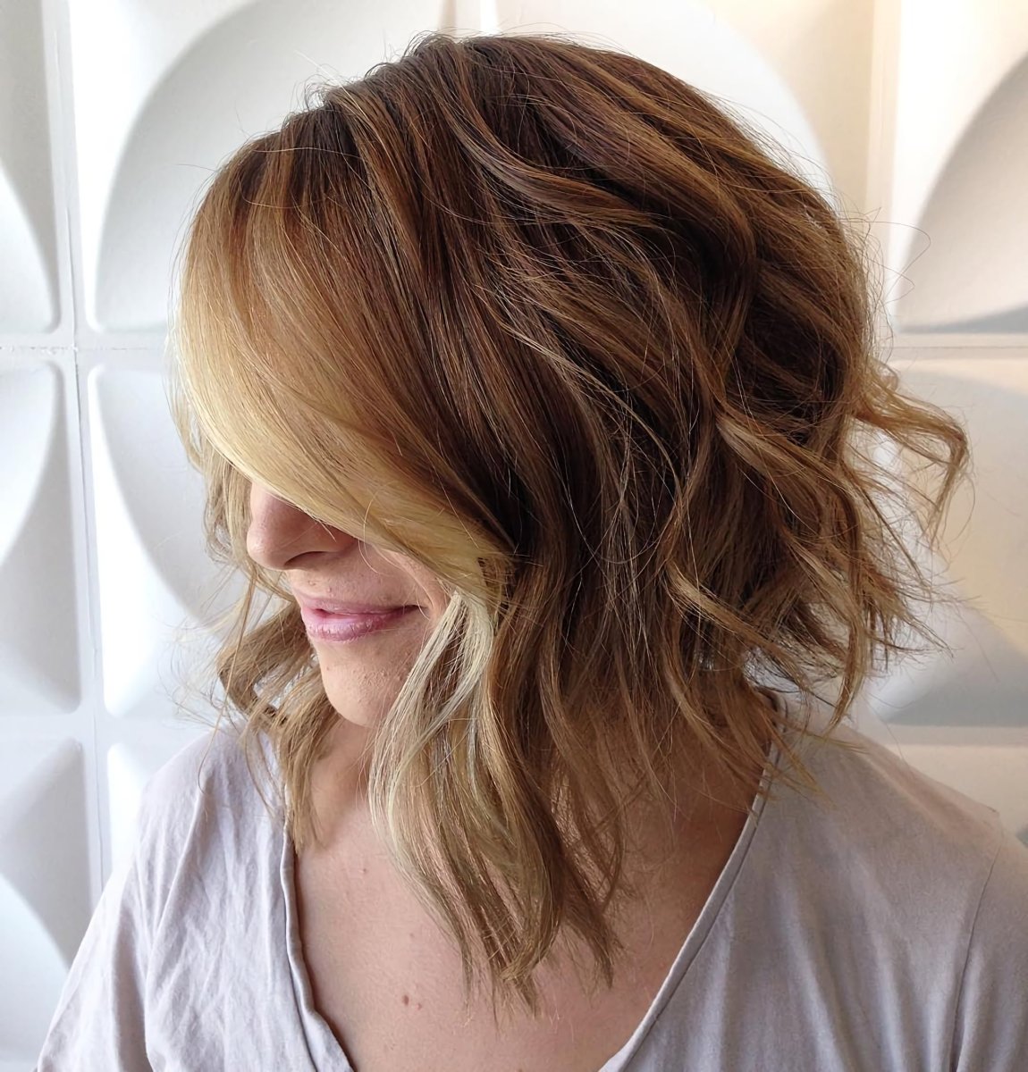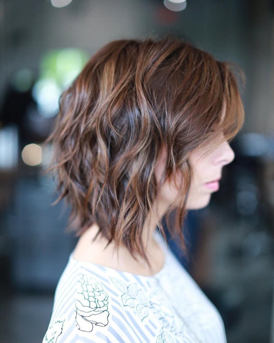 Шегги Боб на средние волнистые волосы