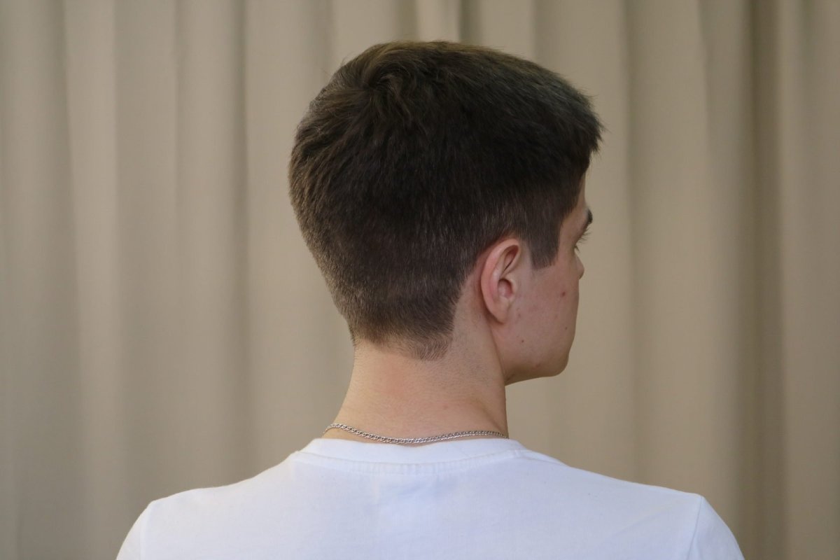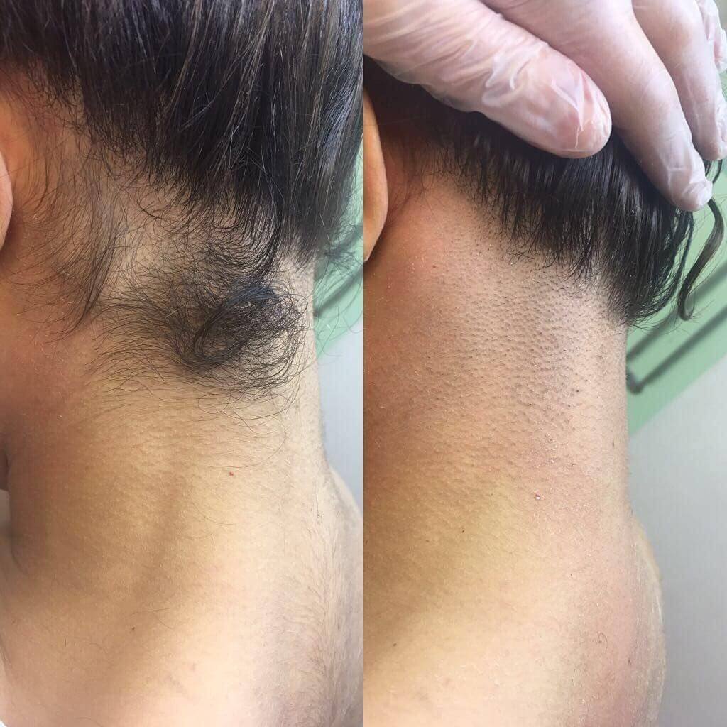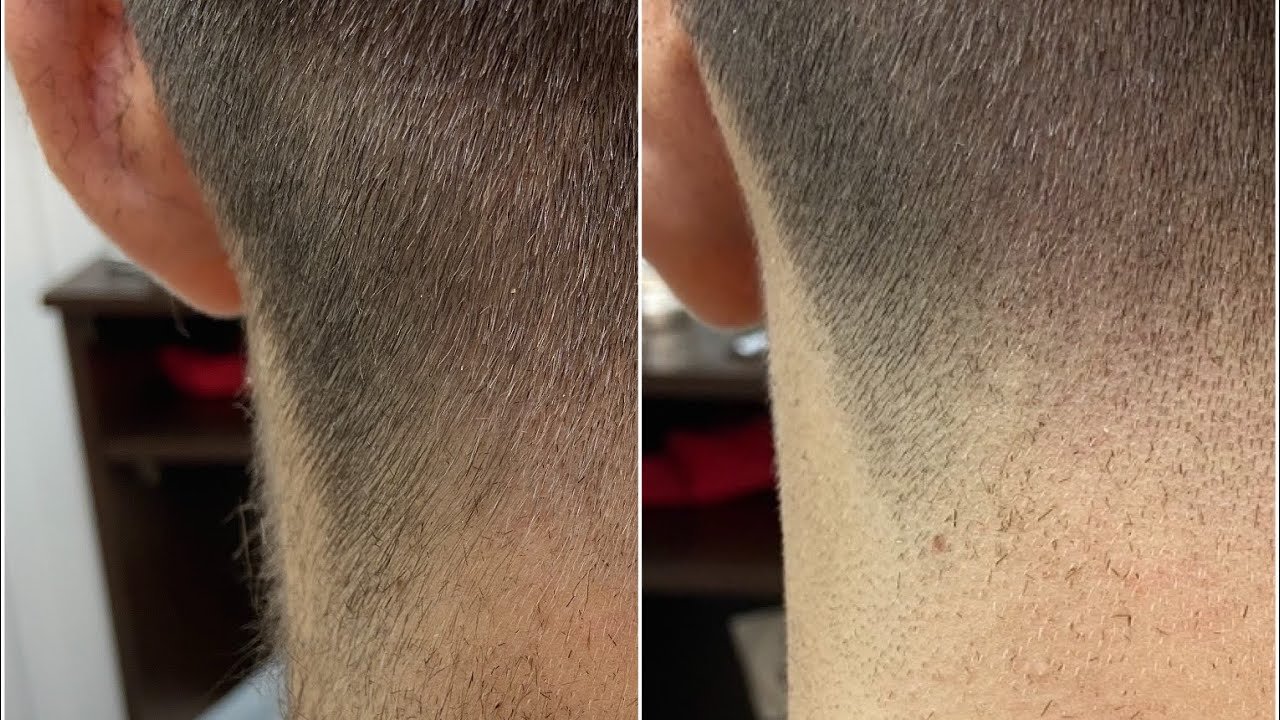 Выбритая шея с длинными волосами