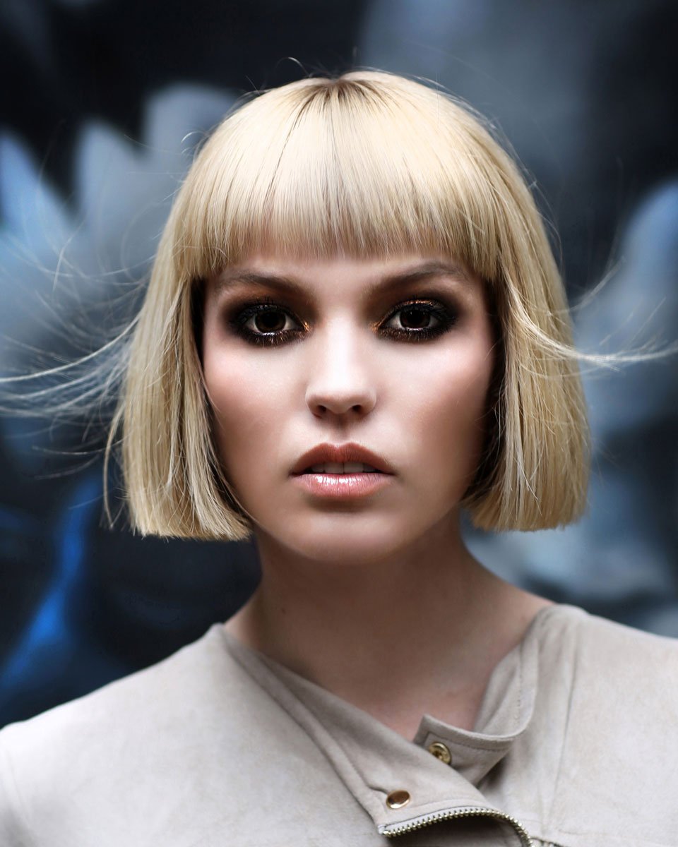 Прямая челка для квадратного лица