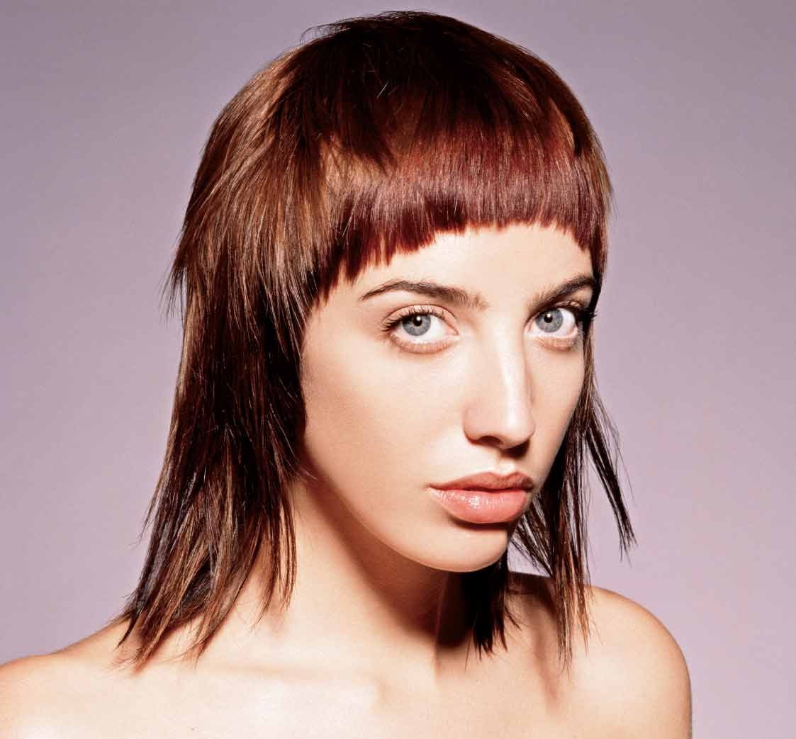 Стрижка Каскад на средние волосы с челкой полукругом