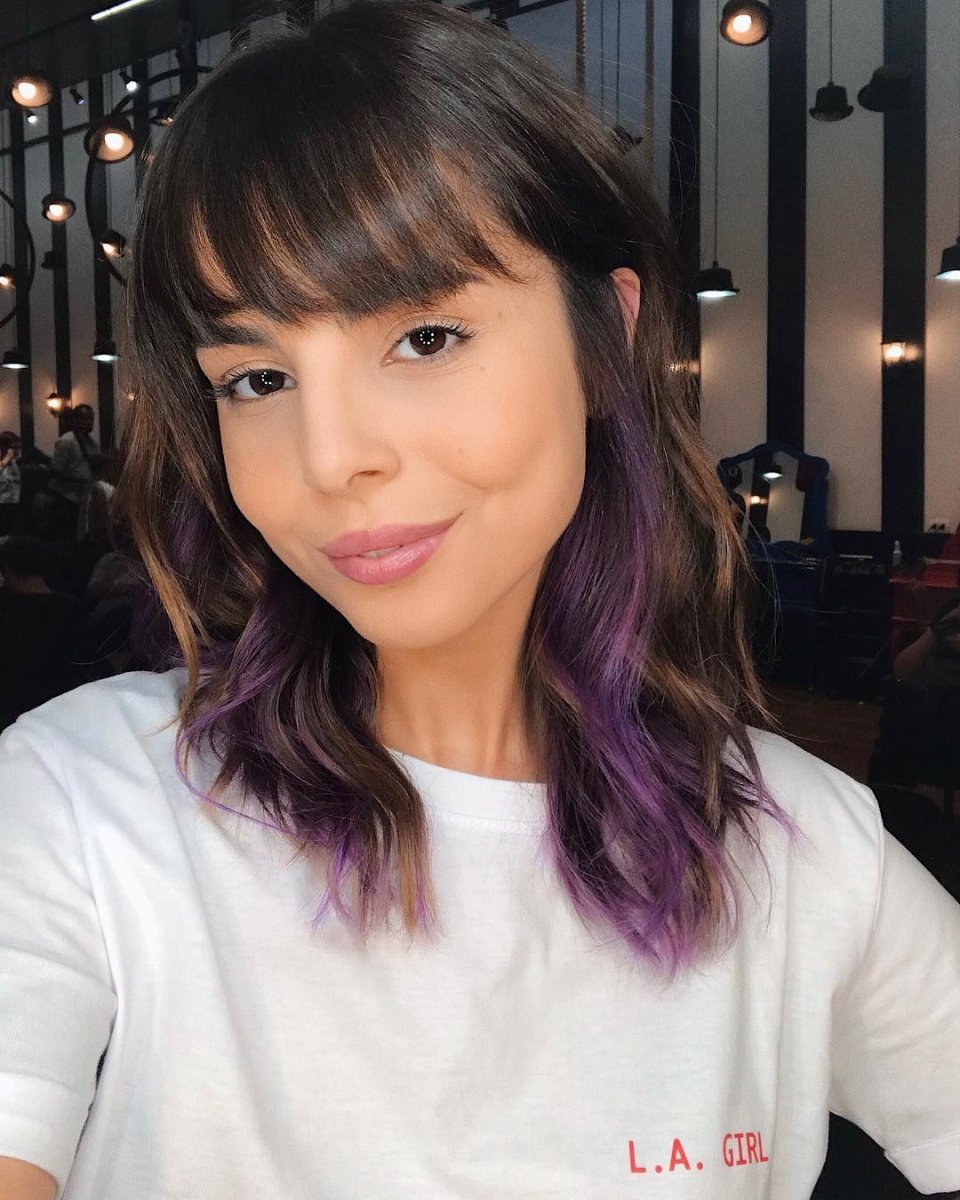 Модное окрашивание на средние волосы для брюнеток с карими глазами