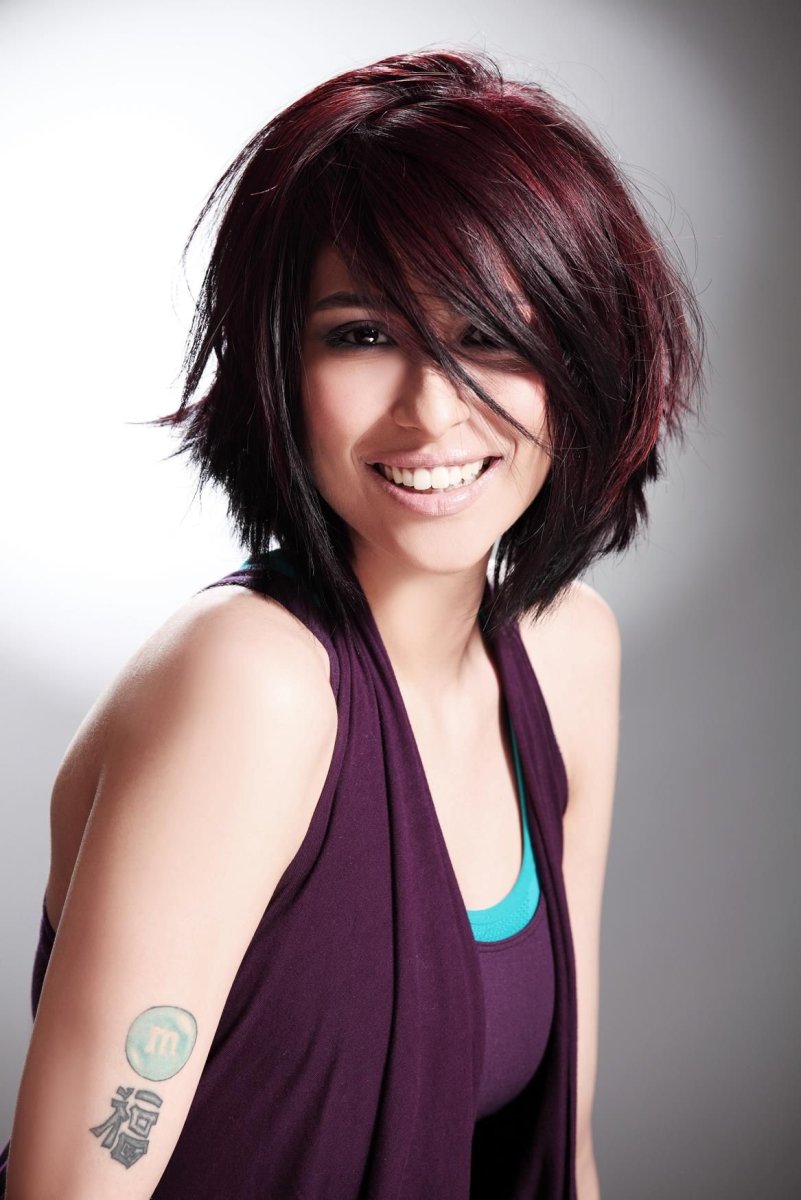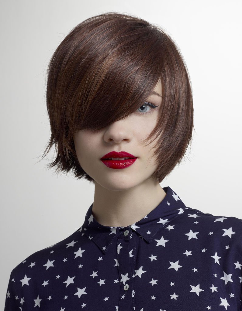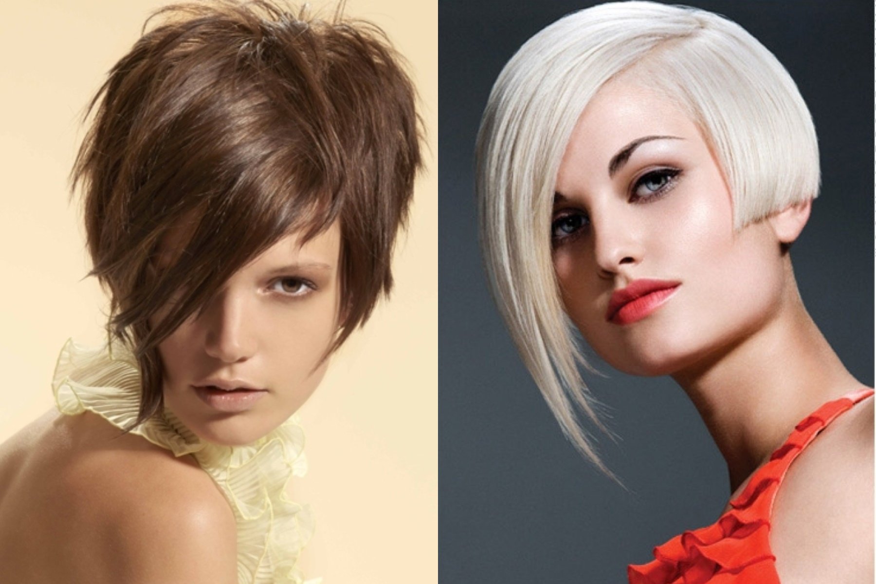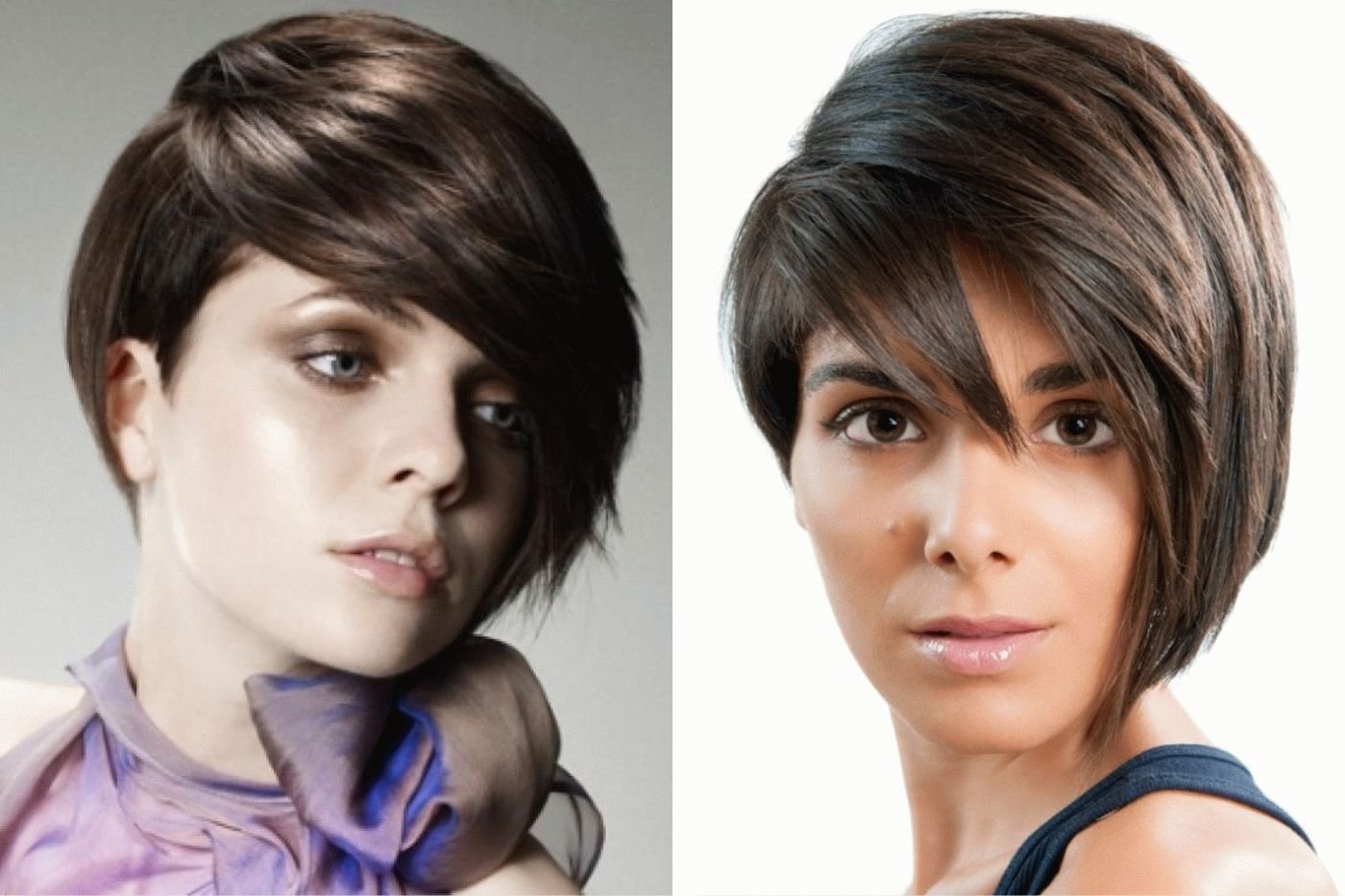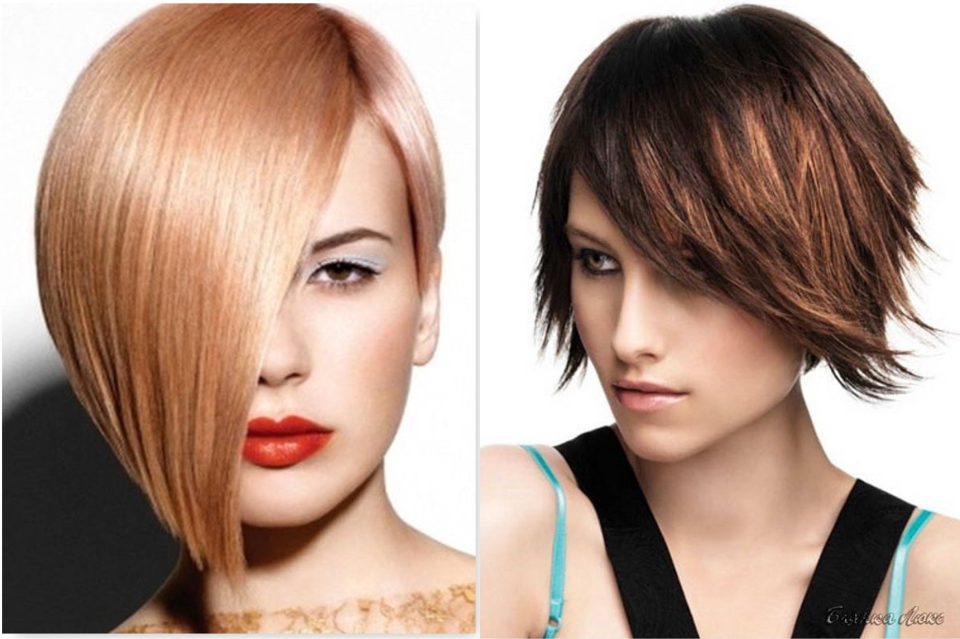 Стрижка Каскад асимметрия на короткие волосы с челкой