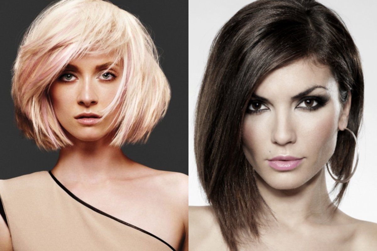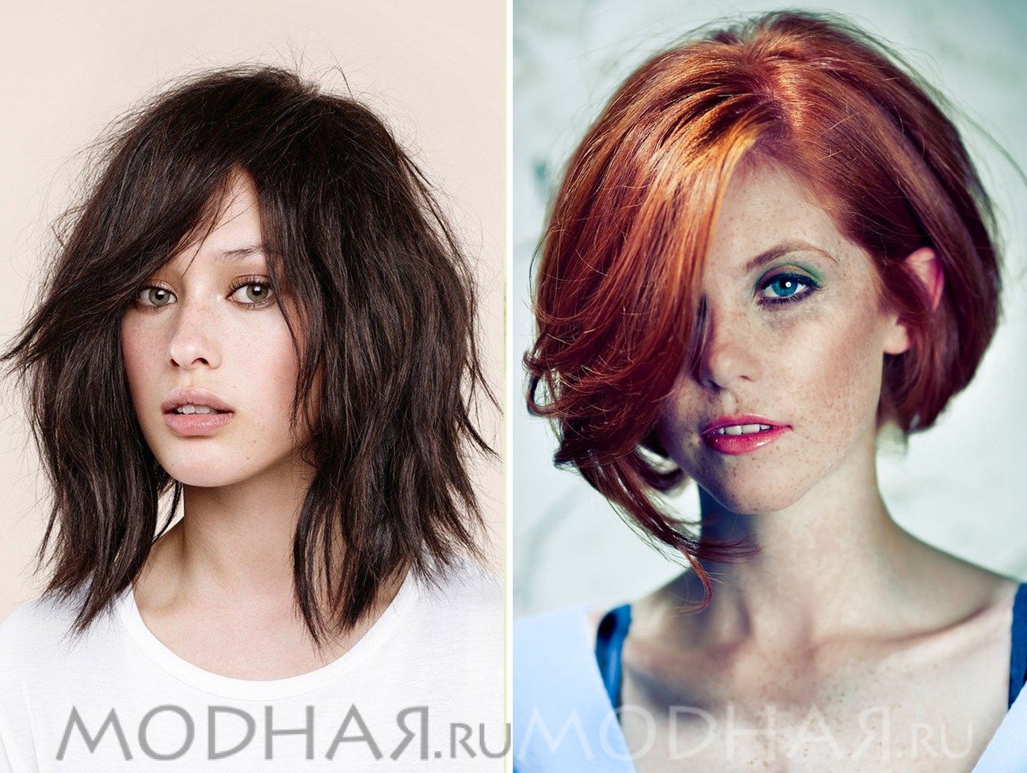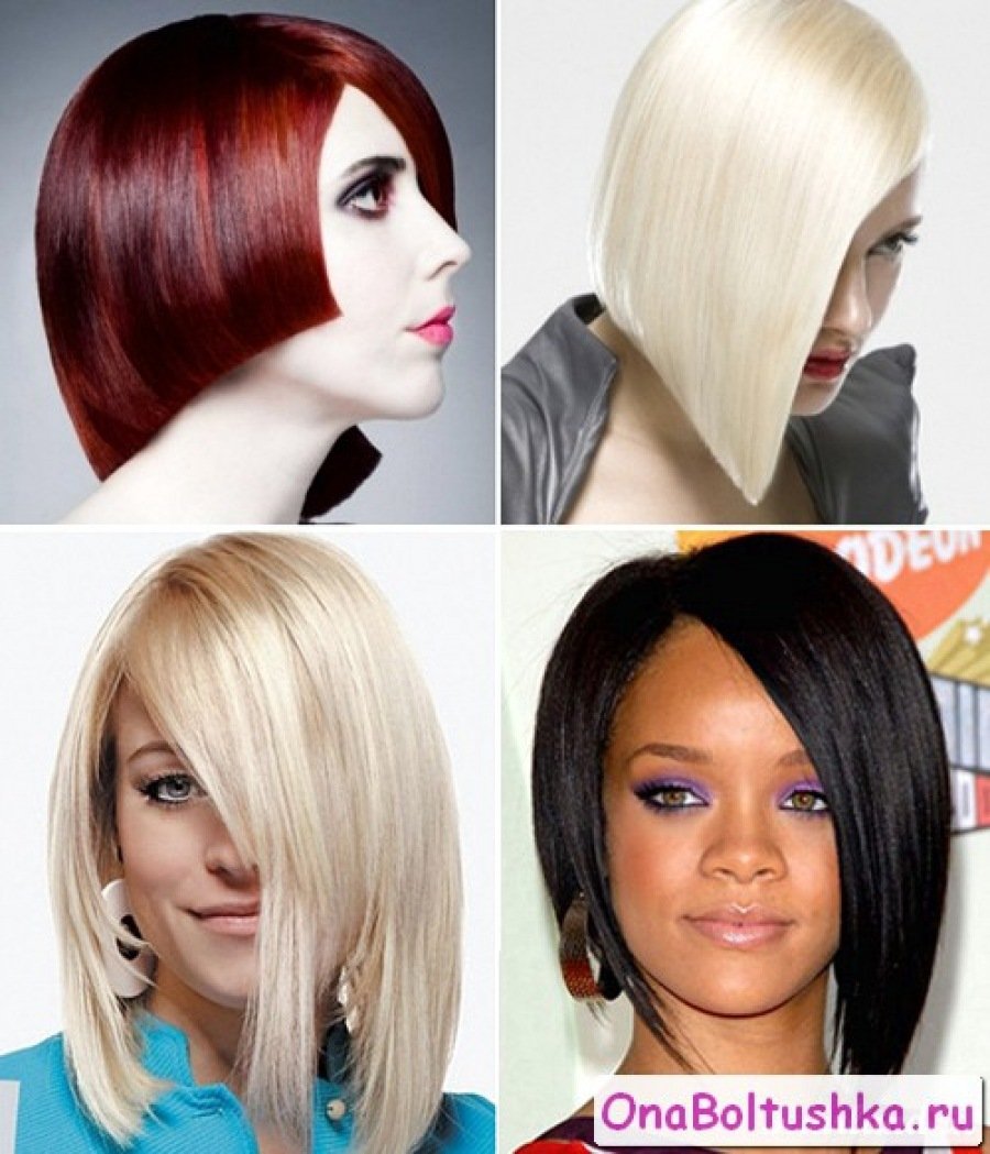 Стрижка на средние волосы ассиметричная для вытянутого лица