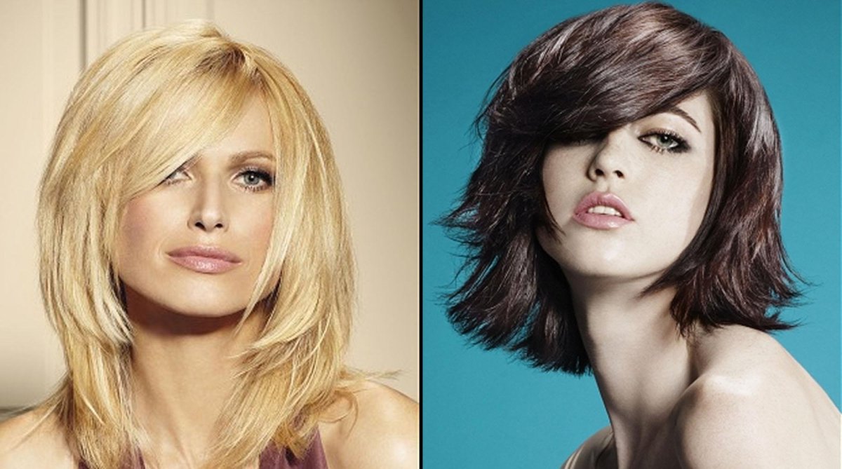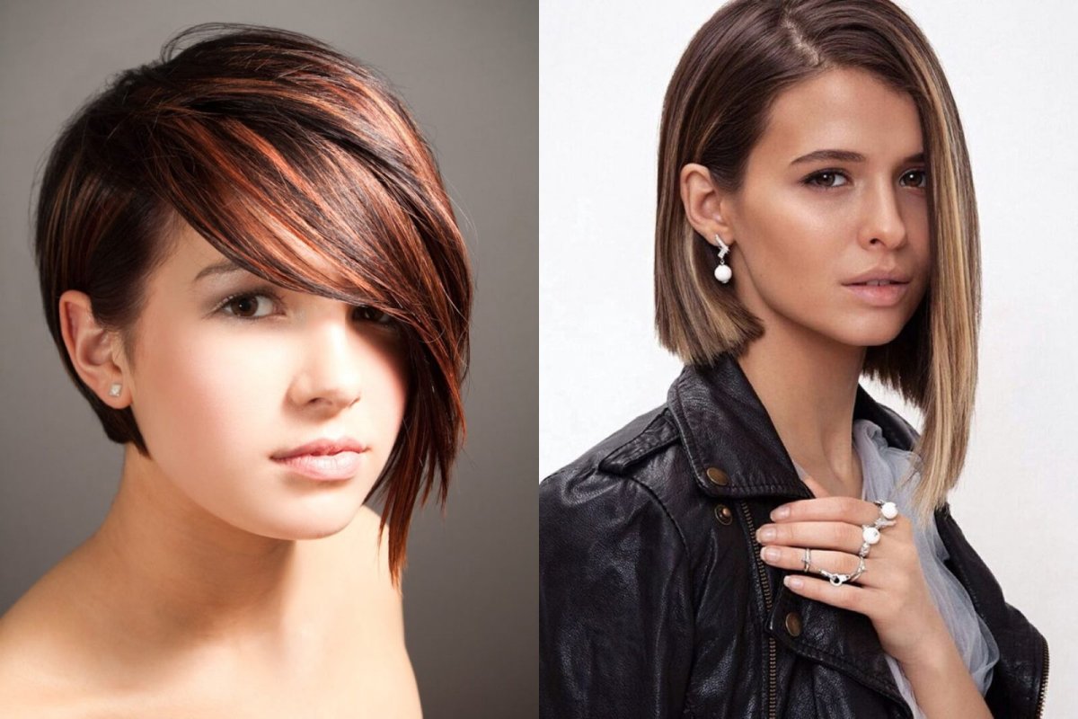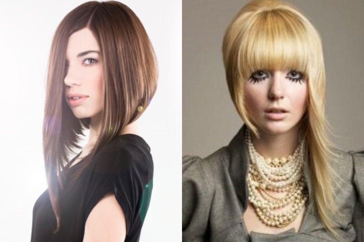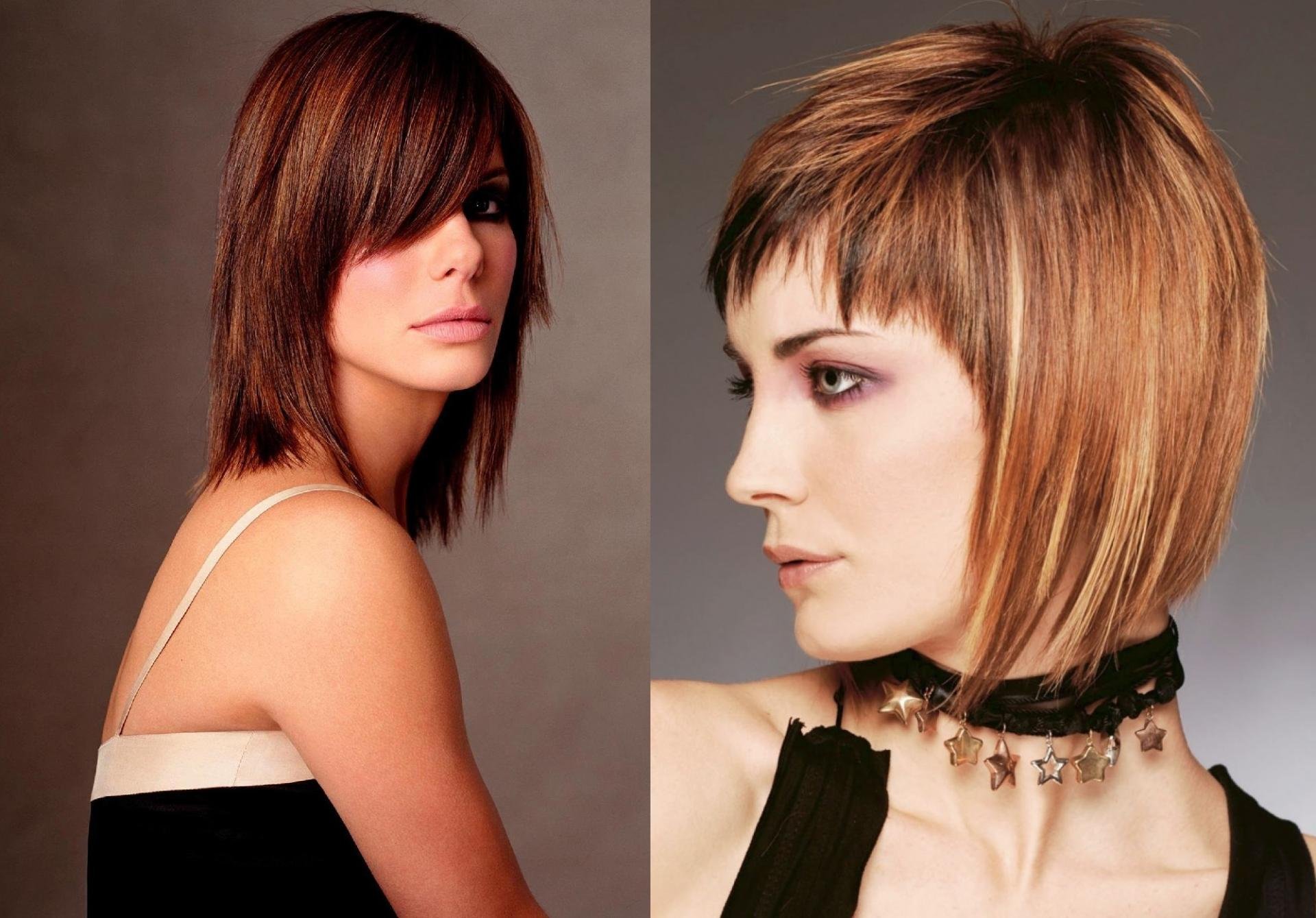Стрижка на средние волосы ассиметричная для вытянутого лица