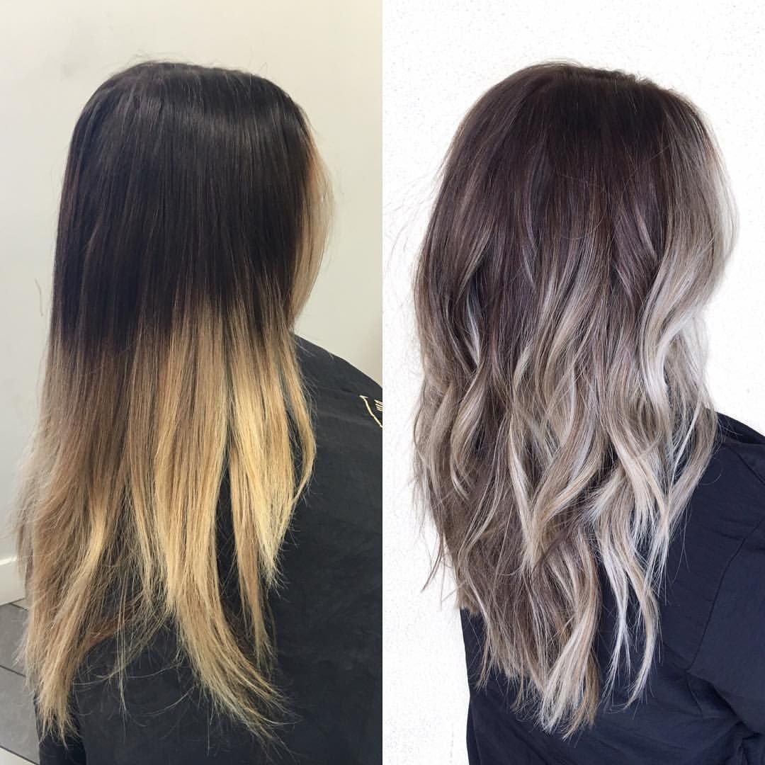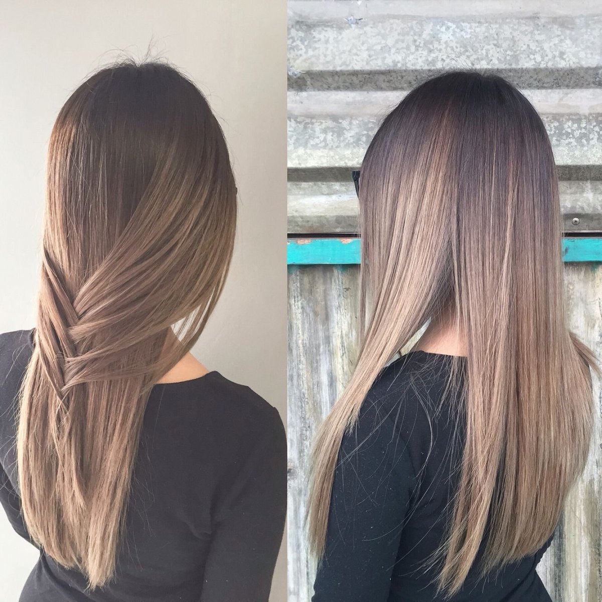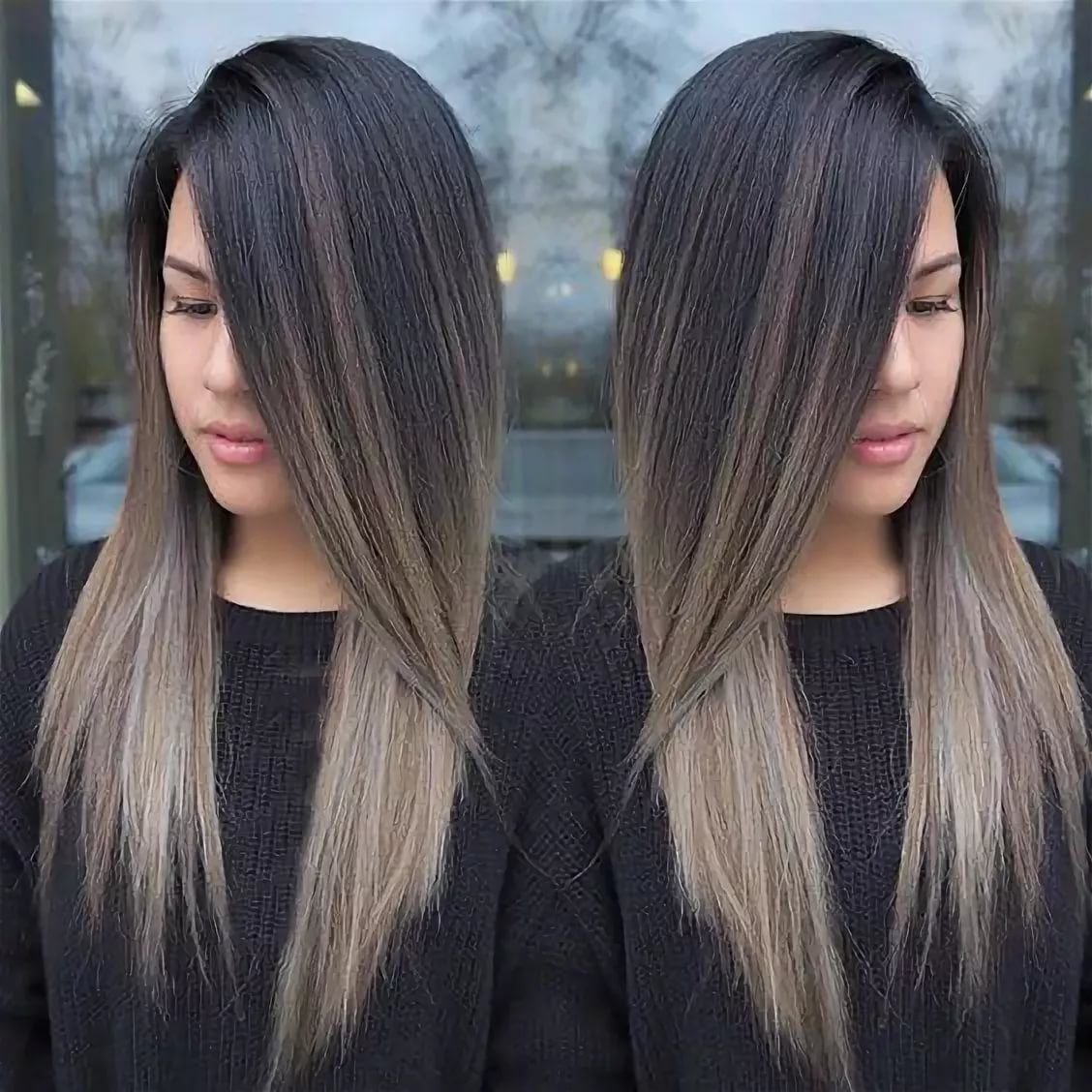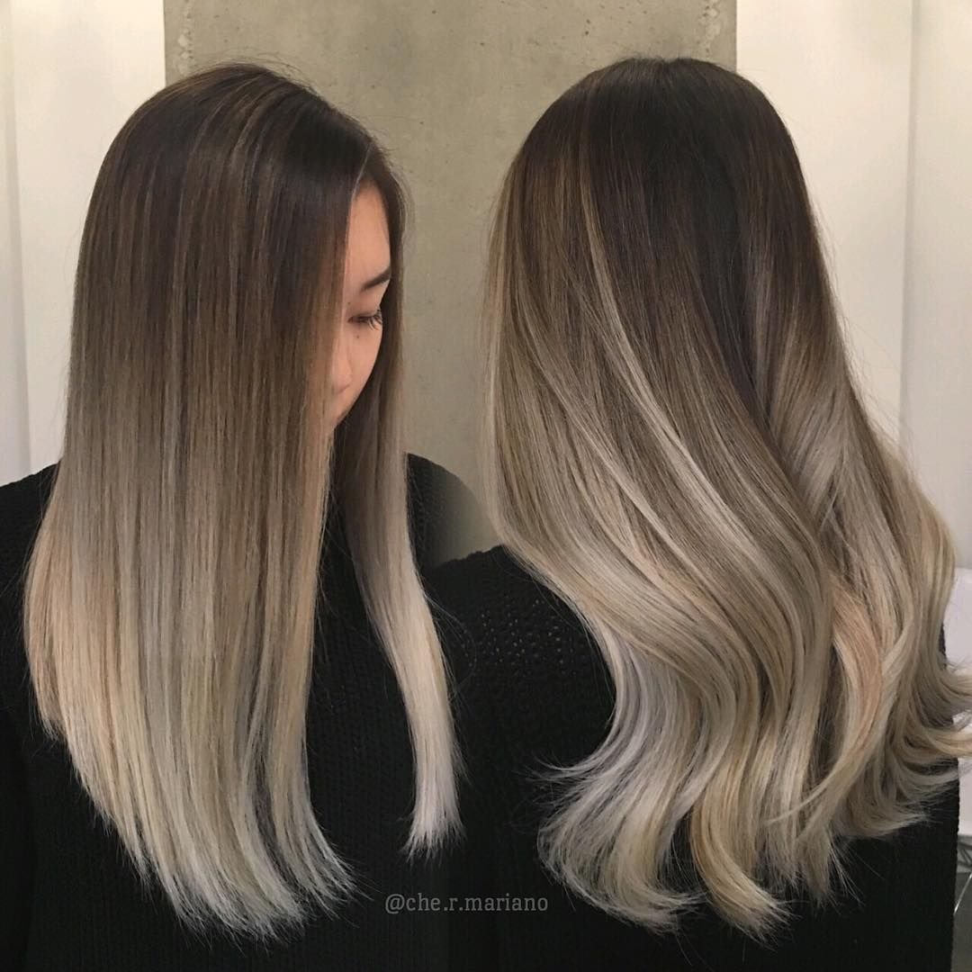Холодный балаяж на темные прямые волосы