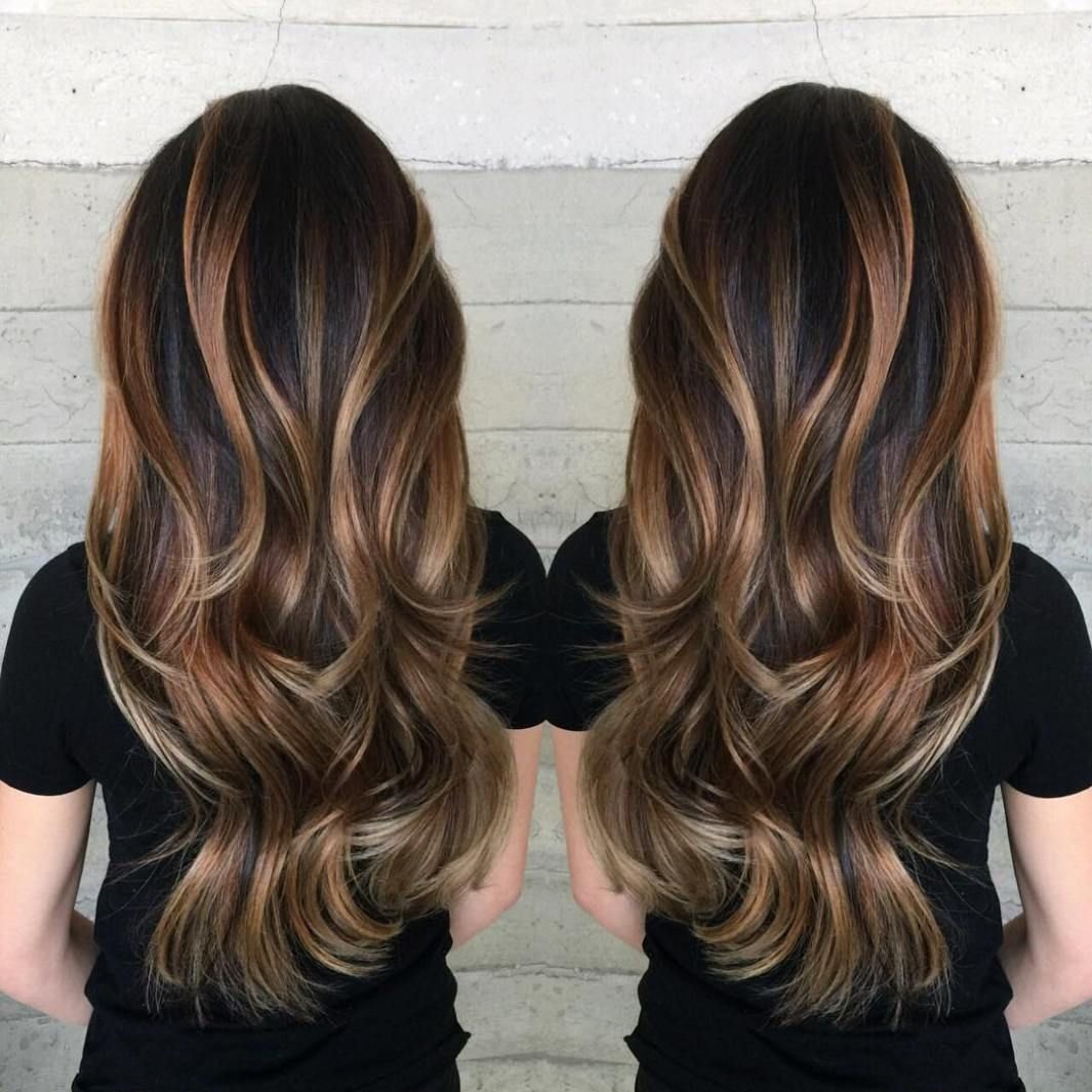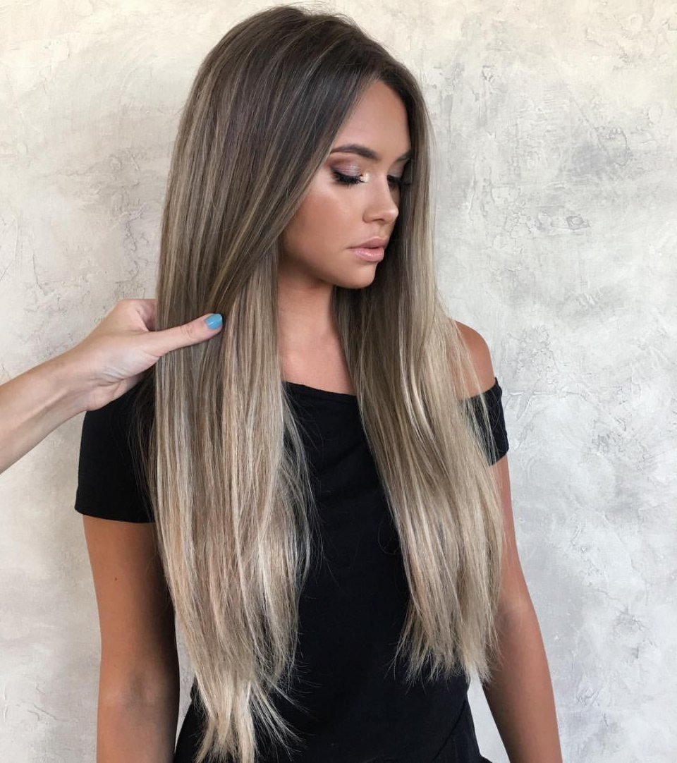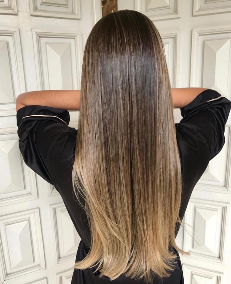 Балаяж на тёмные волосы длинные прямые волосы